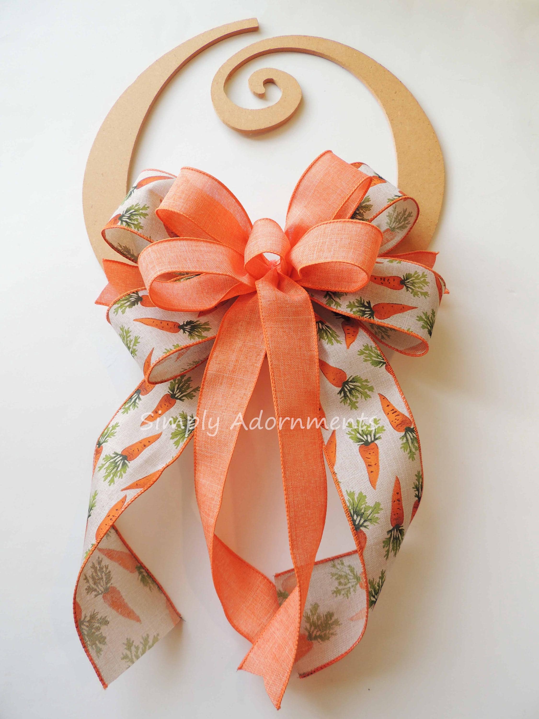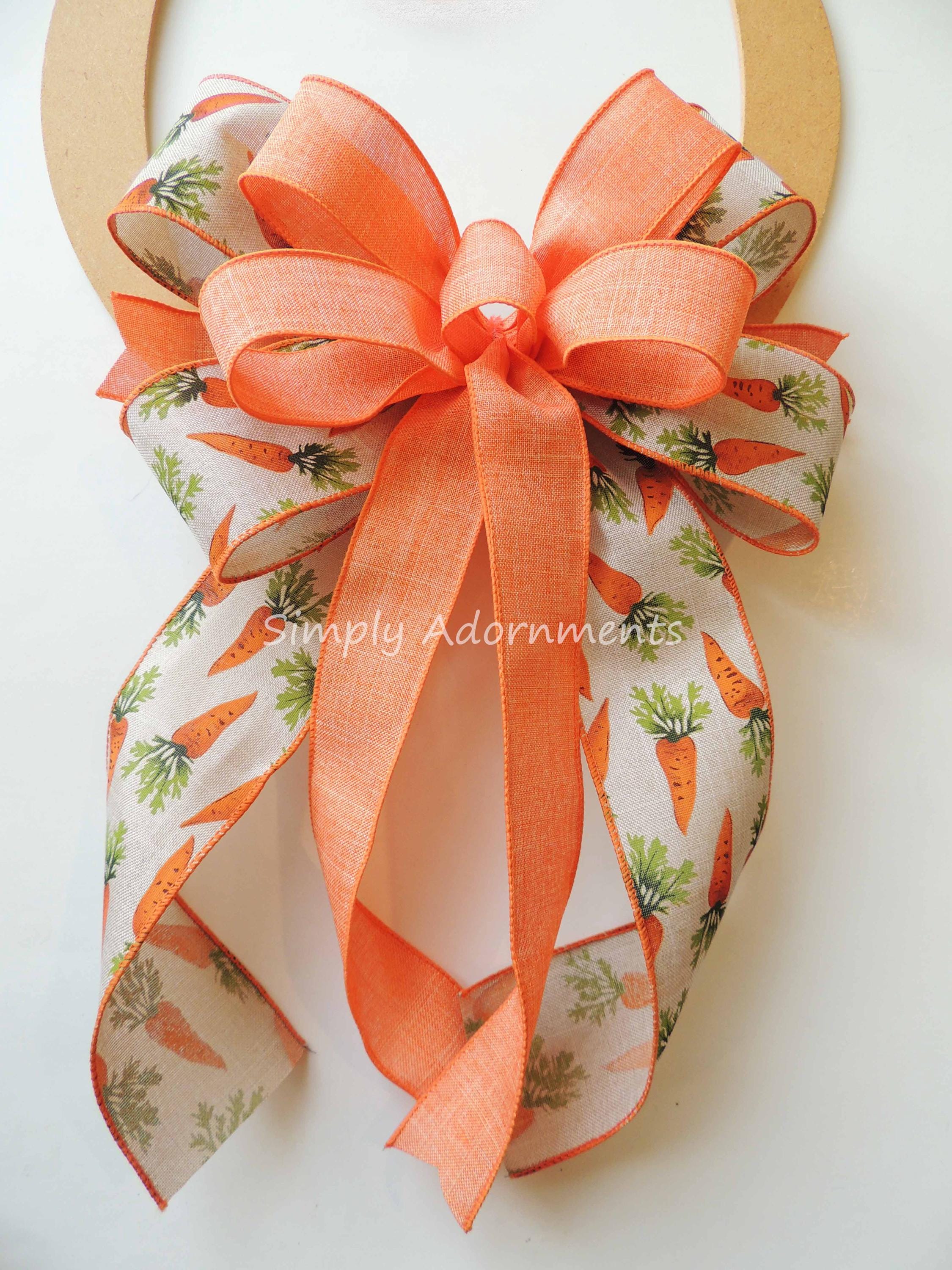 Farmhouse Easter Bow, Easter Wreath Bow, Rustic Tan Orange Bow, Easter Carrot bow, Door hanger Bow, Carrot farmhouse Bow, Basket gift bow