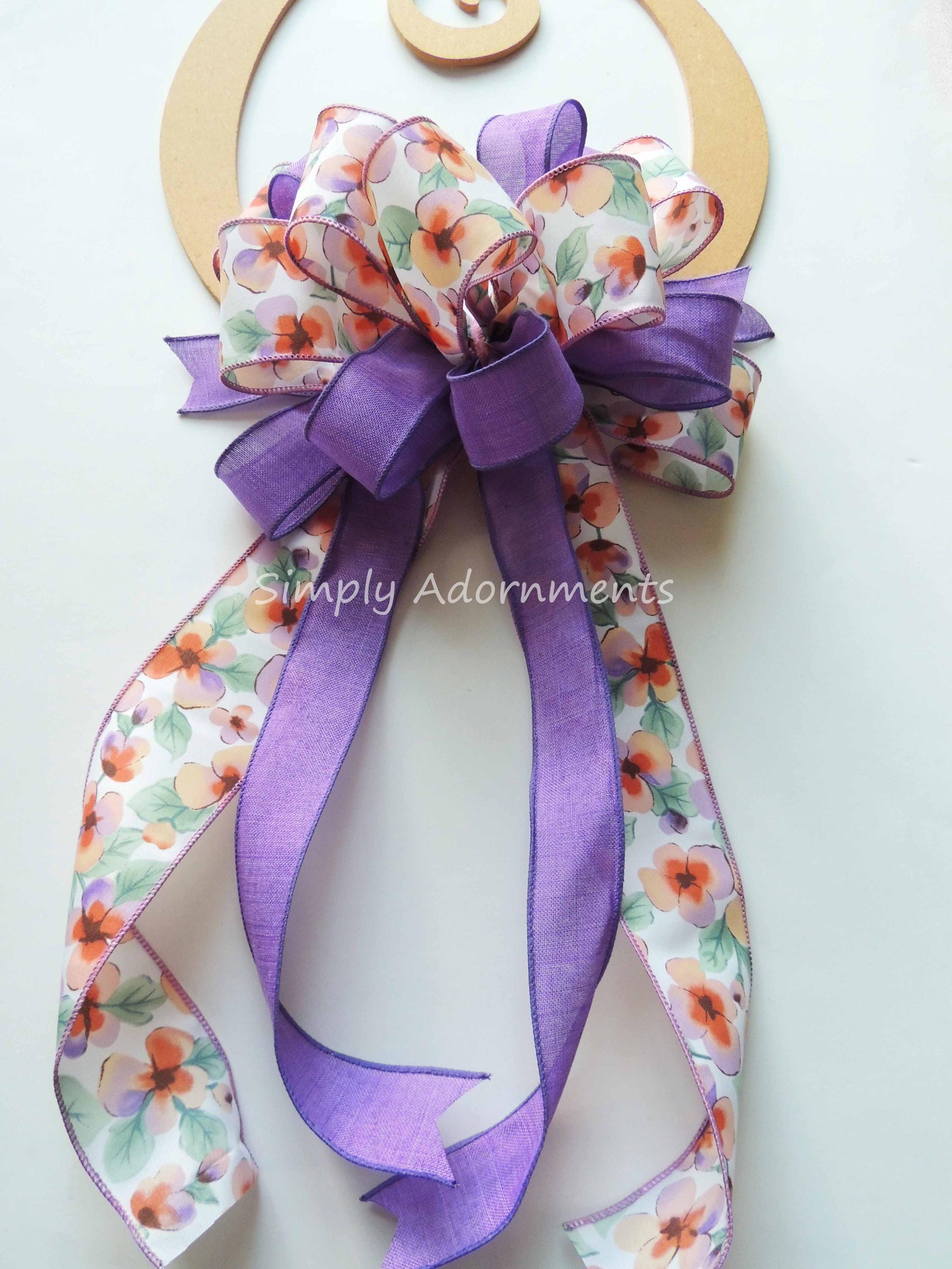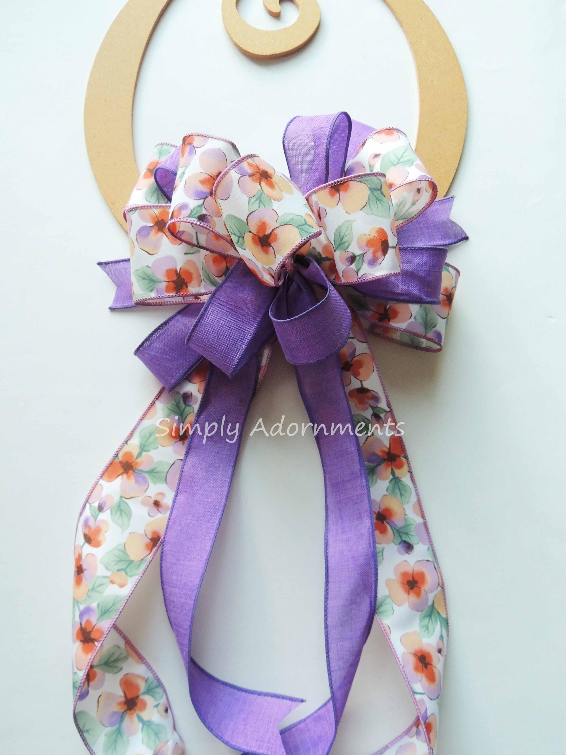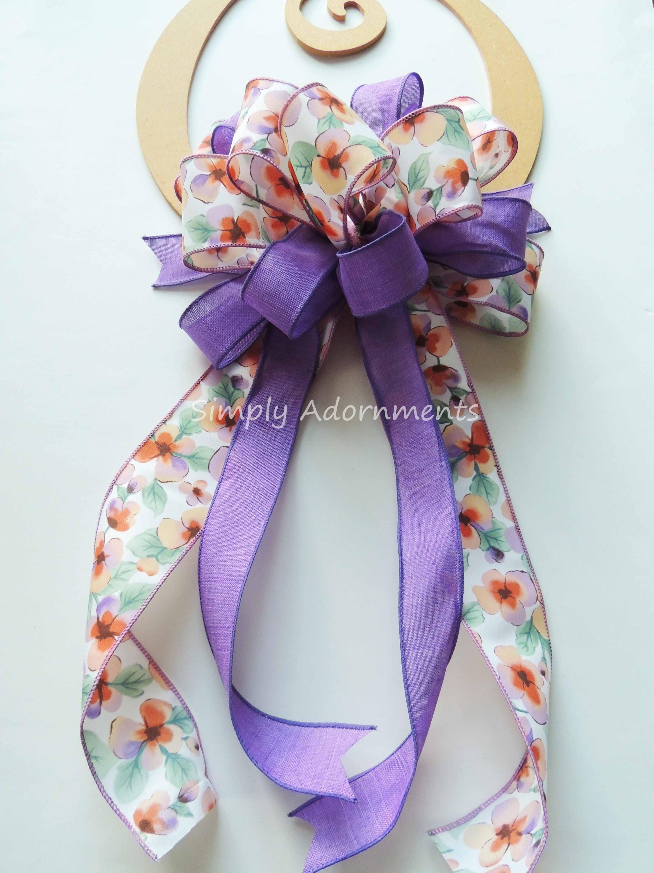 Purple Floral Wreath Bow, Spring Lavender wreath Bow, Spring Flowers Bow, Purple Door, Purple Themed Party Decoration