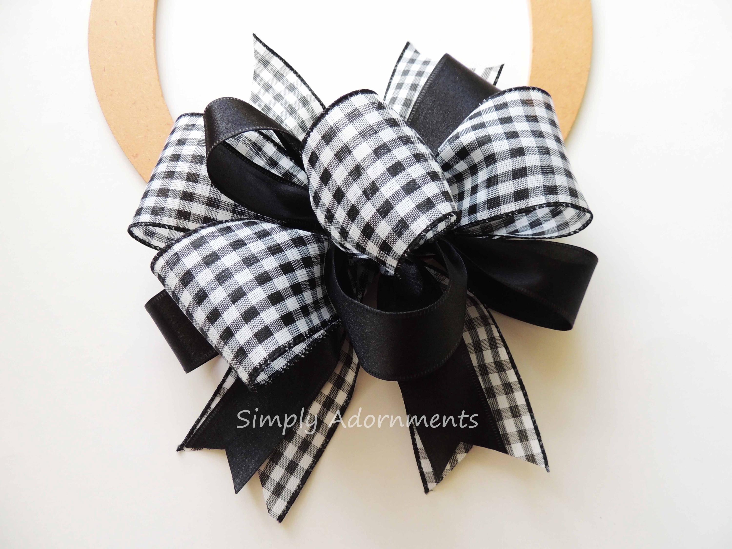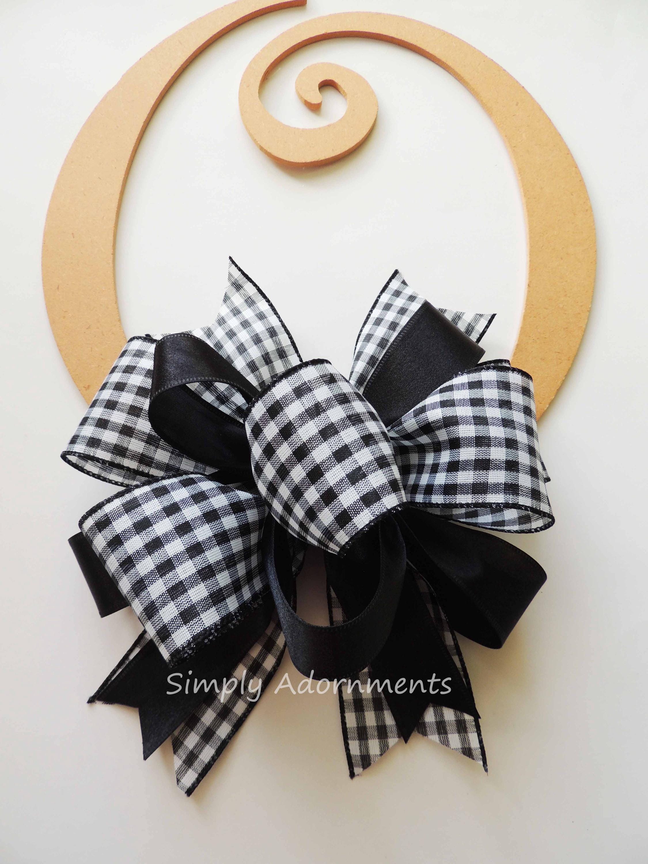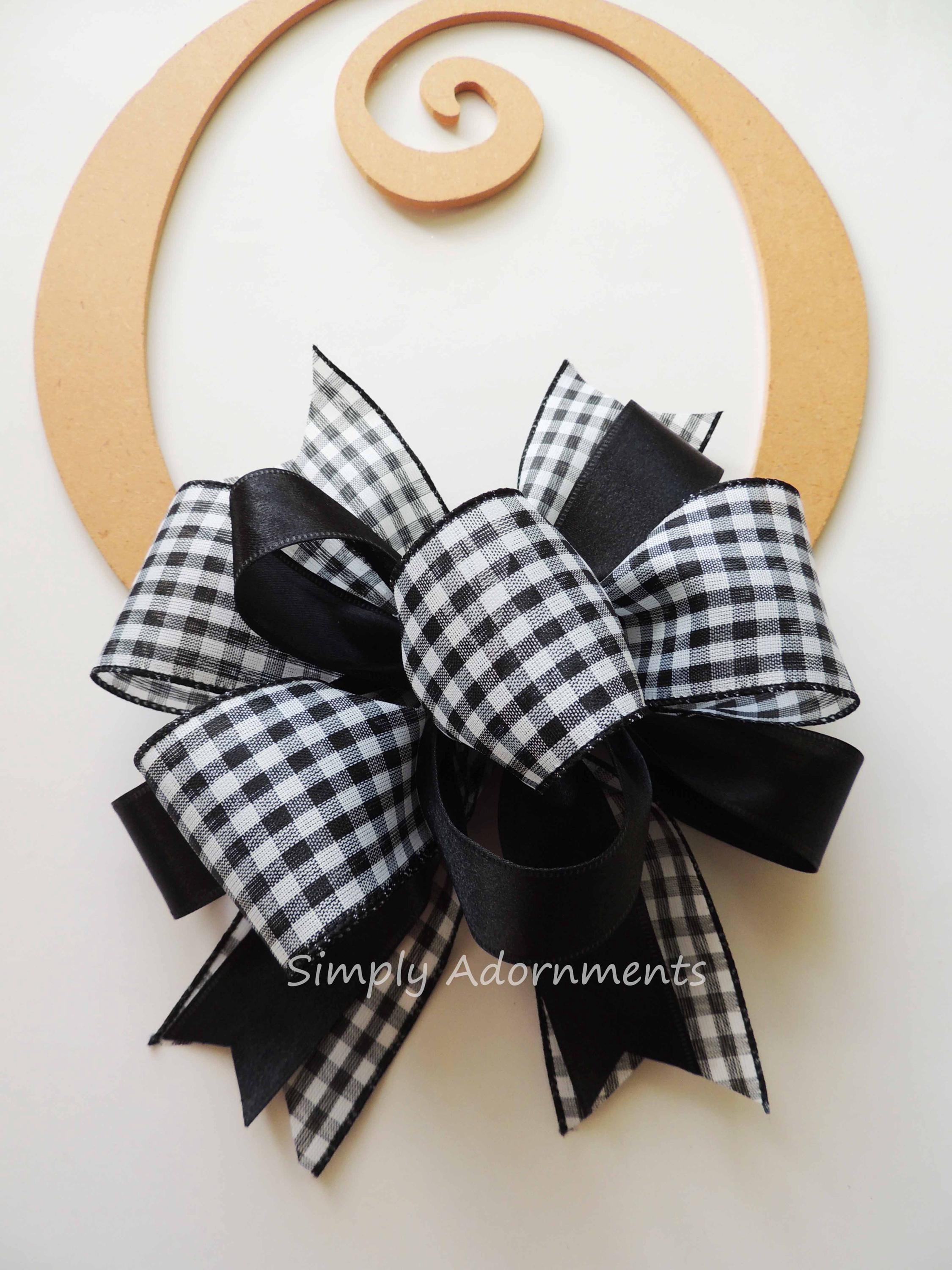 Farmhouse Check Bow, Farmhouse Black Check Wreath Bow, Black White Farmhouse lantern Bow, Door bow, Porch sign bow