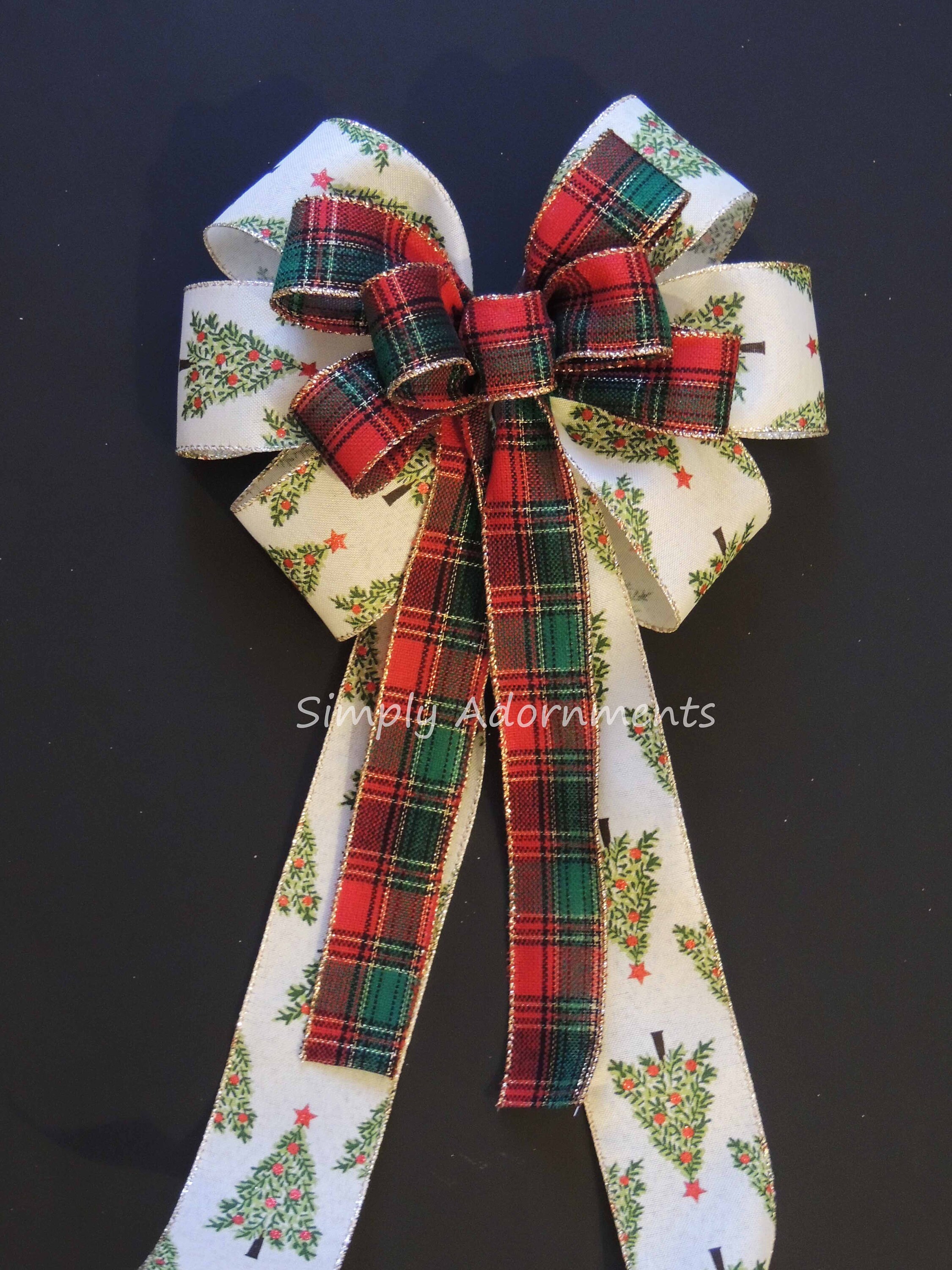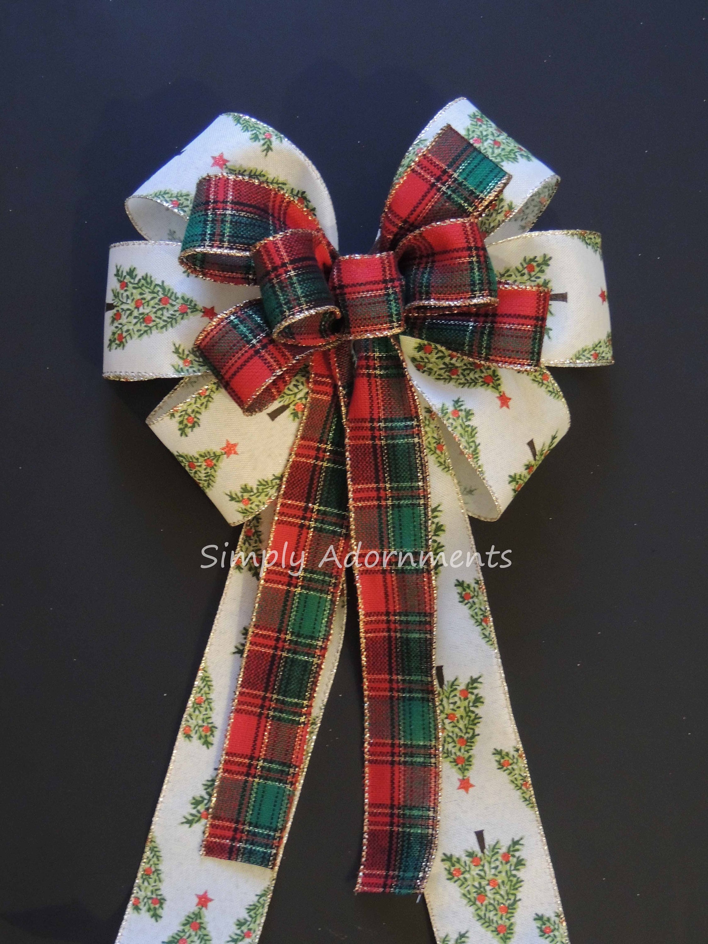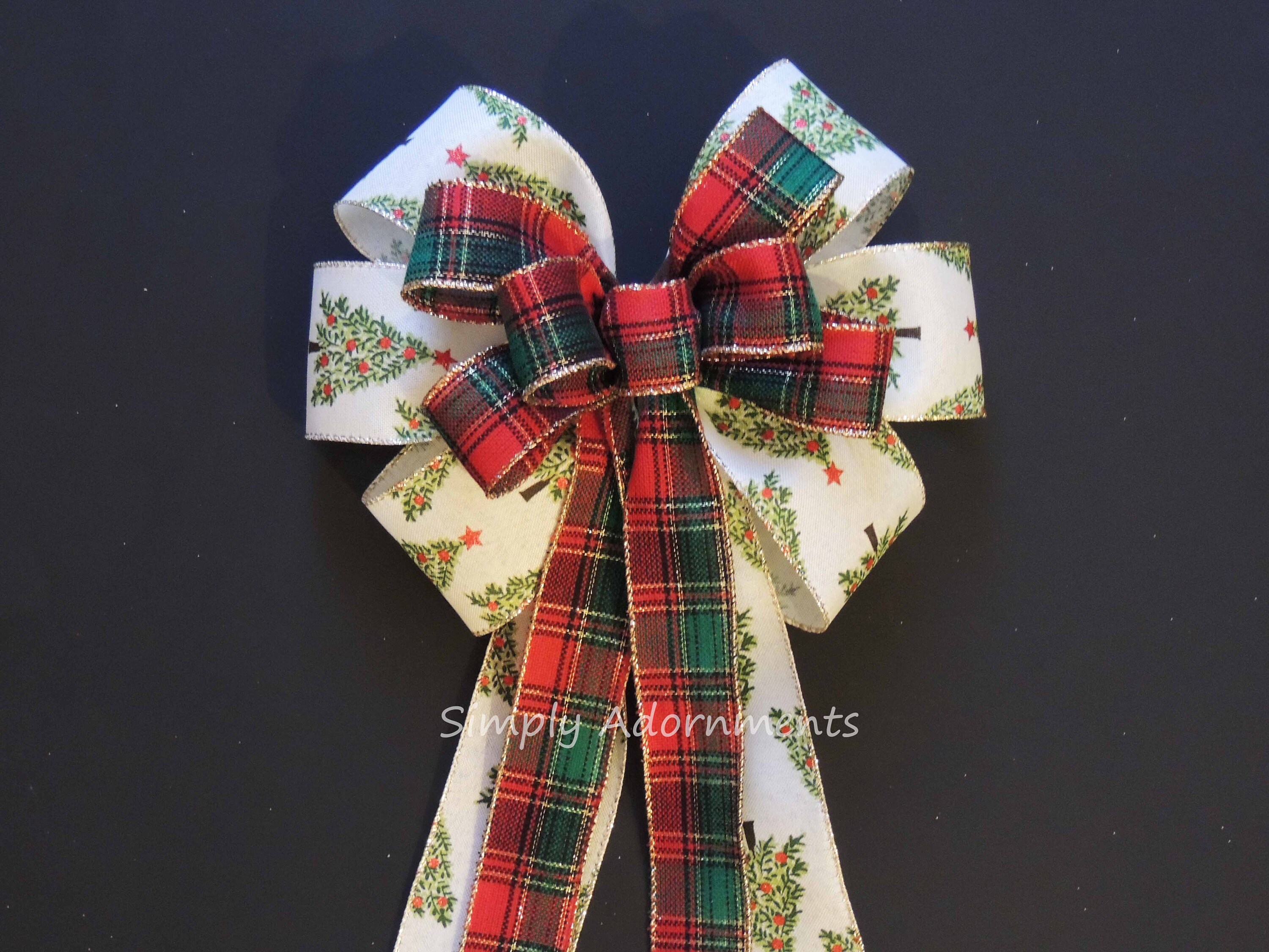 Christmas Tree Bow, Red Green Christmas Plaid Wreath Bows, Christmas Tree Bow Holiday Tree Plaid Bow Red Green Winter Holiday Plaid Gift Bow.
