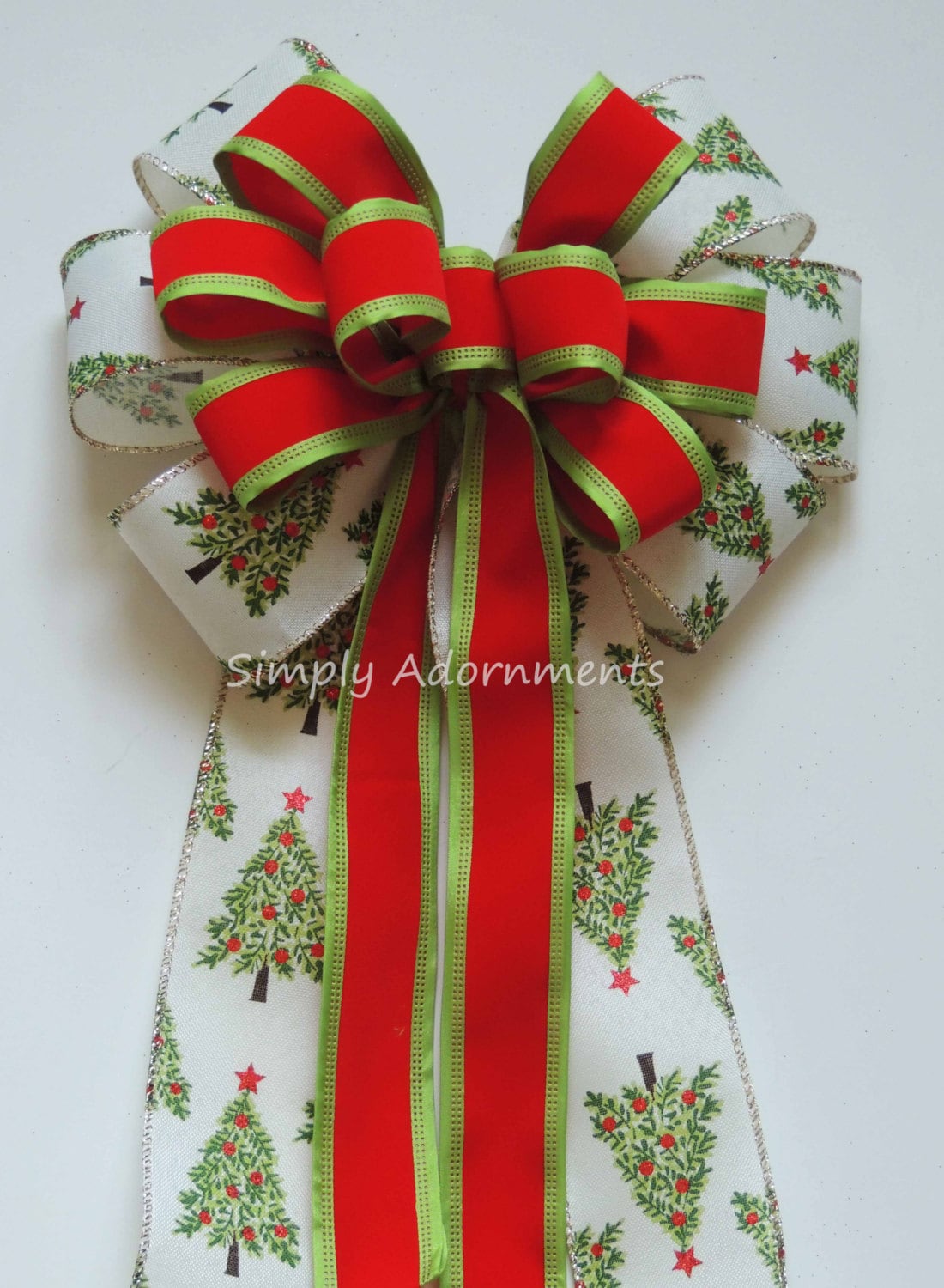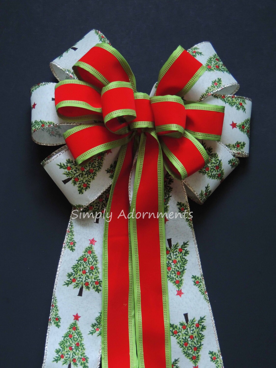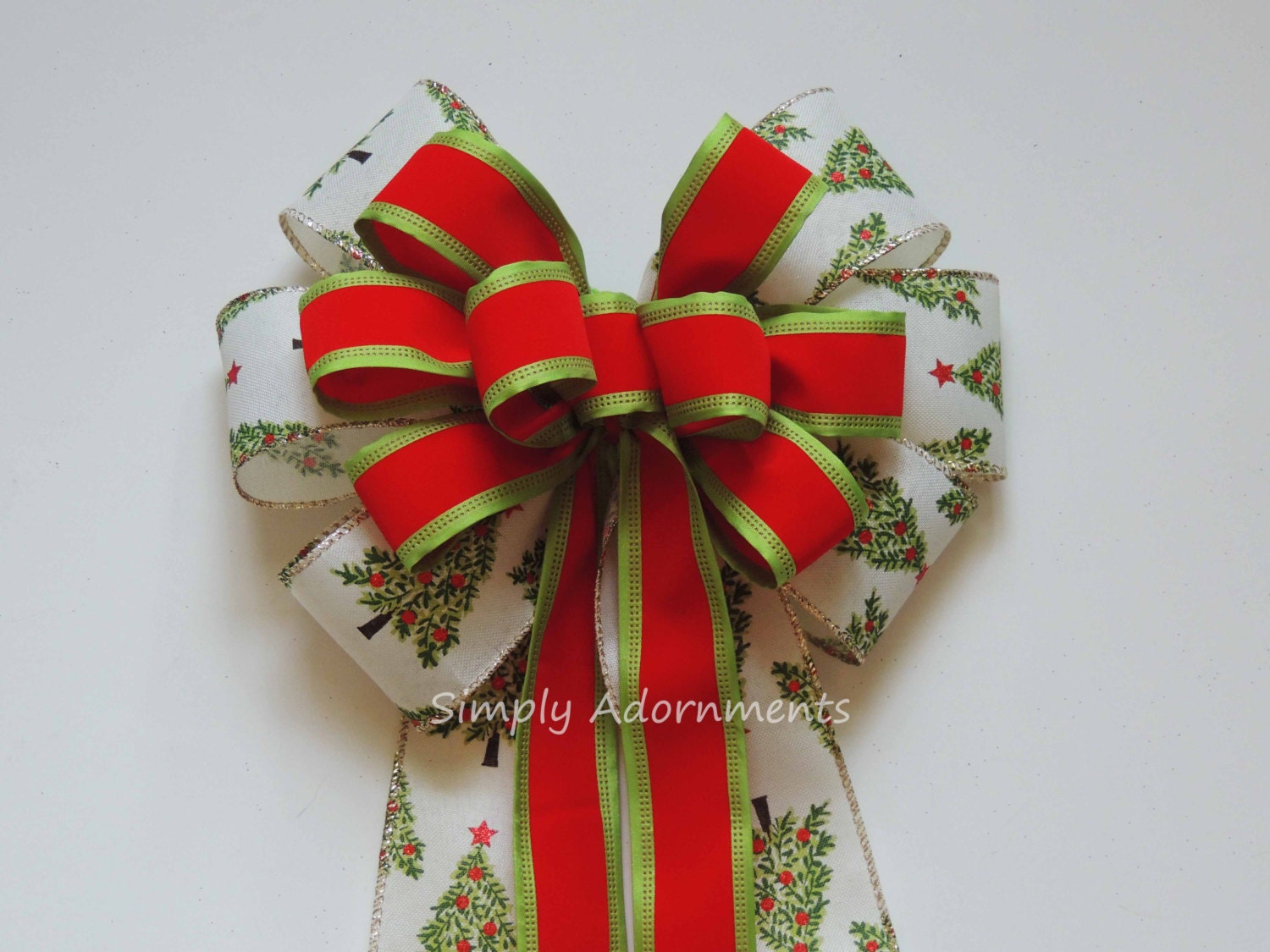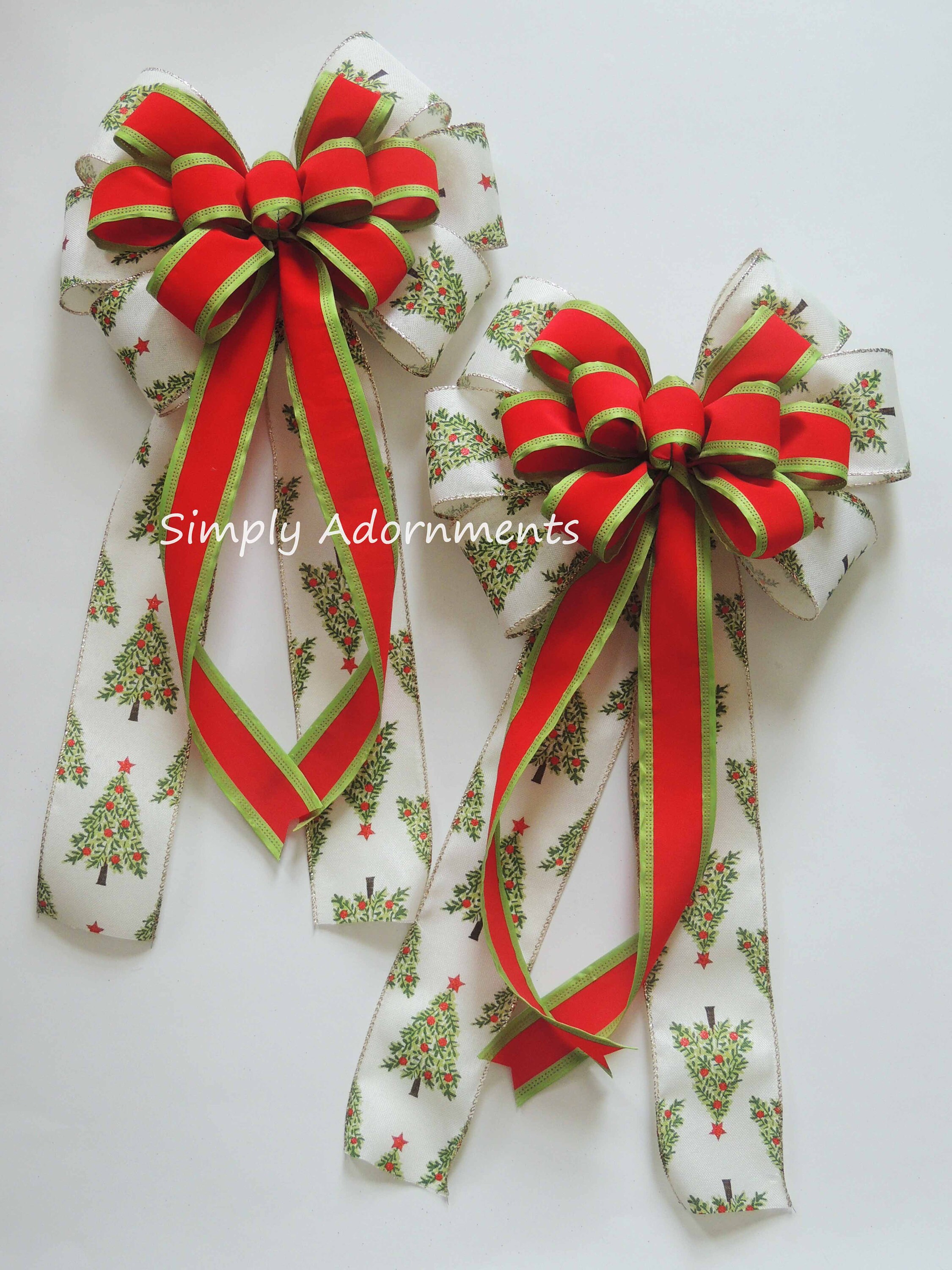 Christmas Tree Bow, Red Green Christmas Plaid Wreath Bows, Christmas Tree Bow Holiday Tree Plaid Bow Red Green Winter Holiday Plaid Gift Bow.