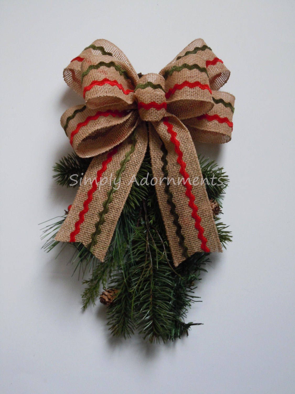 This listing is for a handmade ornamental / wreath BOW ONLY, the GREENERY is NOT INCLUDED.