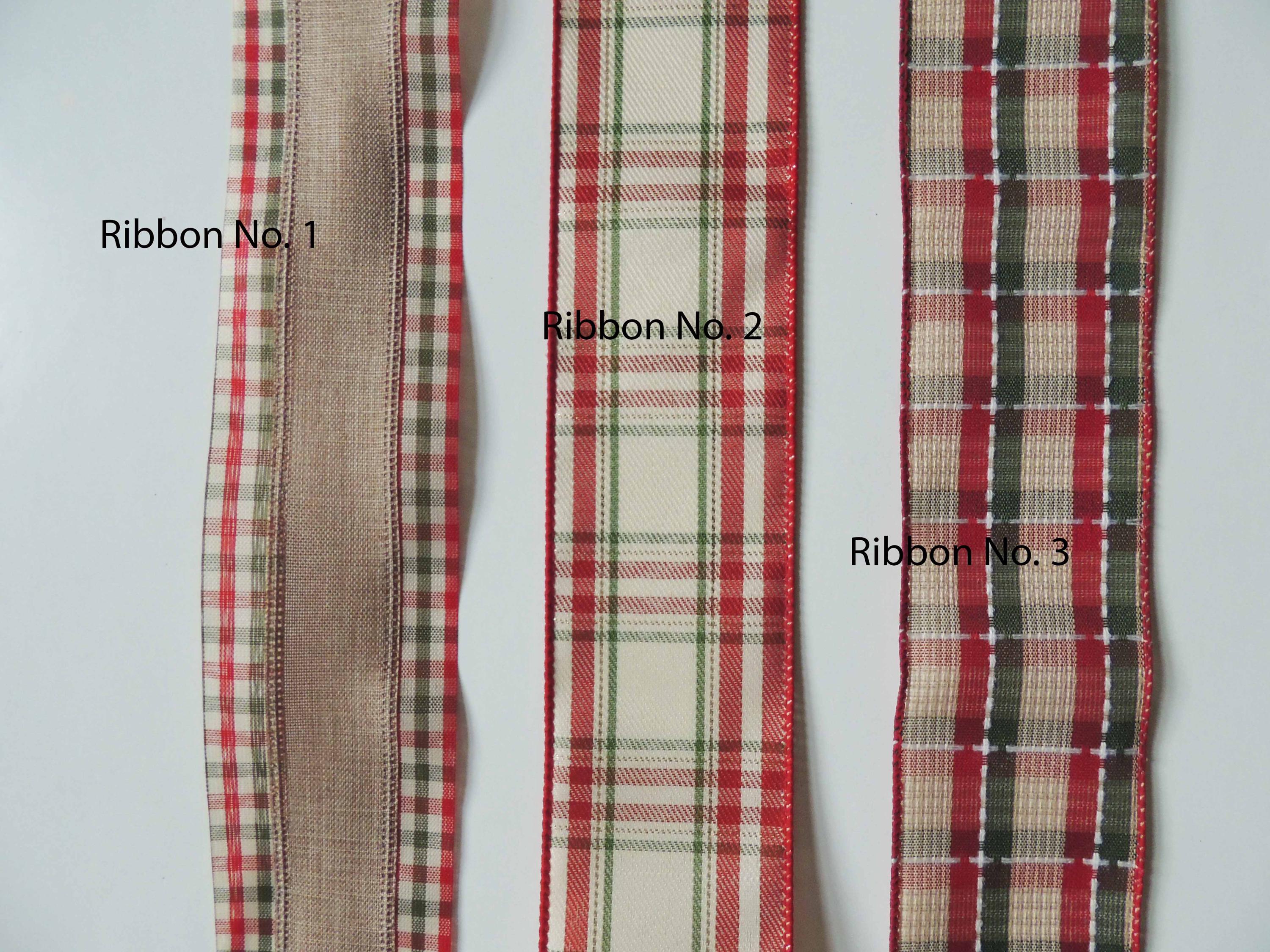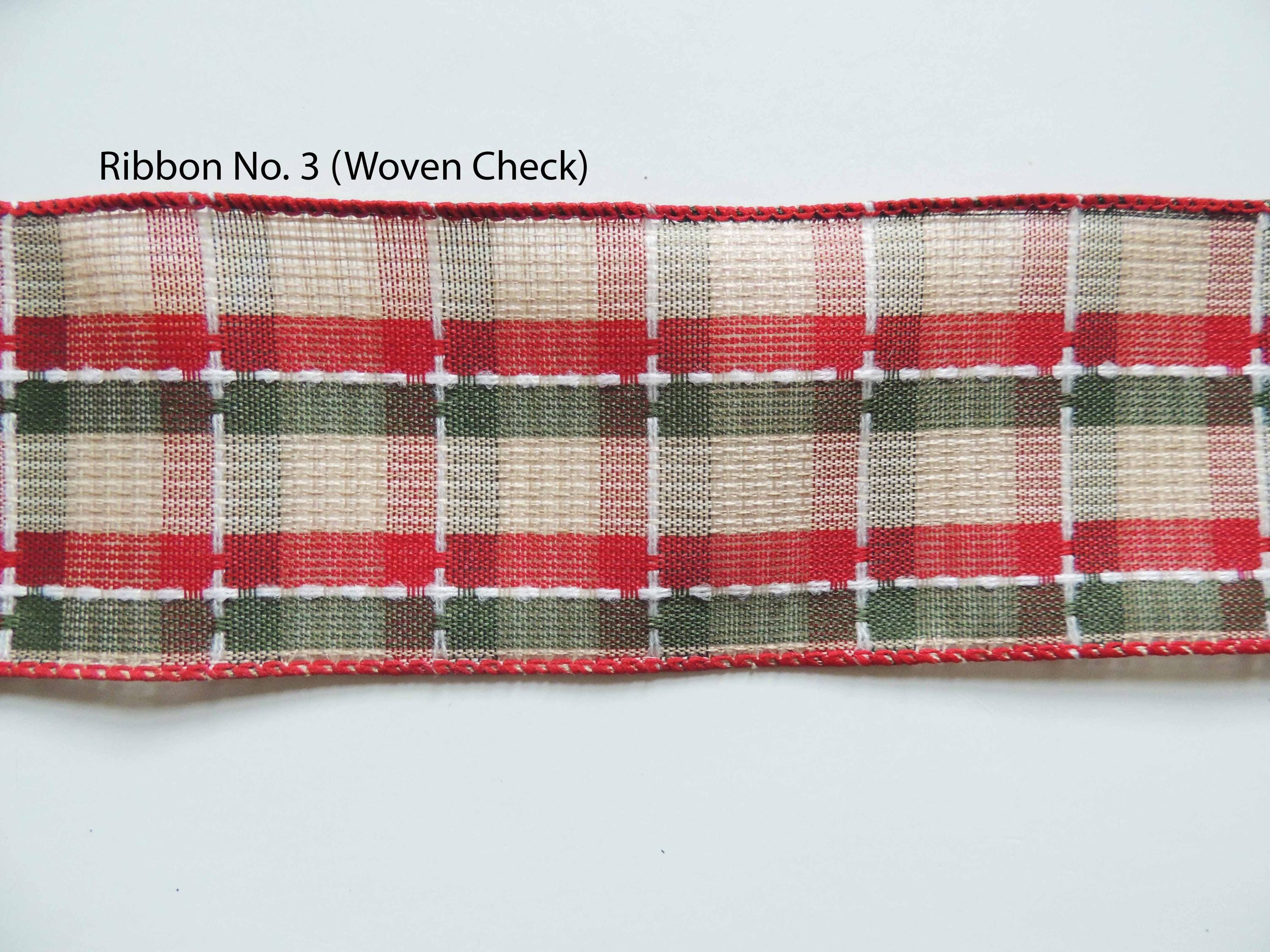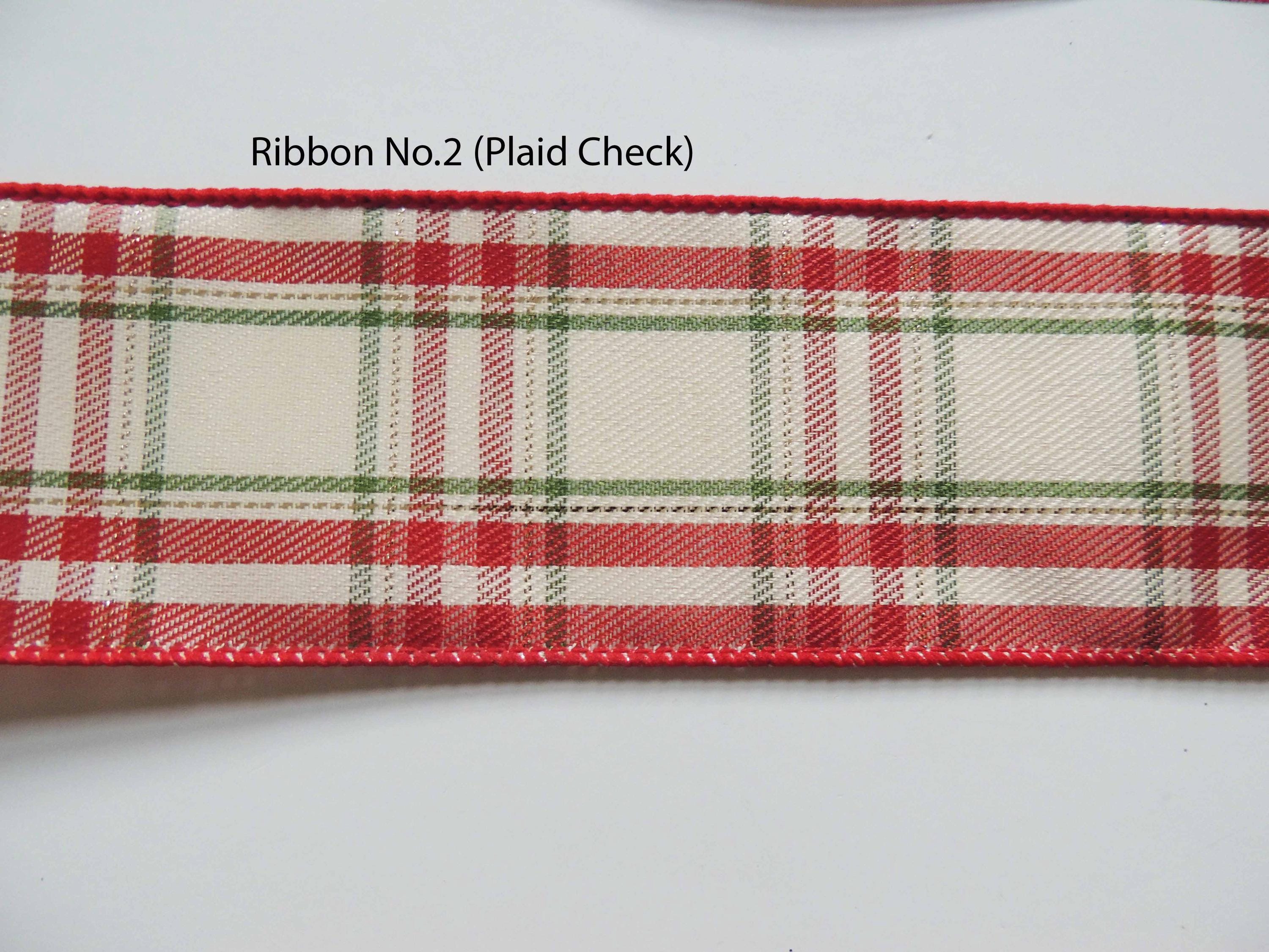 This bow is made using 2.5" wide tan with red green check edged wired ribbon. The bow measures approximately 8" across and 10" long, measuring from the top of the bow to the end of the tails. Please select the ribbon choice before checking out.