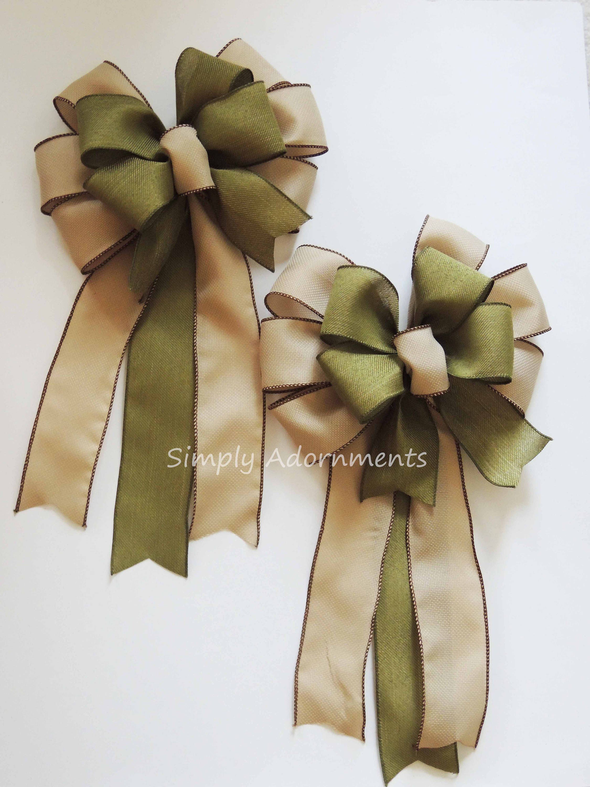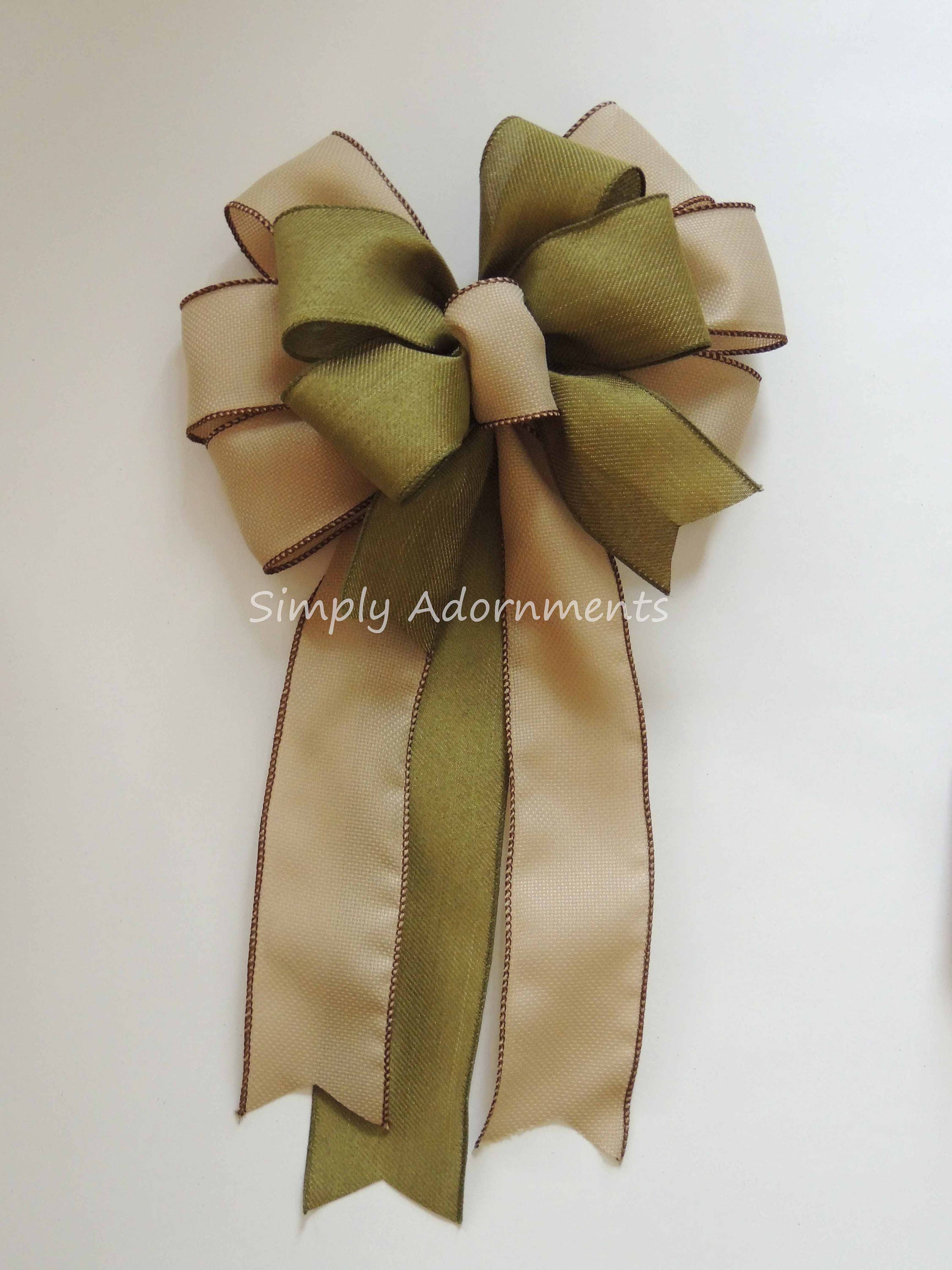 Rustic Moss Green Burlap Wreath Bow, Farmhouse fall wreath bow, Tan Green fall door bow, Fall lantern bow, Fall Sign bow, rustic Burlap Door Hanger Bow