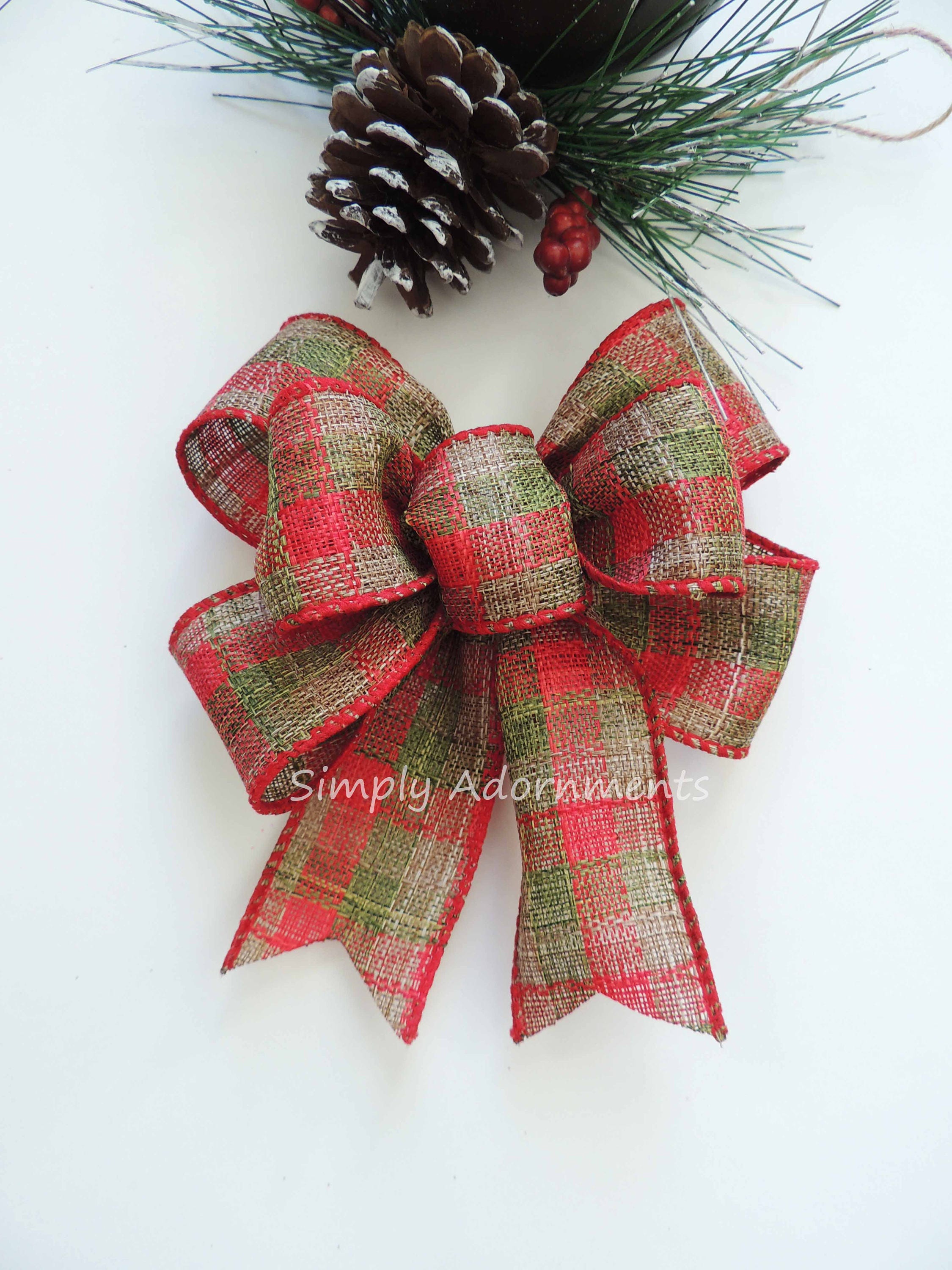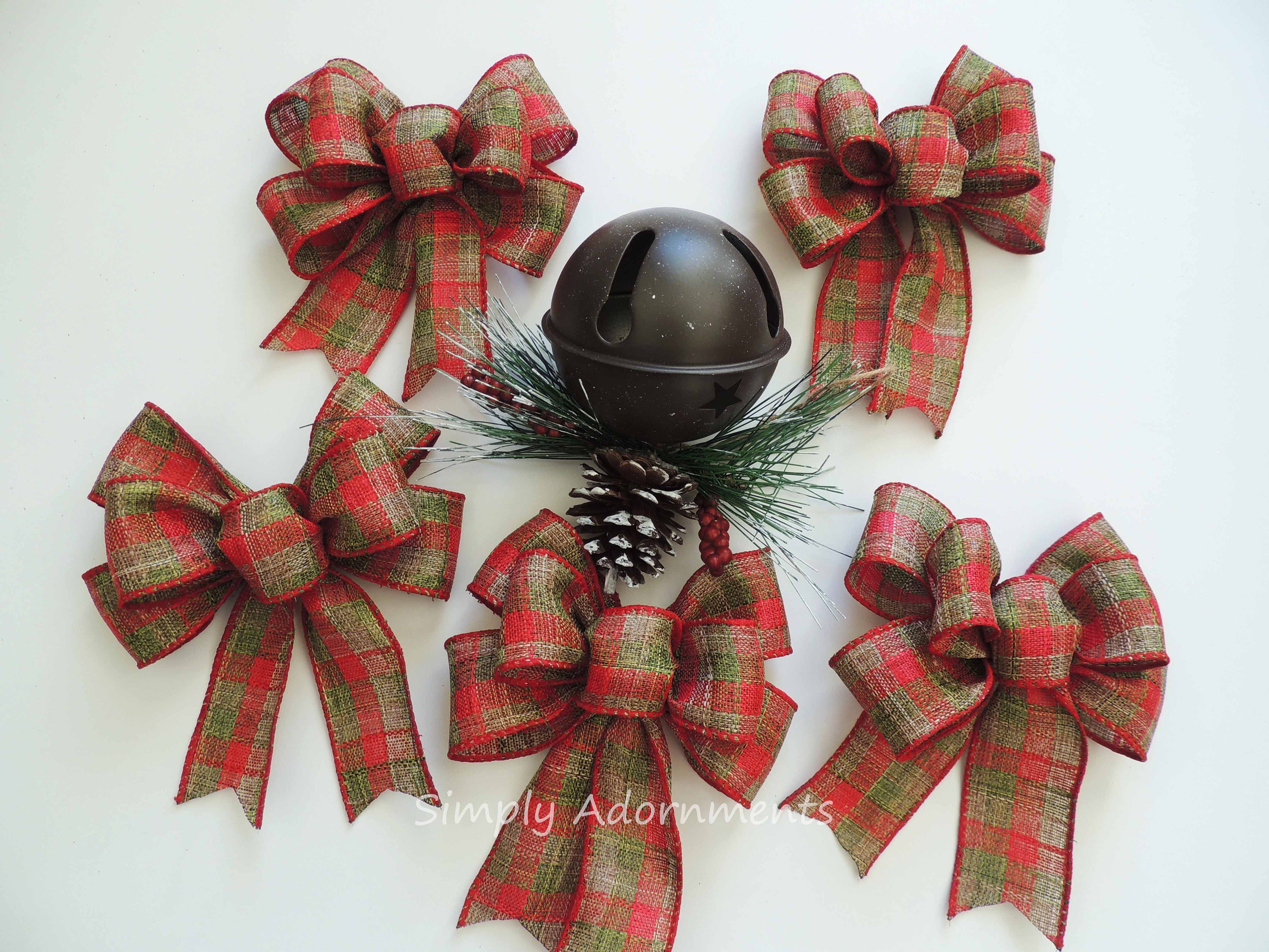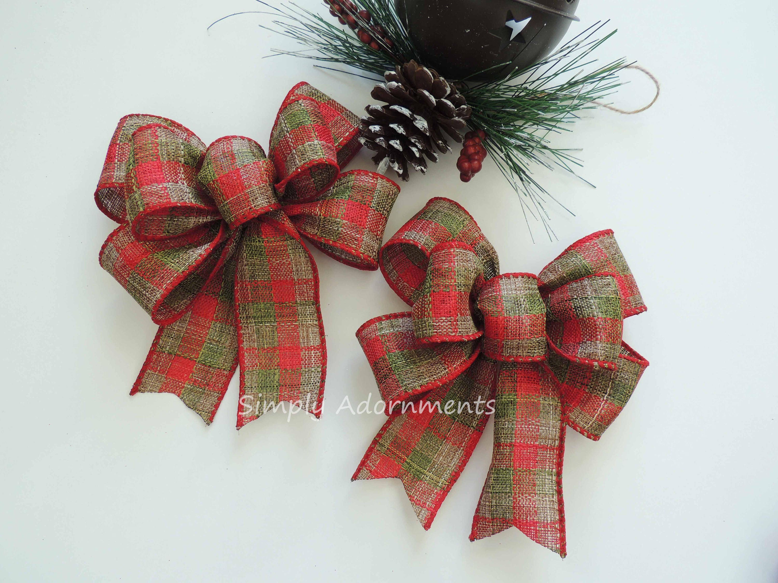 Mini Rustic Red Green Christmas Plaid Bows, Red Green Tartan Country Bow, Red Green Plaid Ornaments bows, Christmas Tree Bows, Gift wrap bow