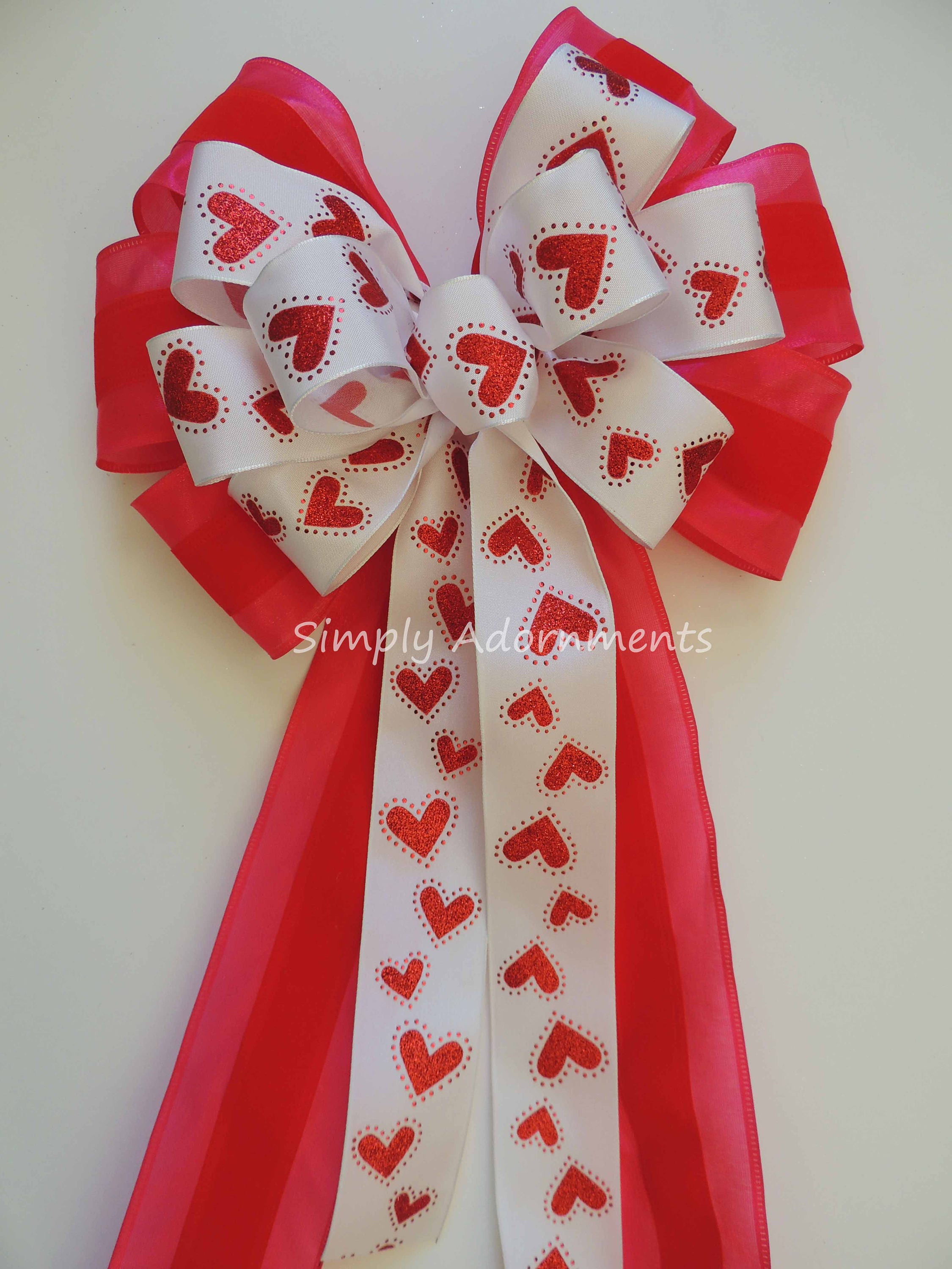 Red Pink Valentine Wreath Bow Glitter Red Heart Valentine Bow Red Valentine Heart Wreath Bow Red Valentine Wedding Pew Bow Valentine Gift Bow