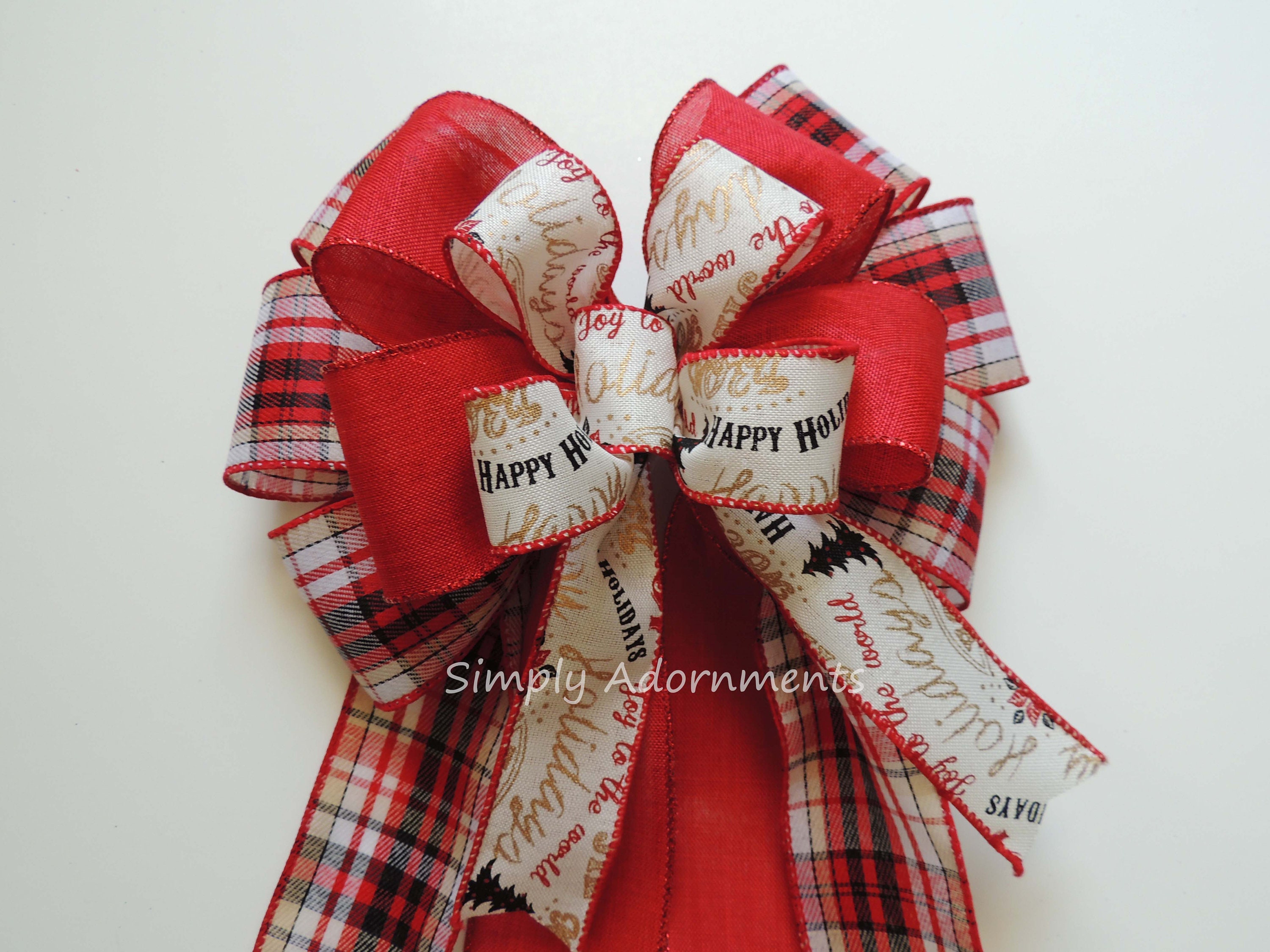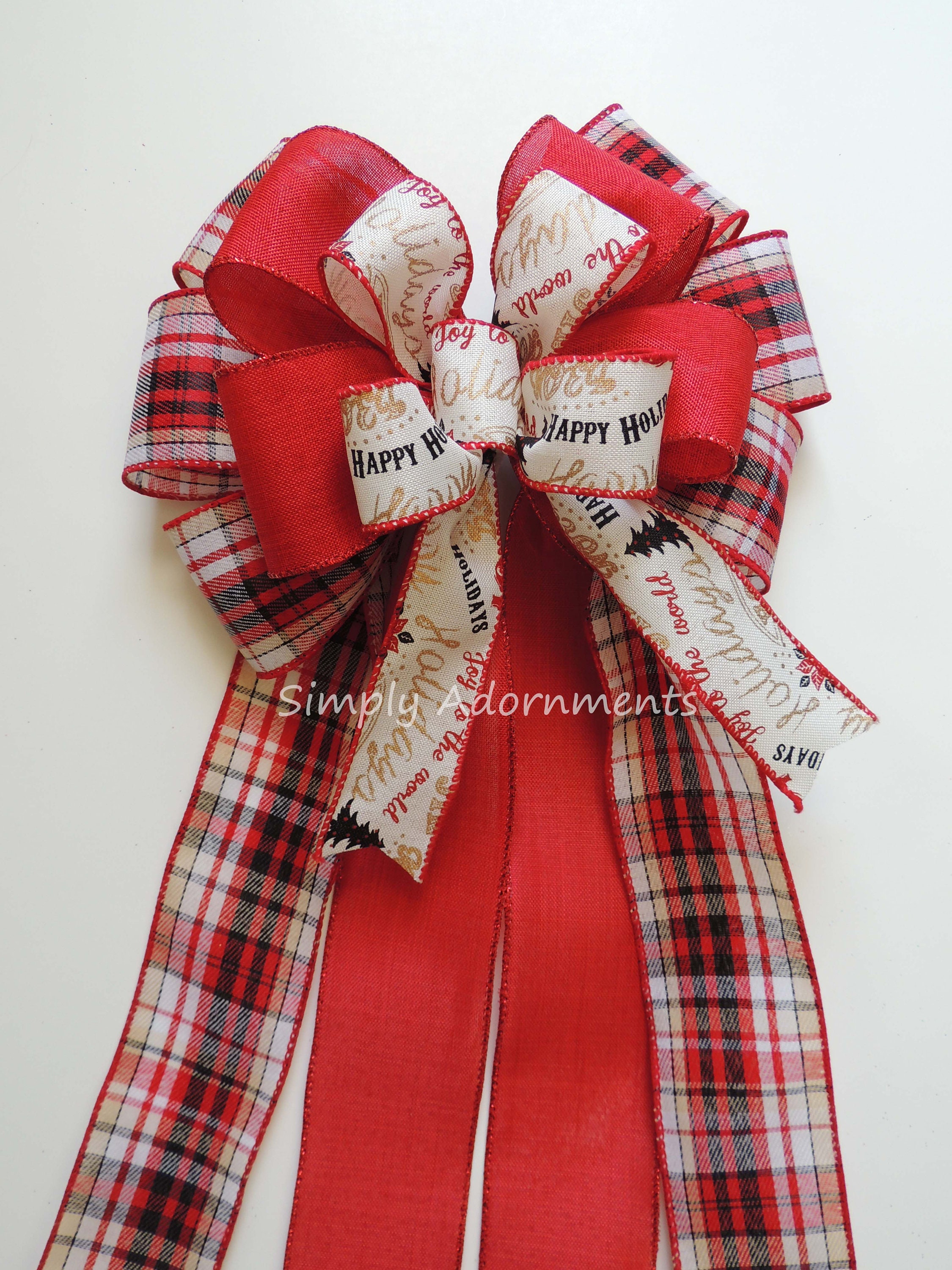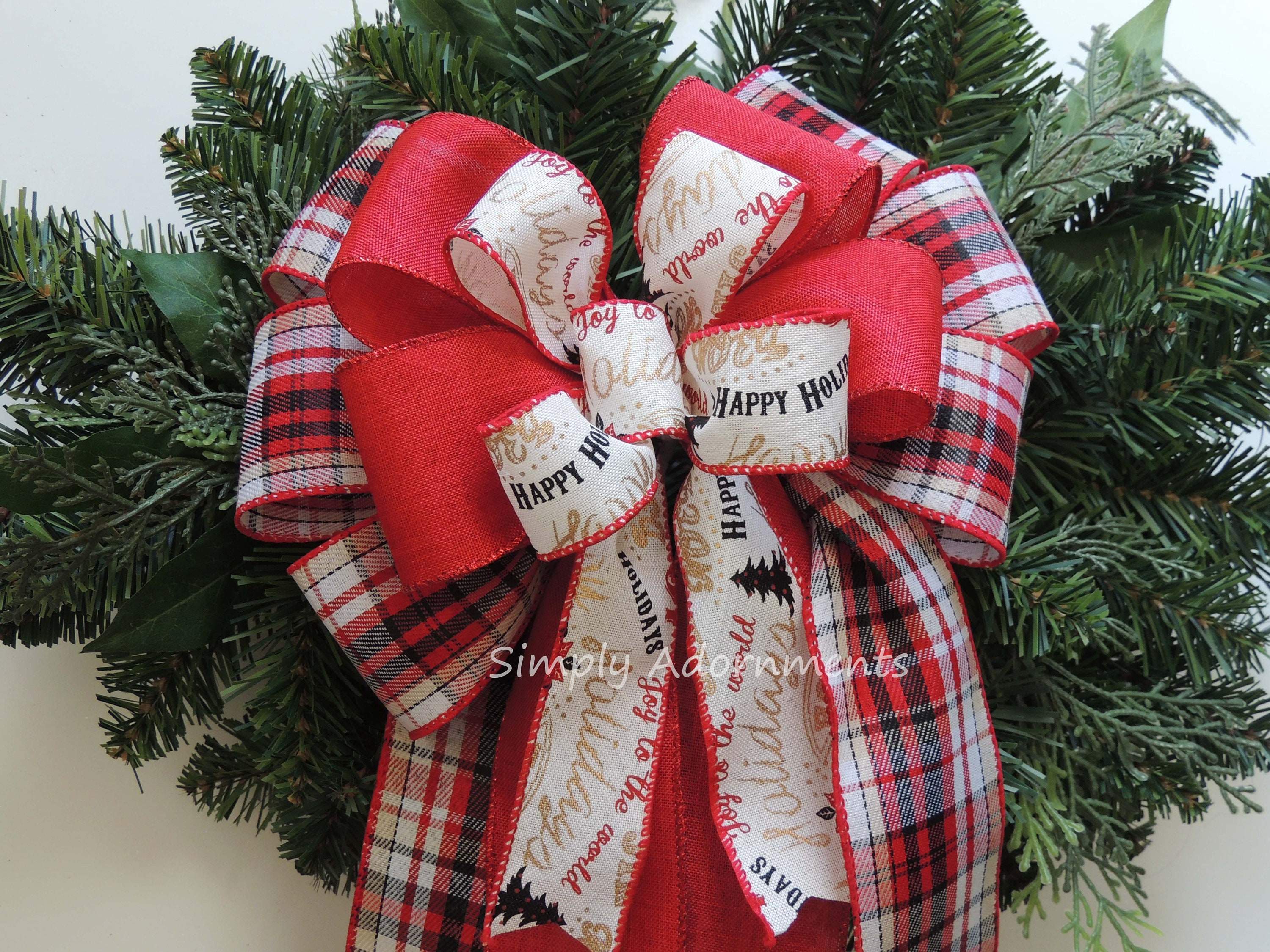 Country Plaid Christmas Wreath Bow Red Green Christmas Hollies Swag Bow Woodland Christmas Tree Bow Red Green Holly Plaid Christmas Holiday Bow Gift Bow.