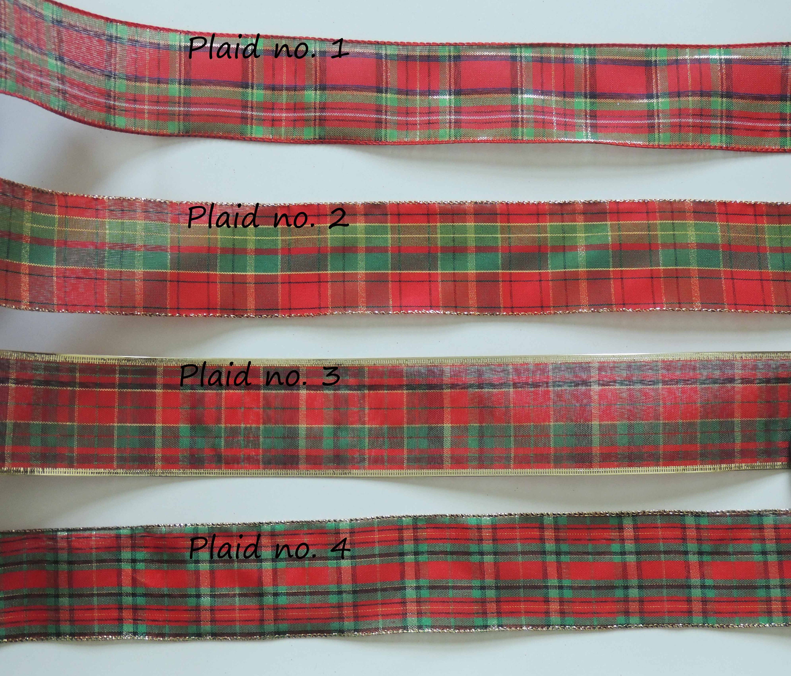 The bow is made using 2.5" plaid wire-edged ribbons. The bow length (L) is measured from the top of the bow to the end of the tails. Please select the bow size and the color combinations options before checking out.