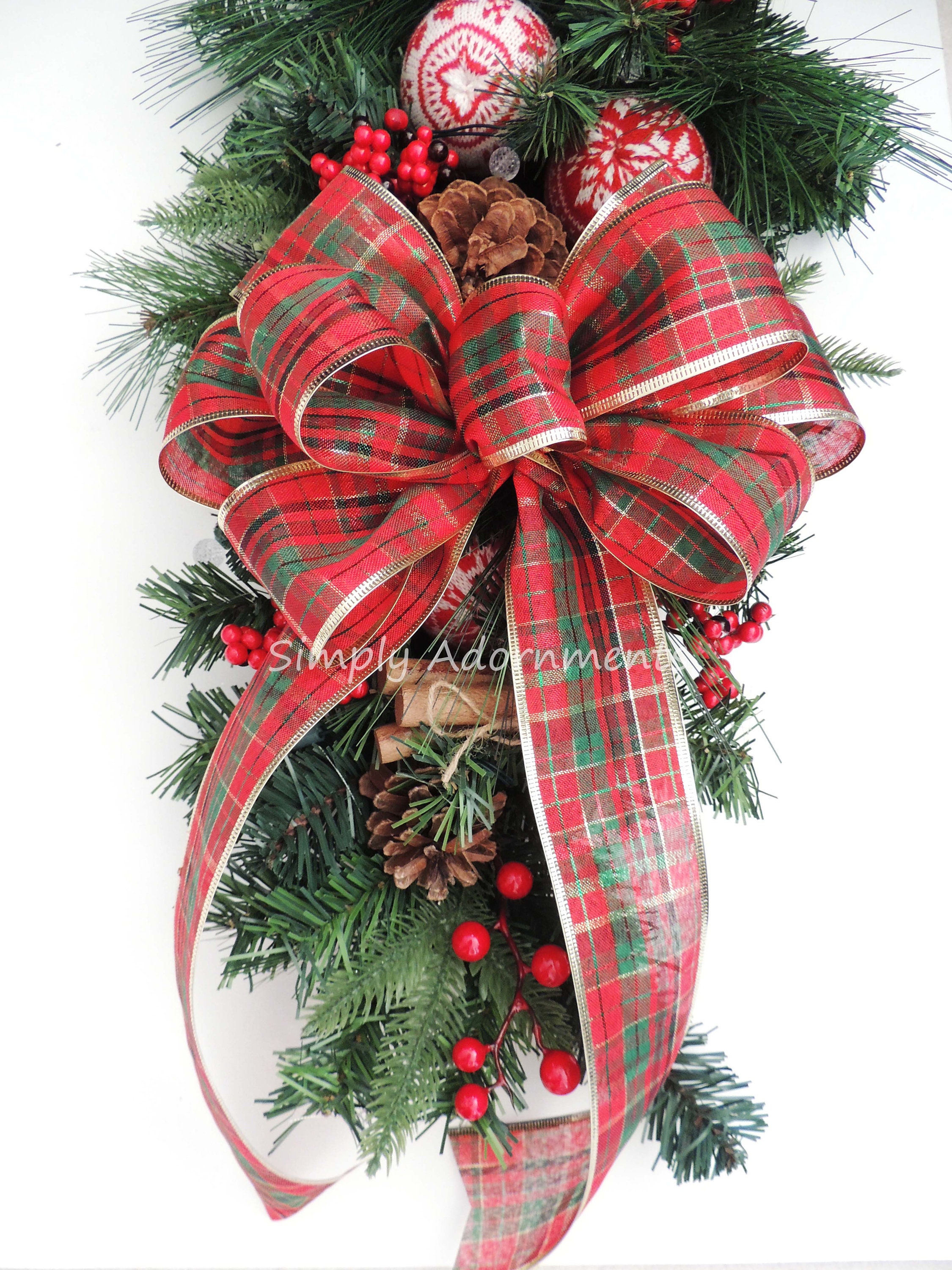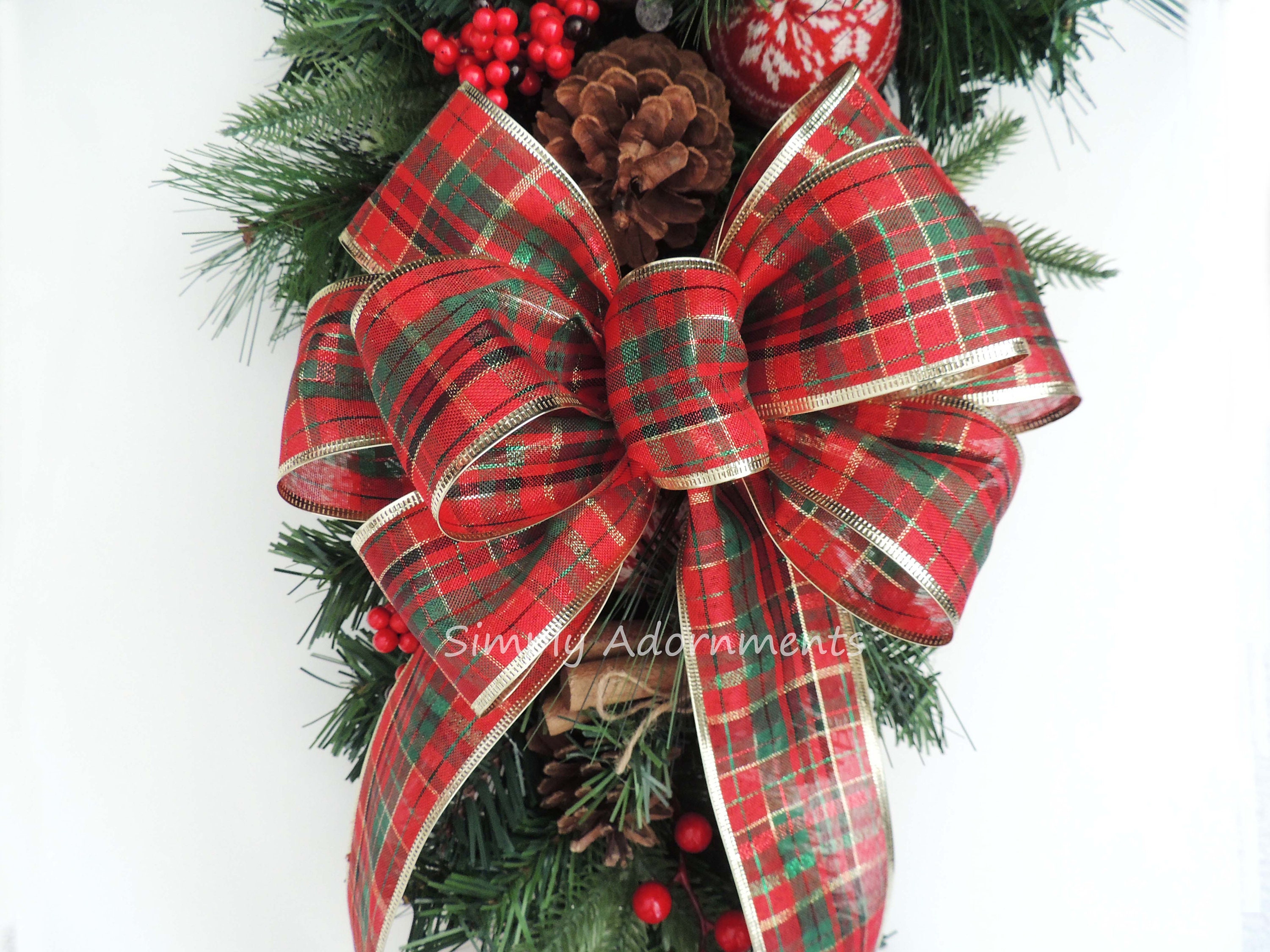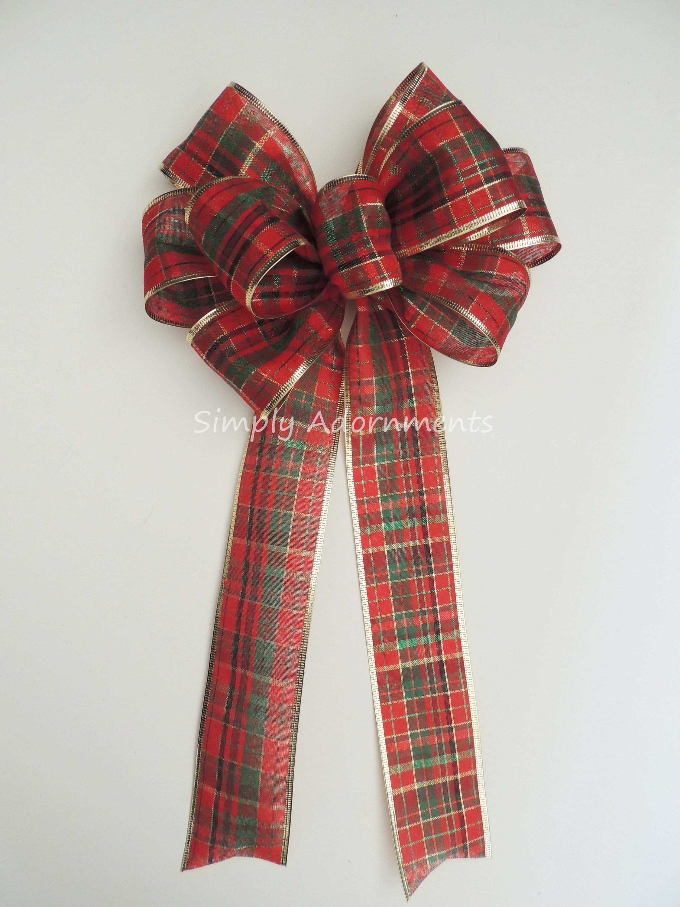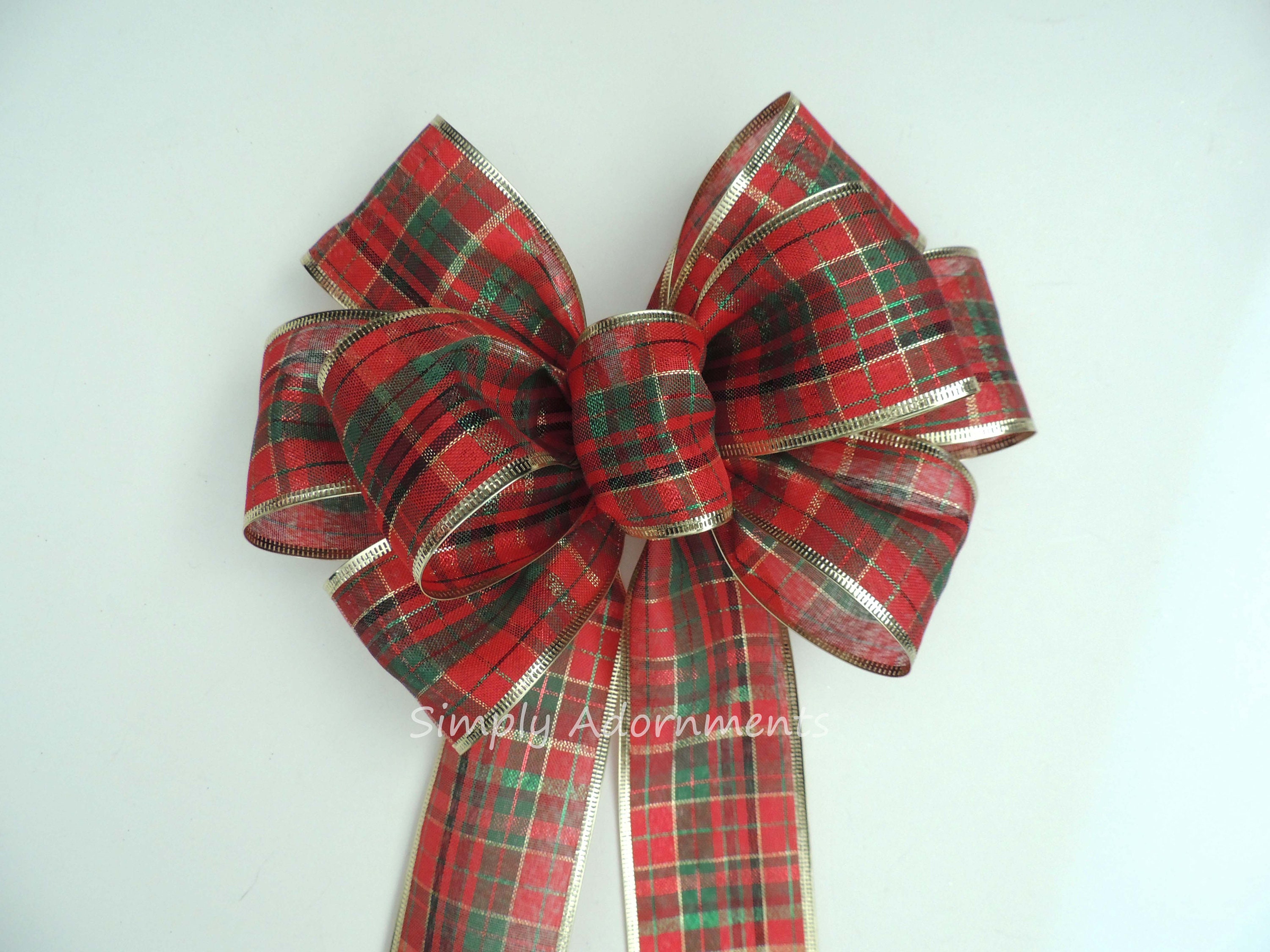 Country Christmas Plaid Bow, Red Green Gold Christmas Plaid Bow, Red Green Plaid Wreath Bow, Christmas Plaid Door Bow, Christmas Tree bow