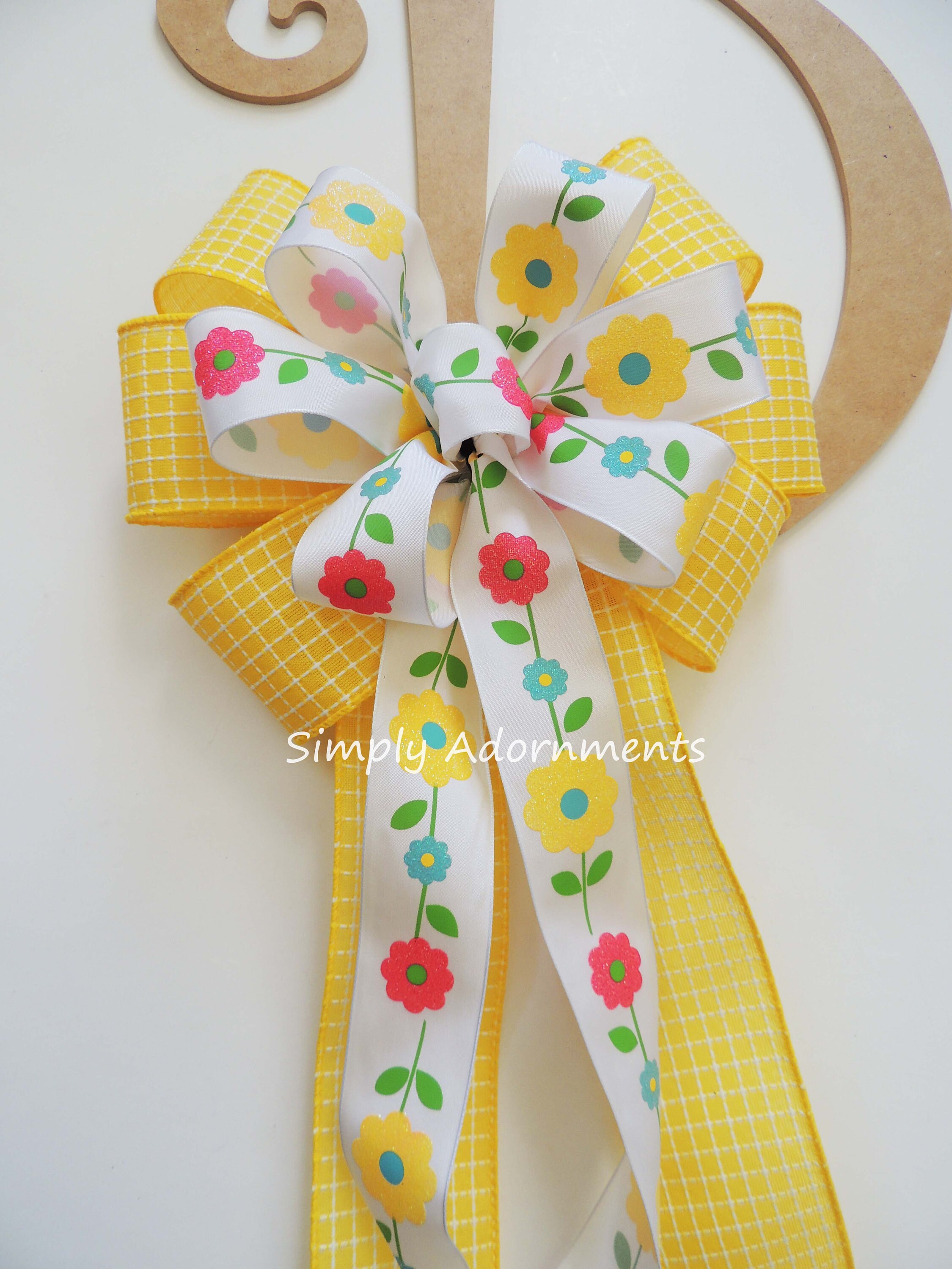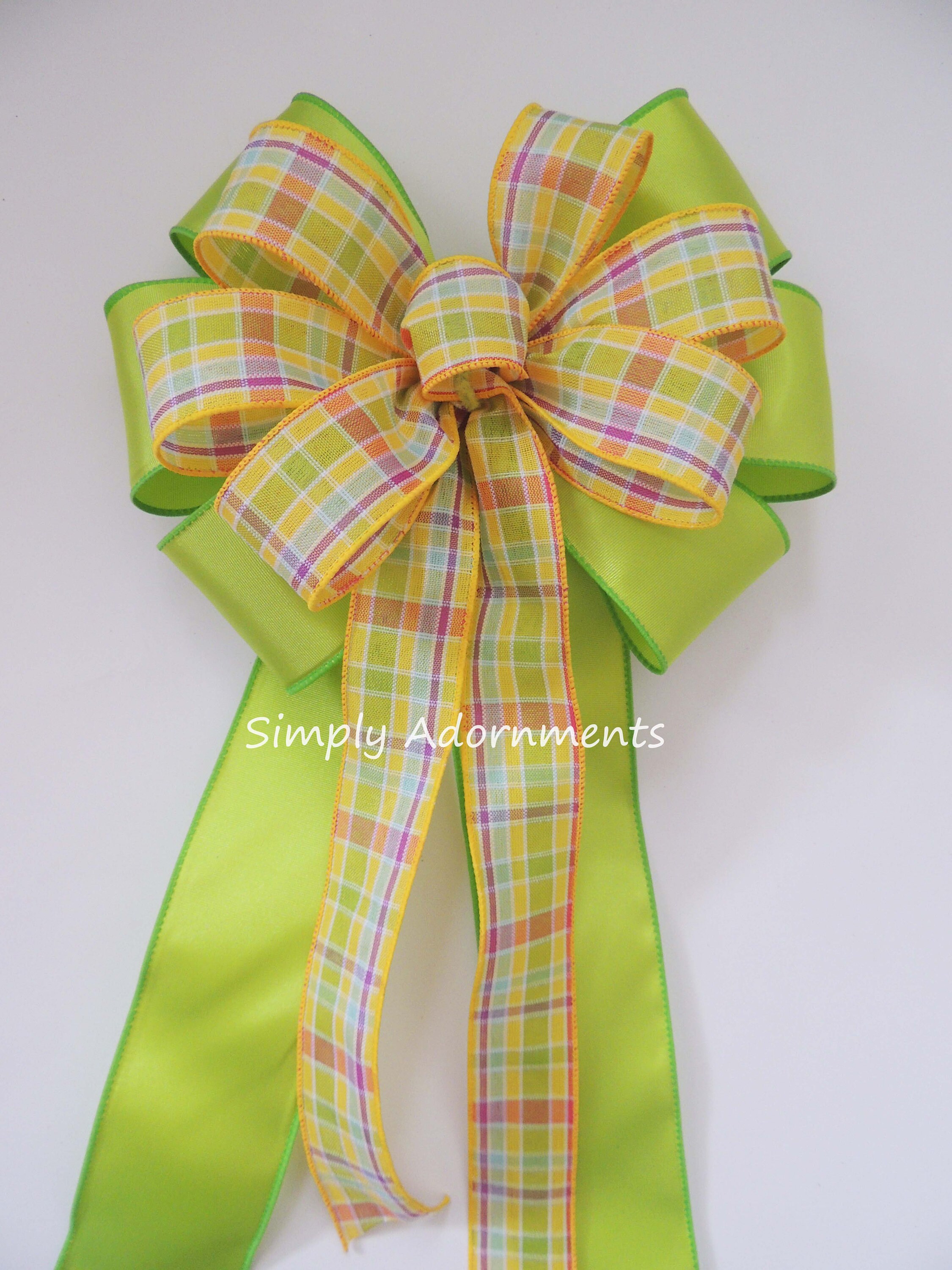 Yellow Spring Plaid Bow, Yellow Spring Plaid Bow, Spring Plaid Wreath Bow, Yellow door bow, Yellow Birthday Party Decor Bow, Yellow Gift bow