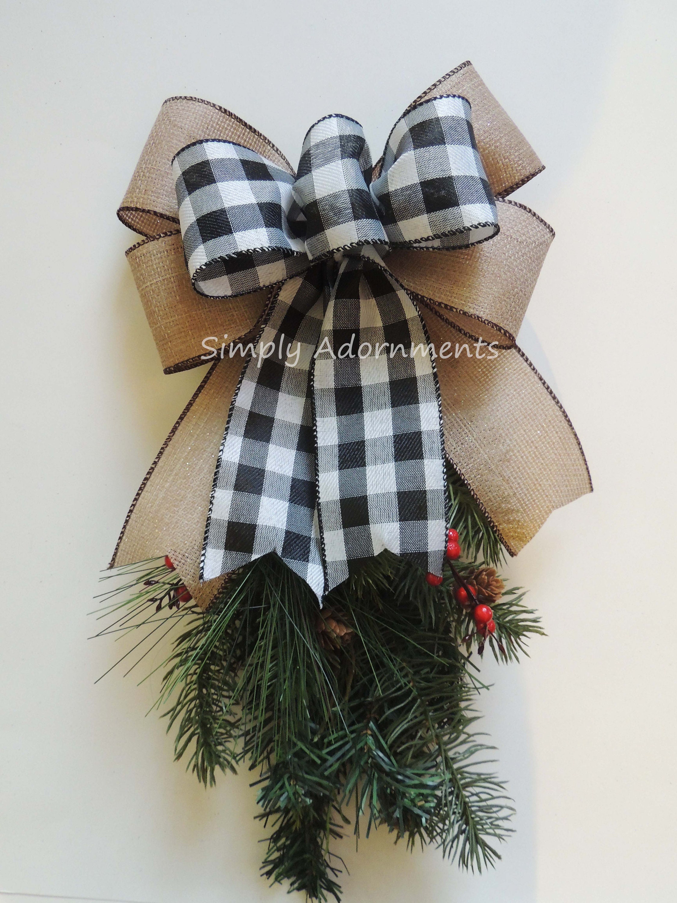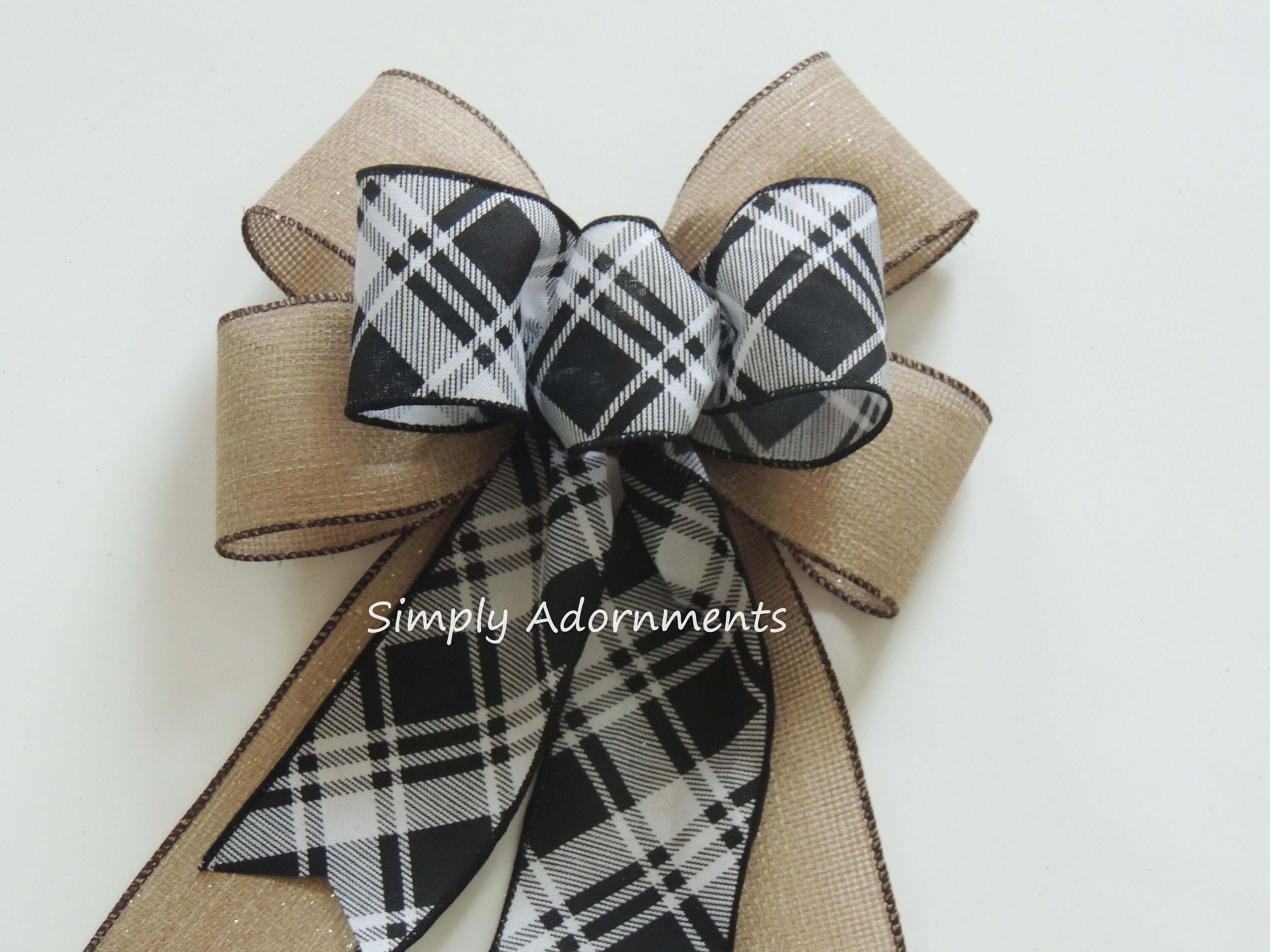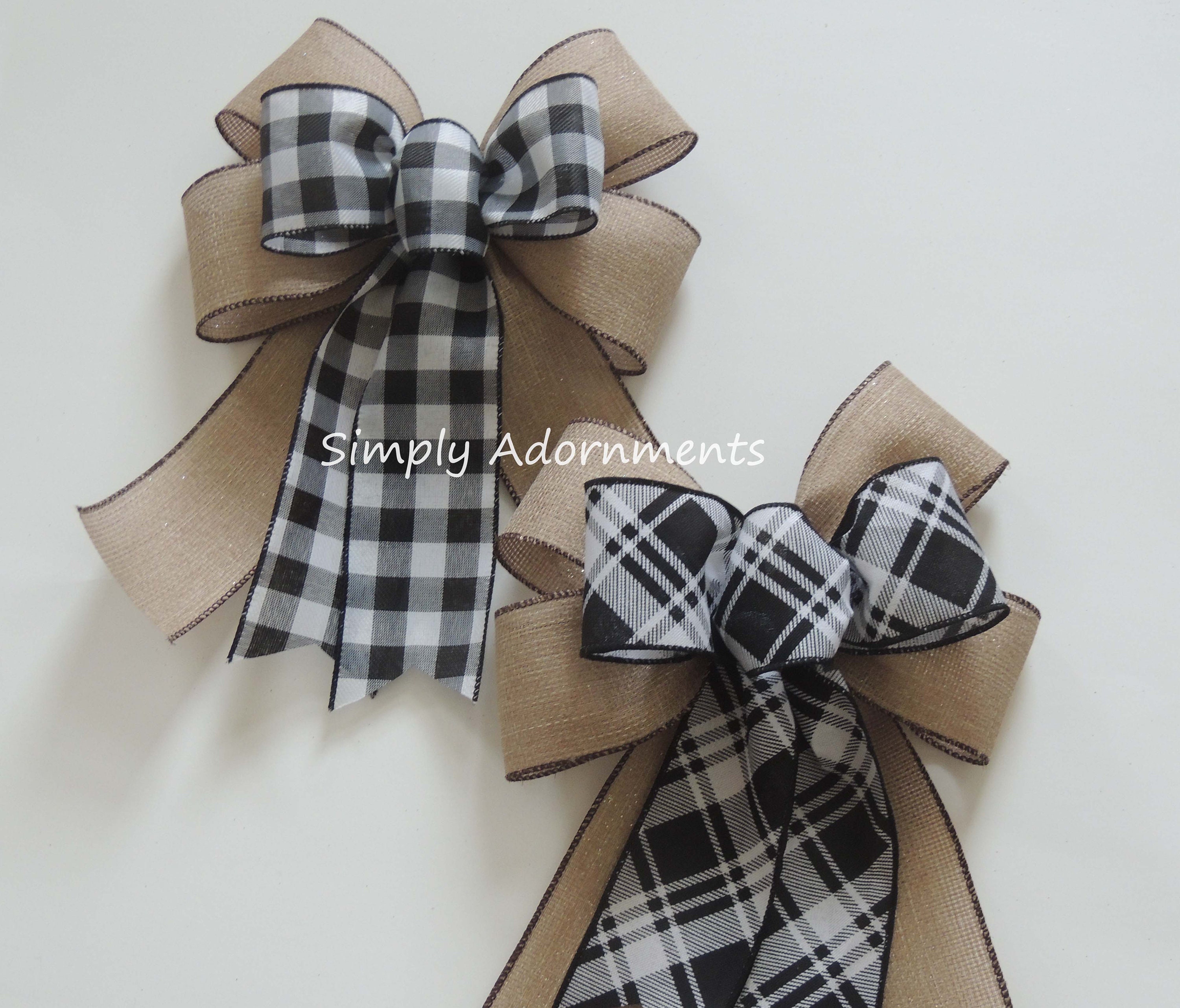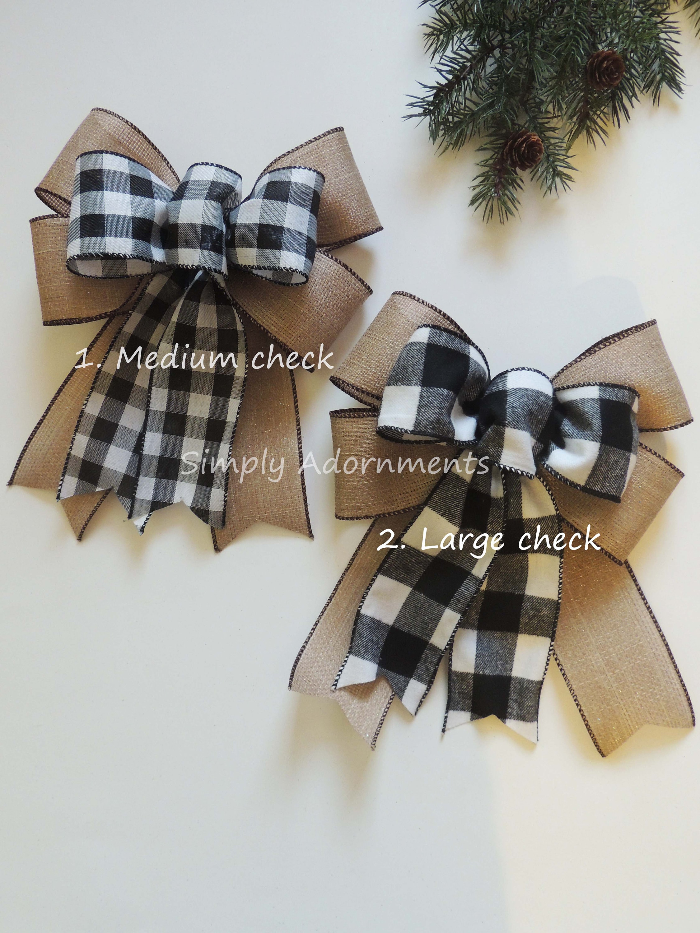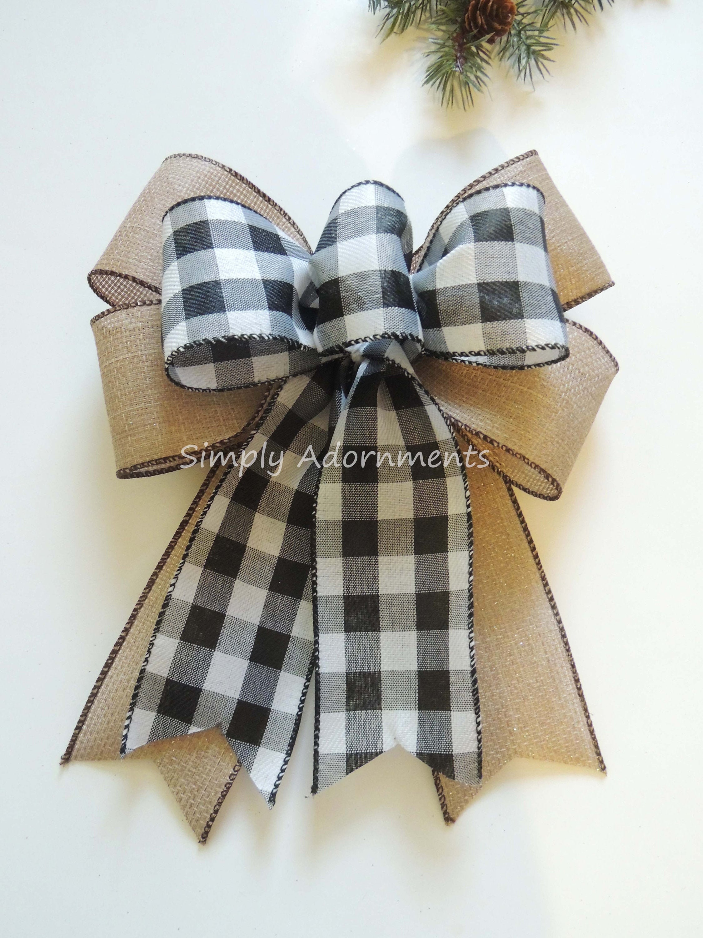 Farmhouse Wreath bow, Black White Buffalo Plaid Burlap Bow, Black White Buffalo Check bow, Farmhouse Christmas Wreath Bow, Farmhouse Bow