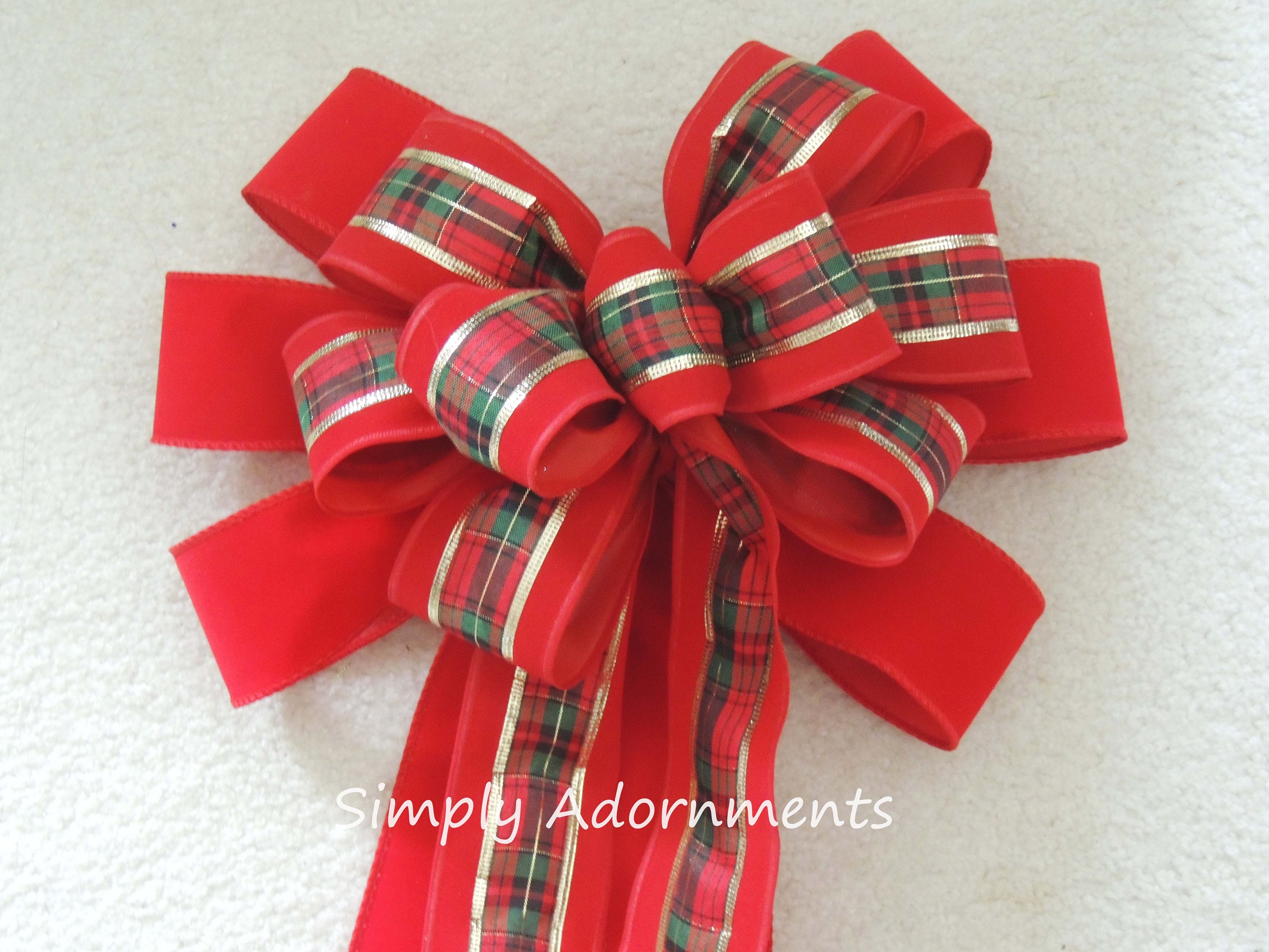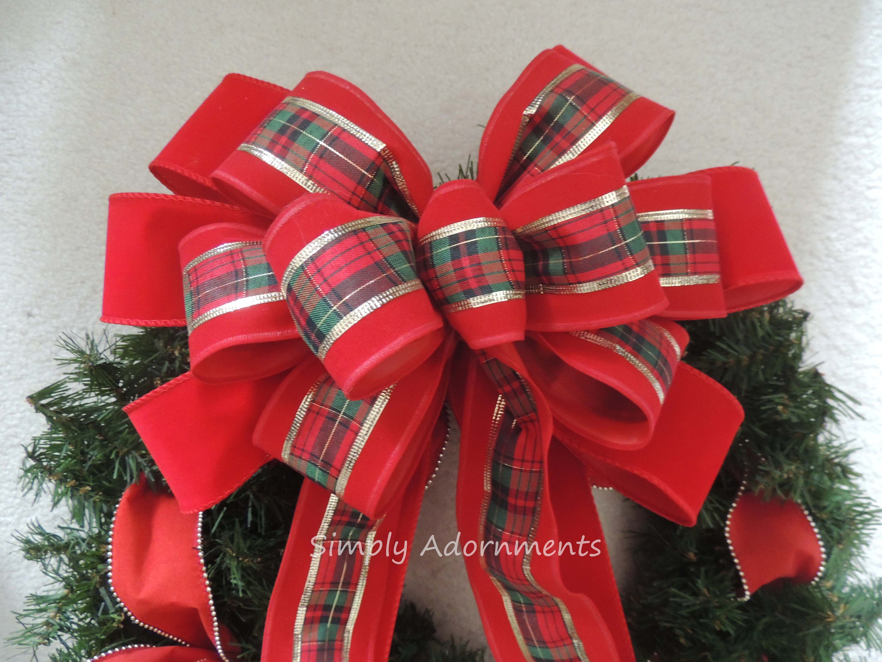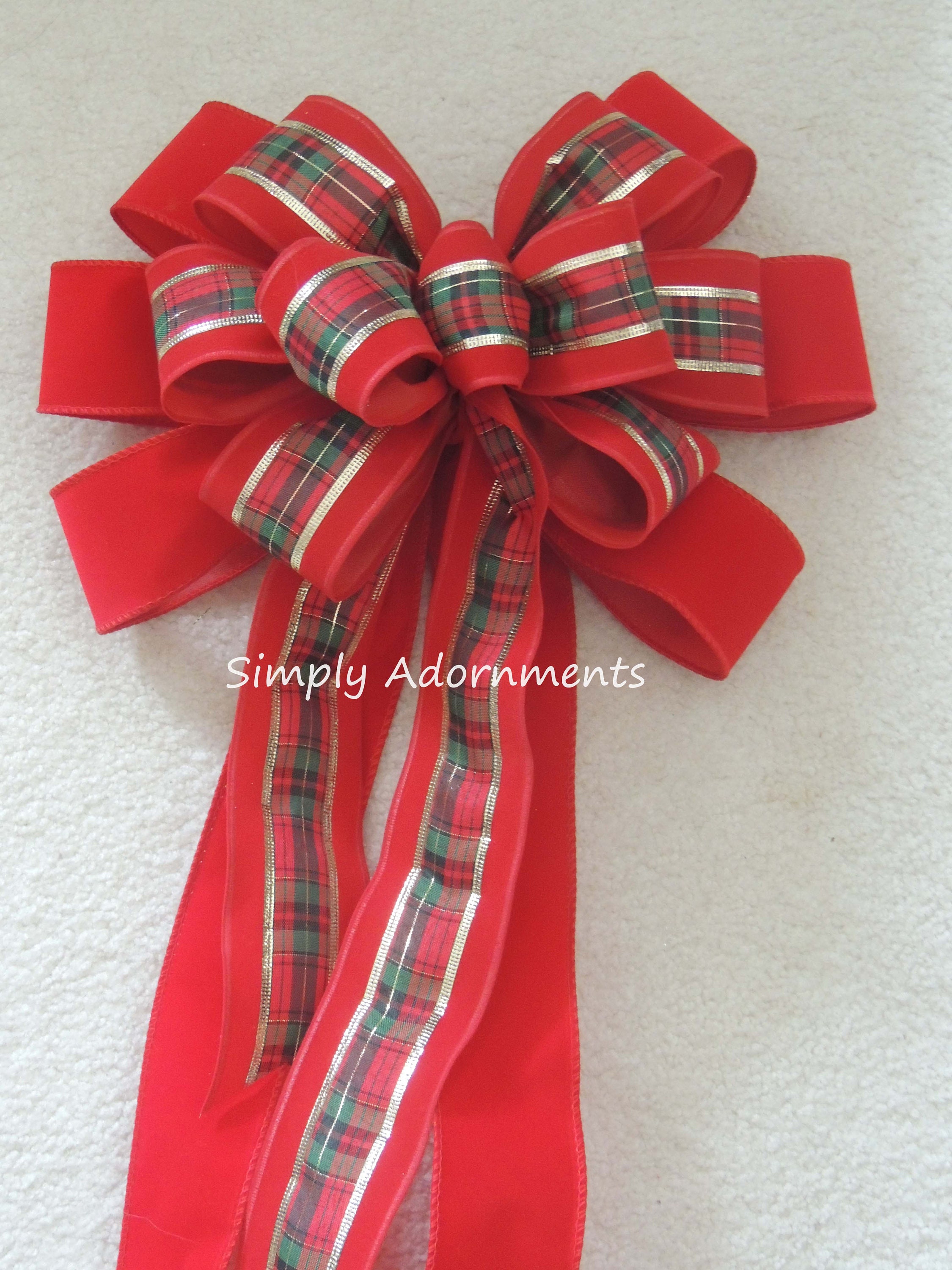 Xlarge Traditional Red Velvet Christmas Bow, XLarge Outdoor Christmas Wreath Bow, Red velvet Holidays Plaid Door Bow, Red Lamp Post Bow