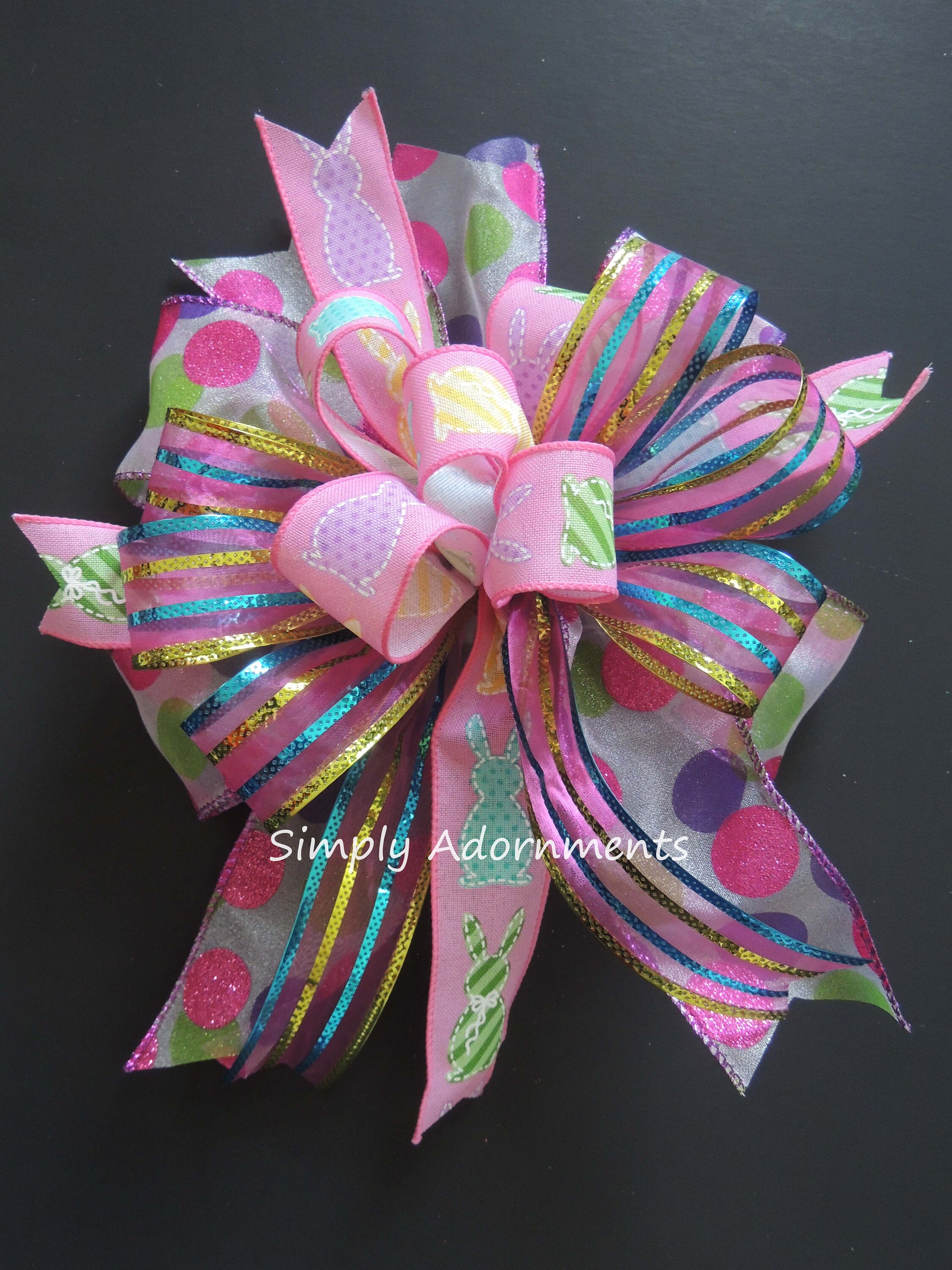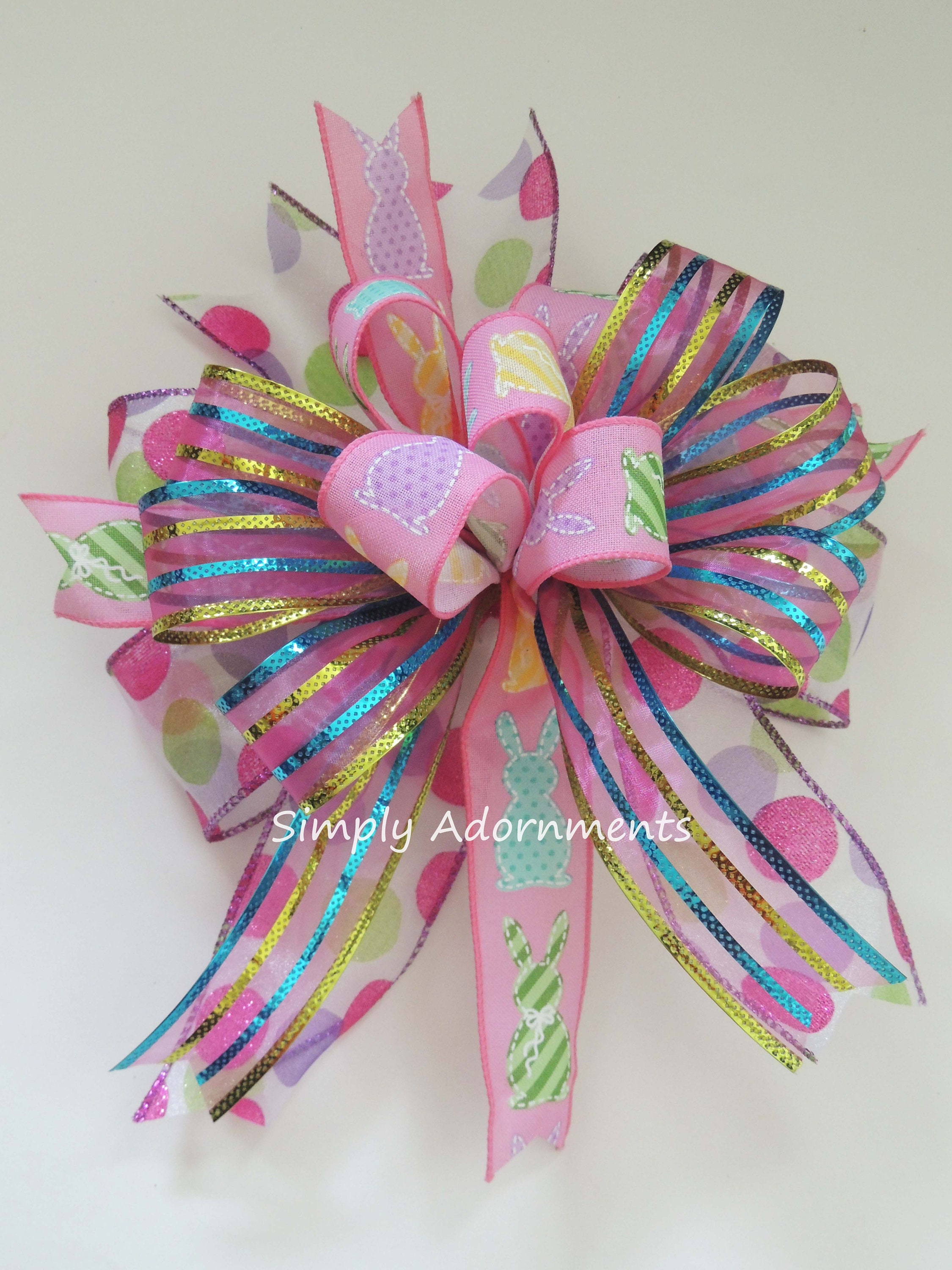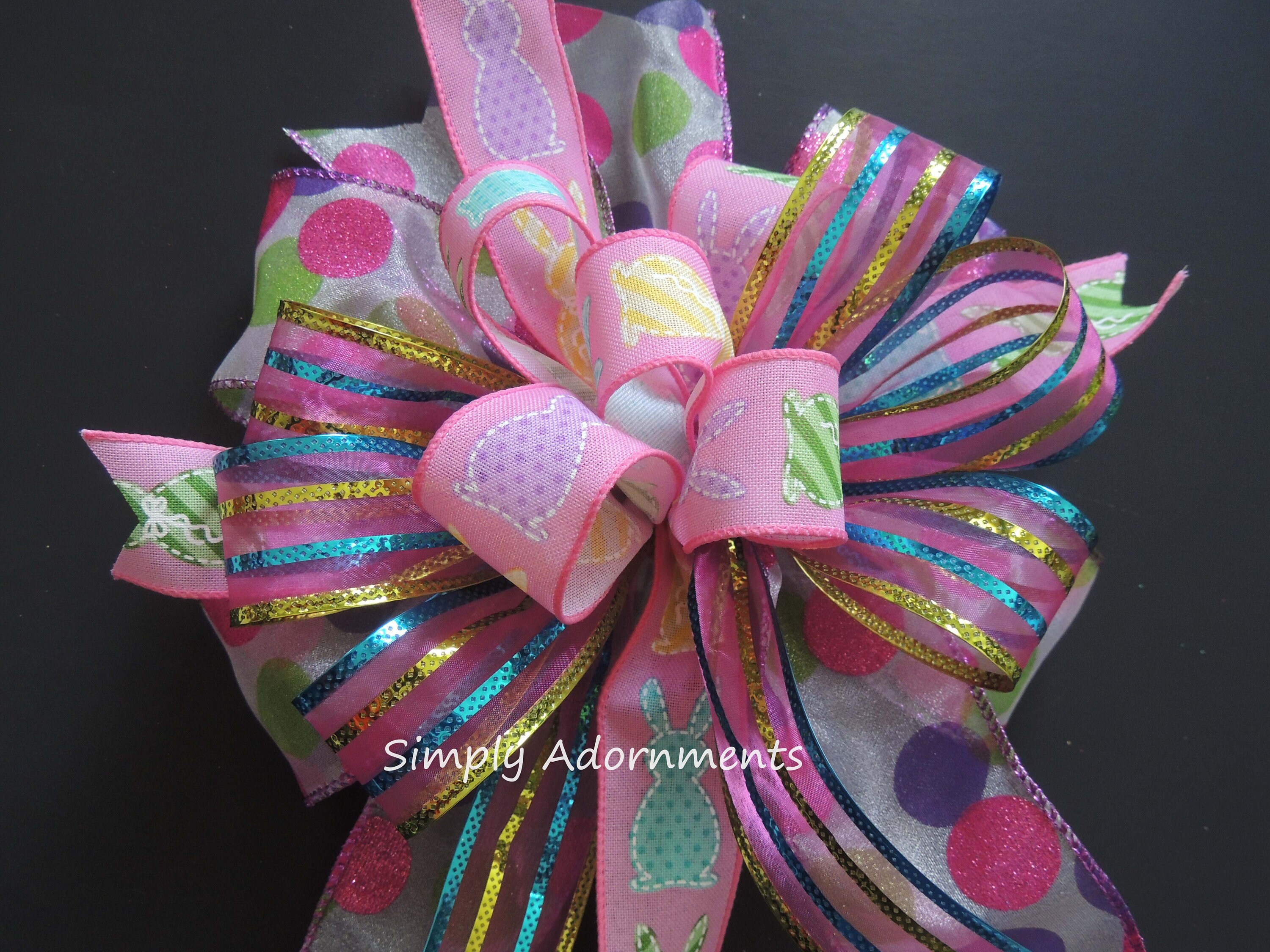 Pink Easter Bunny Bow, Multicolored Easter Bunny Wreath bow, Pink Easter bunny door bow, Pink Easter Gift Basket Bow. Easter Door Bow