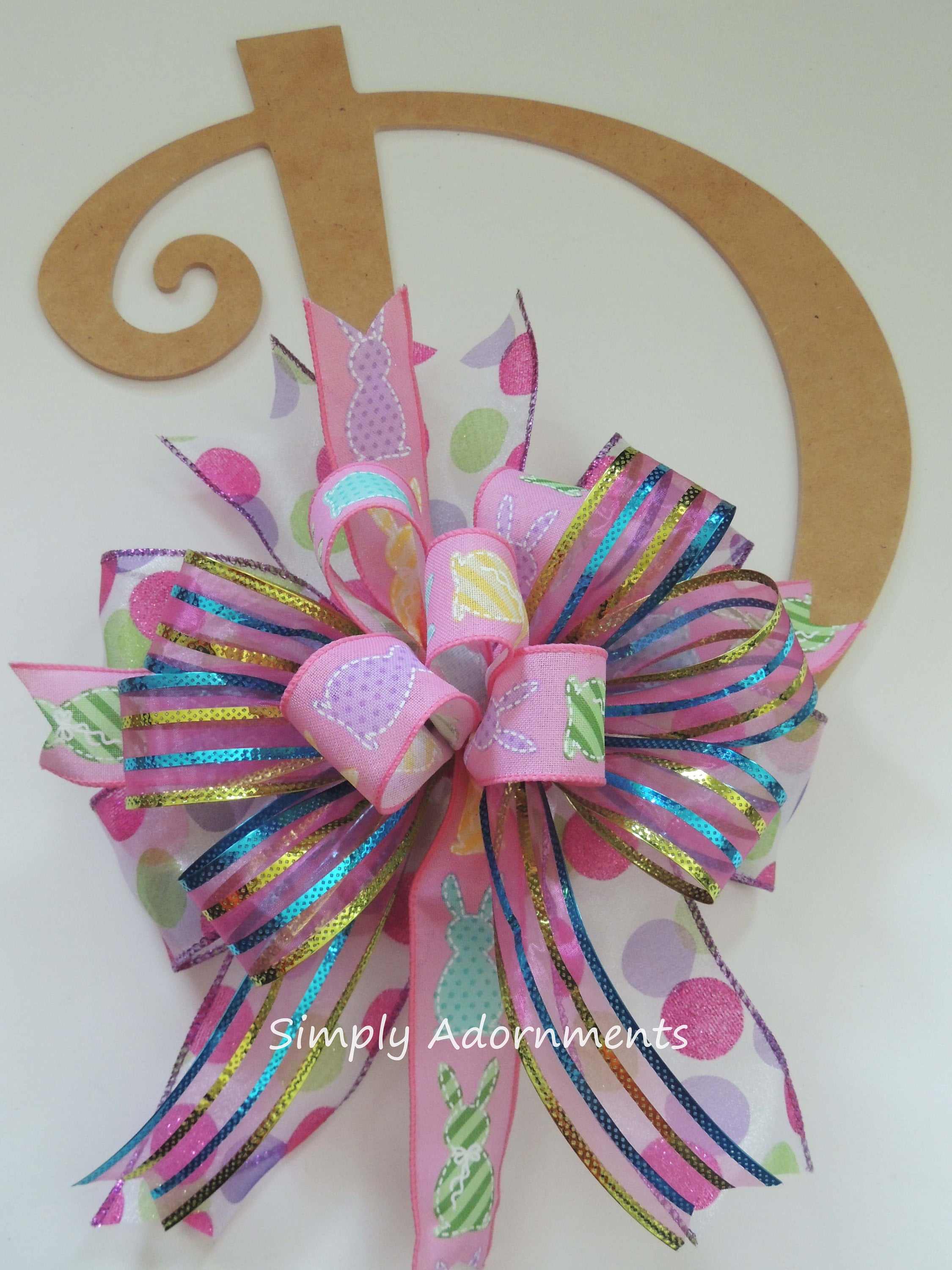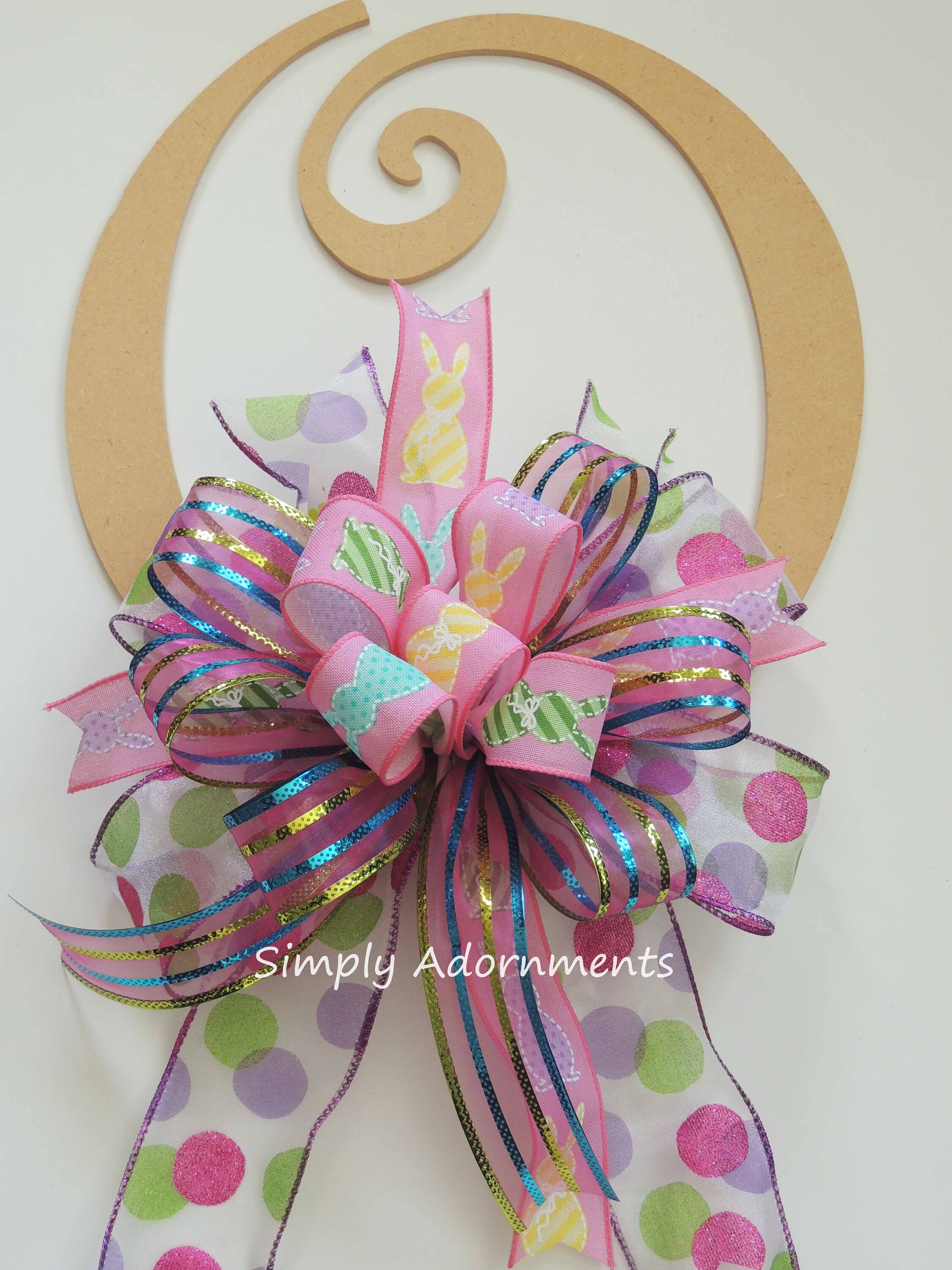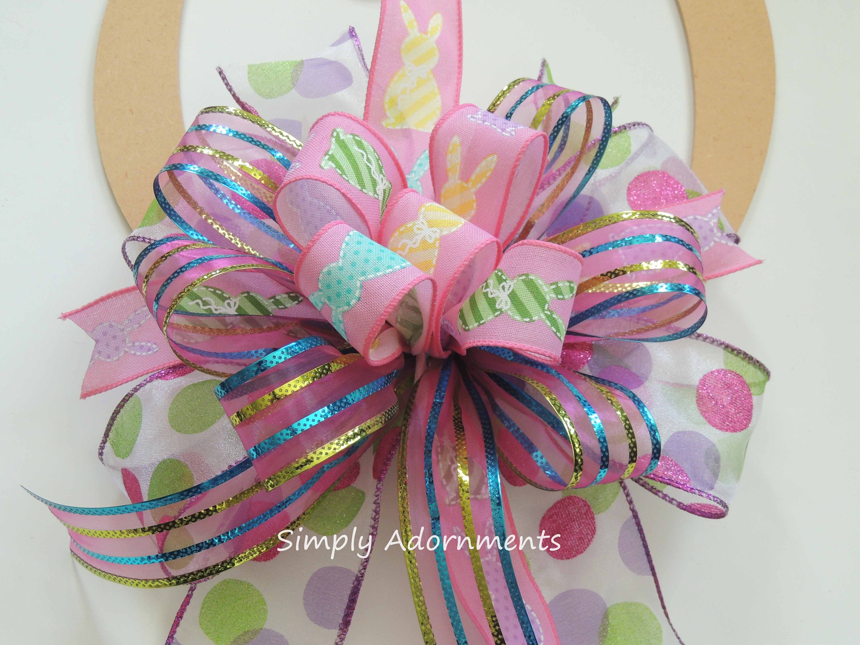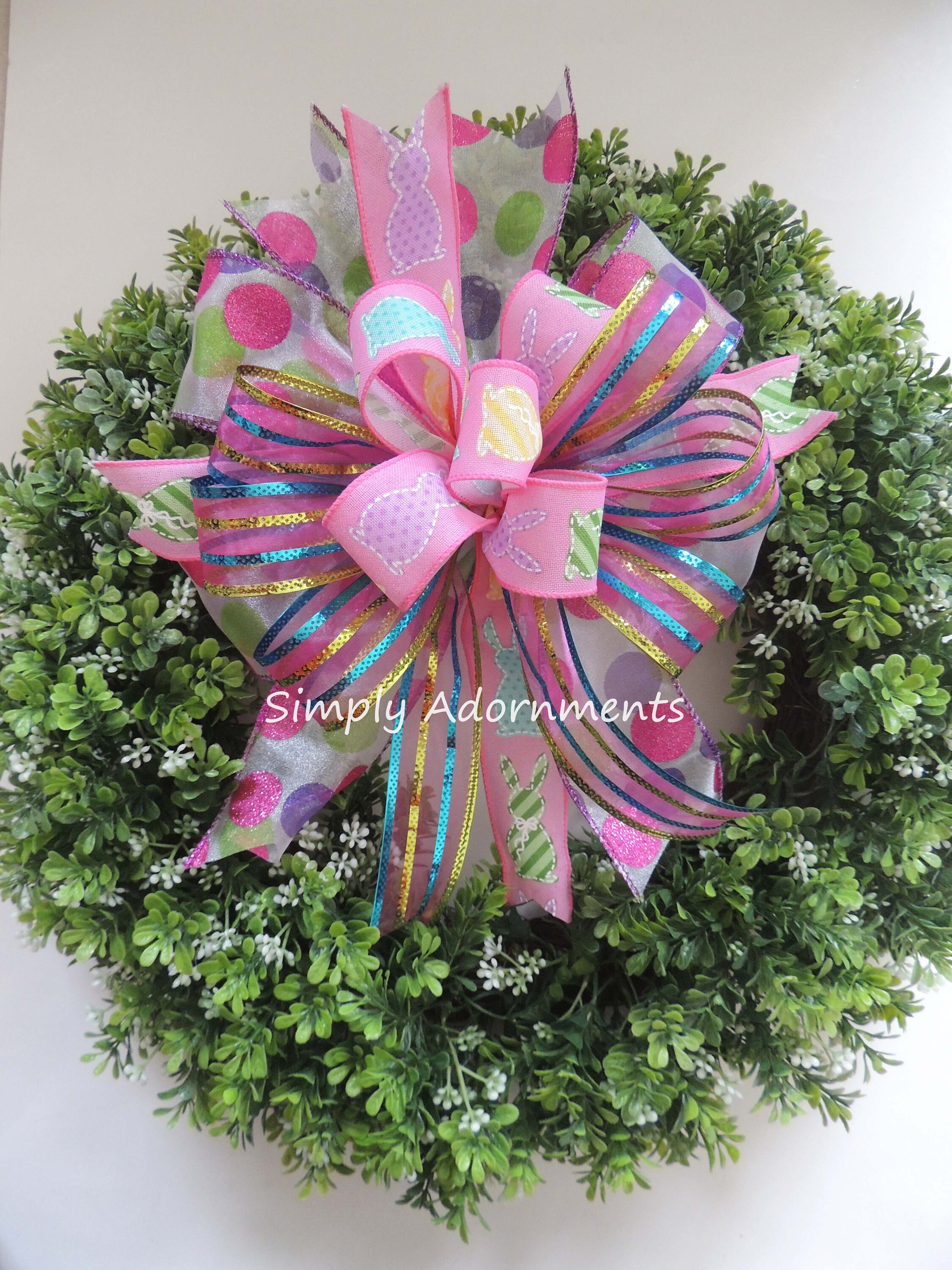 Pink Easter Bunny Bow, Multicolored Easter Bunny Wreath bow, Pink Easter bunny door bow, Pink Easter Gift Basket Bow. Easter Door Bow
