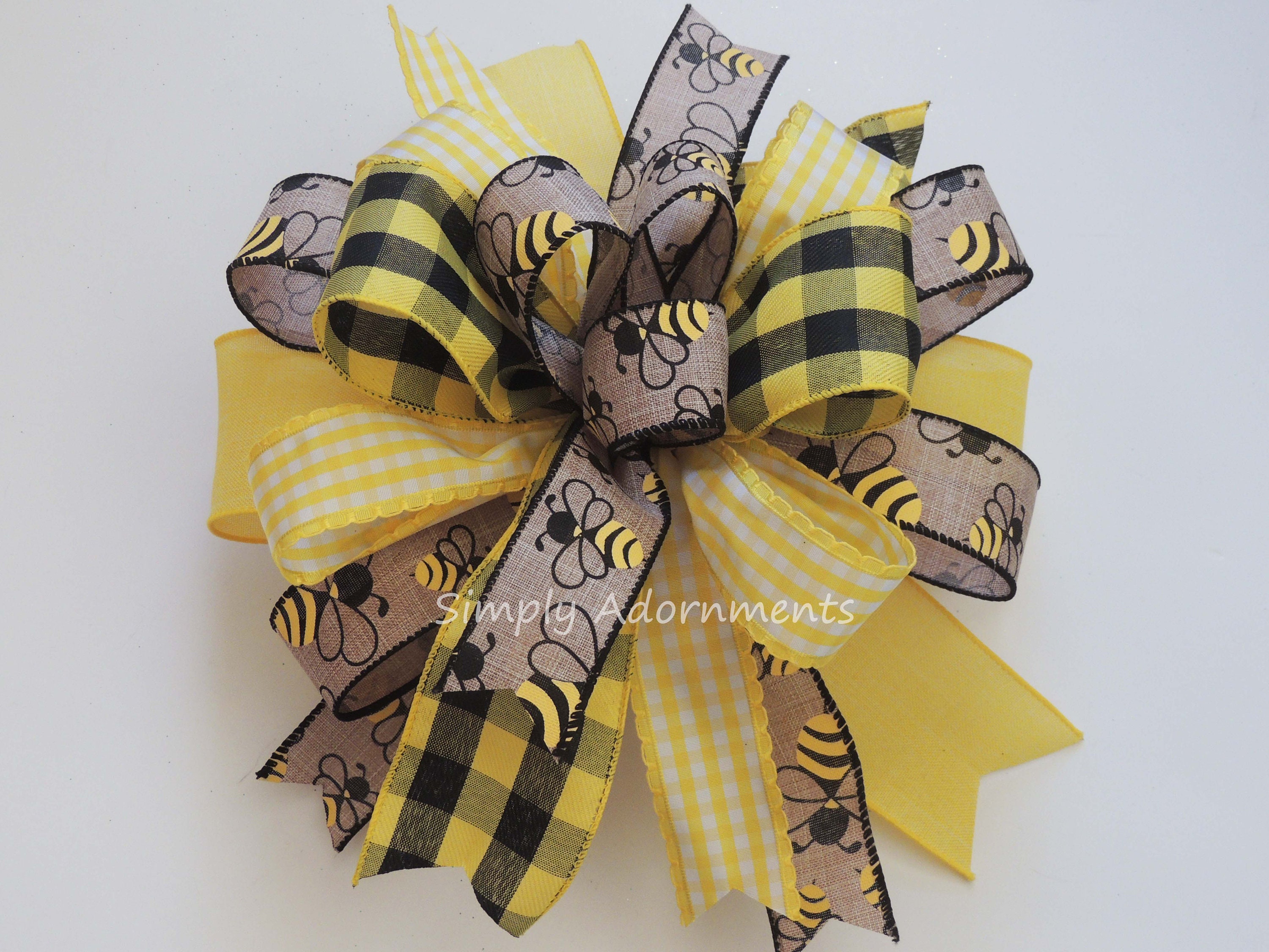 Honey Bee bow, Bumble Bee Bow, Bumble Bee birthday party decor, Bumble Bee baby shower Decor, Bumble Bee Wreath Bow, Bumble Bee party Decor