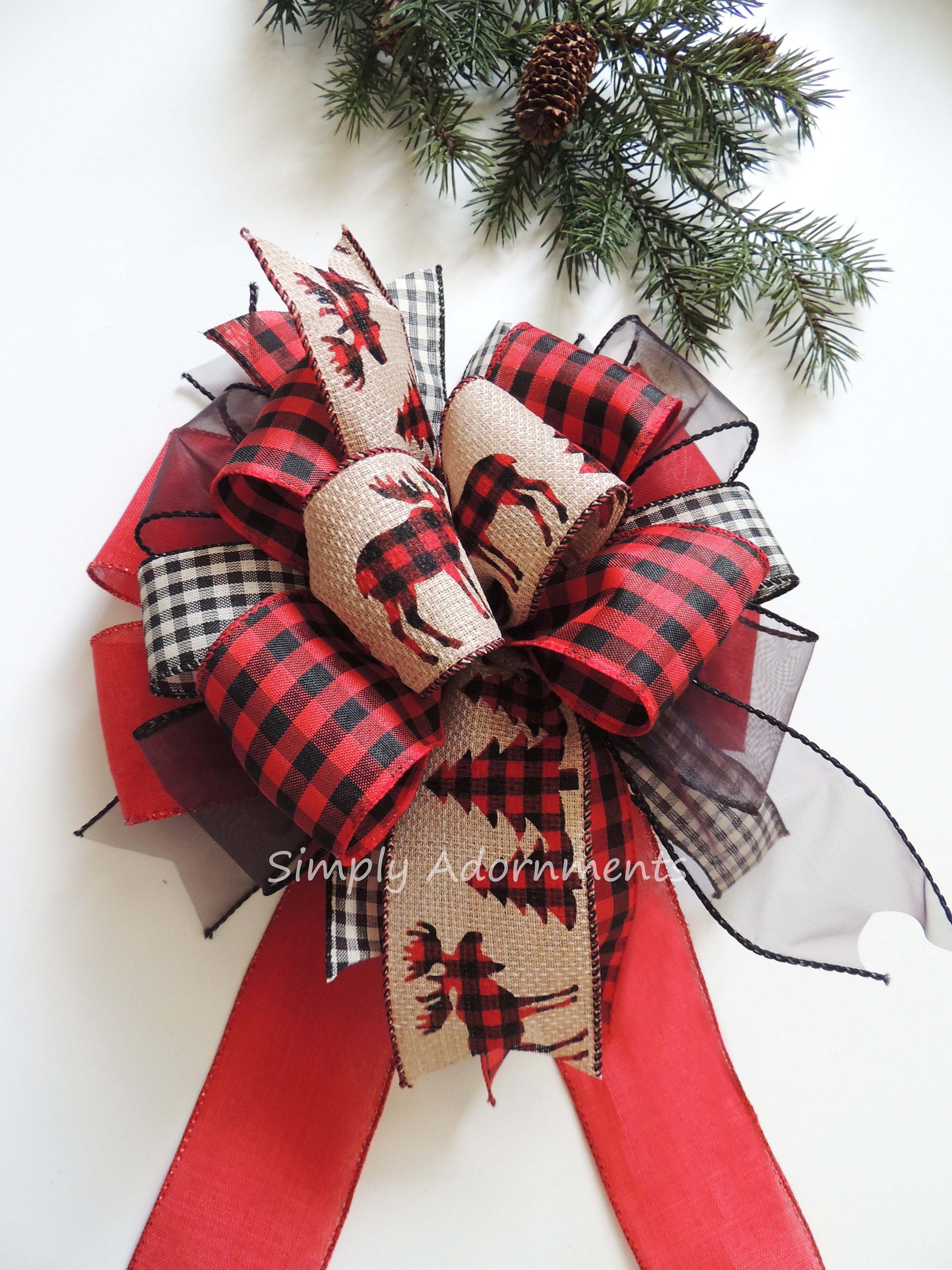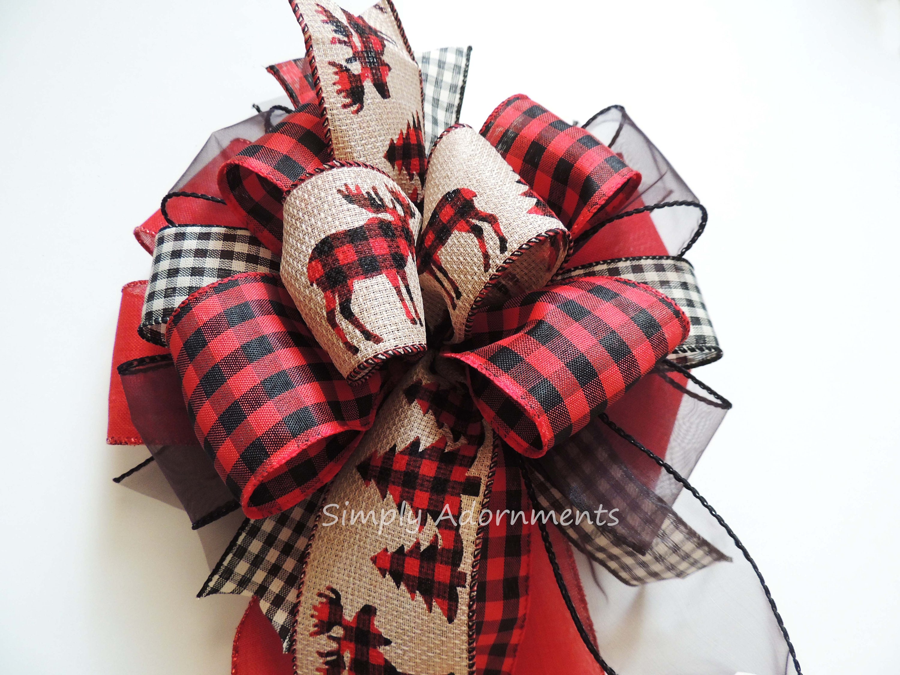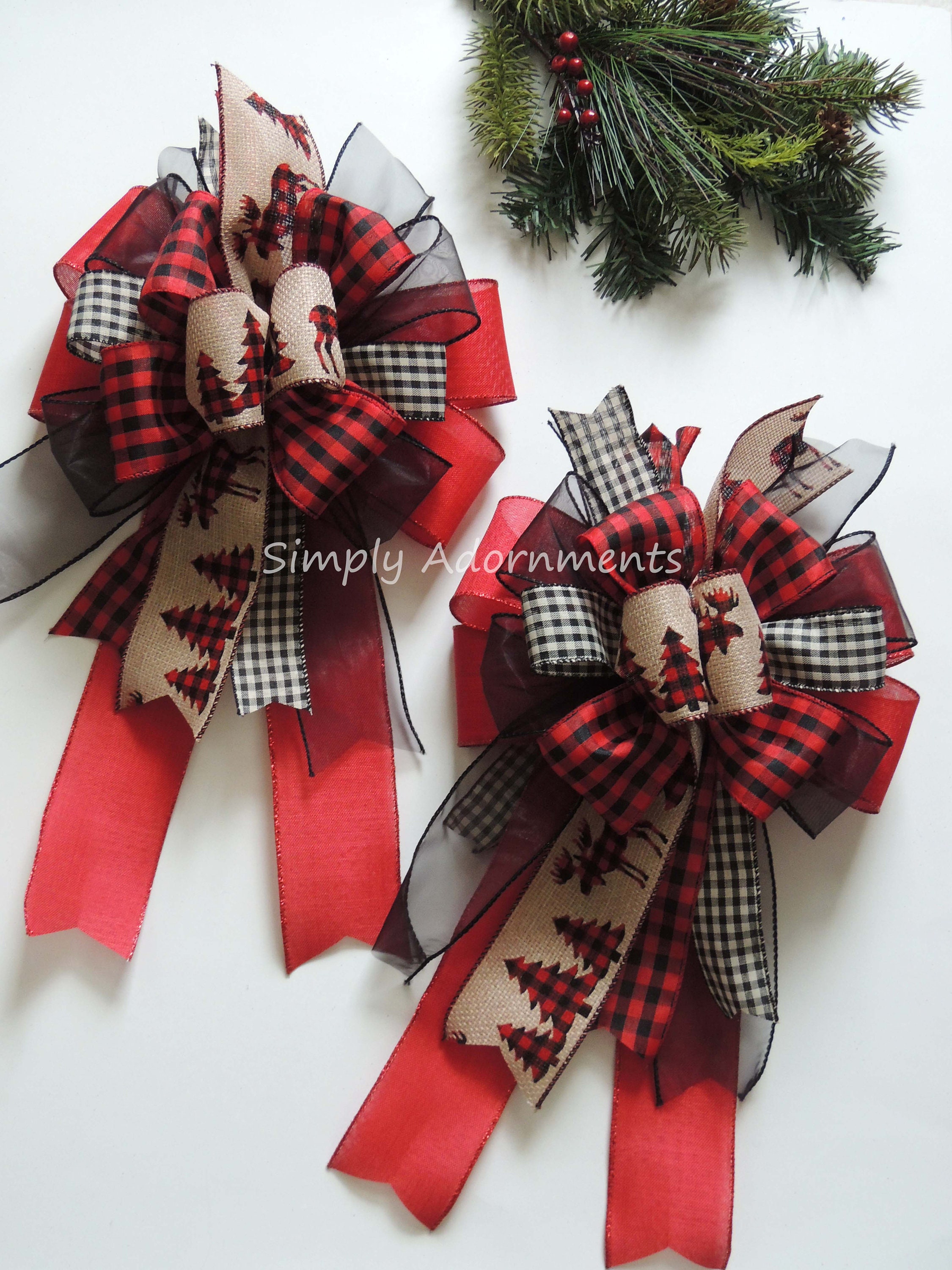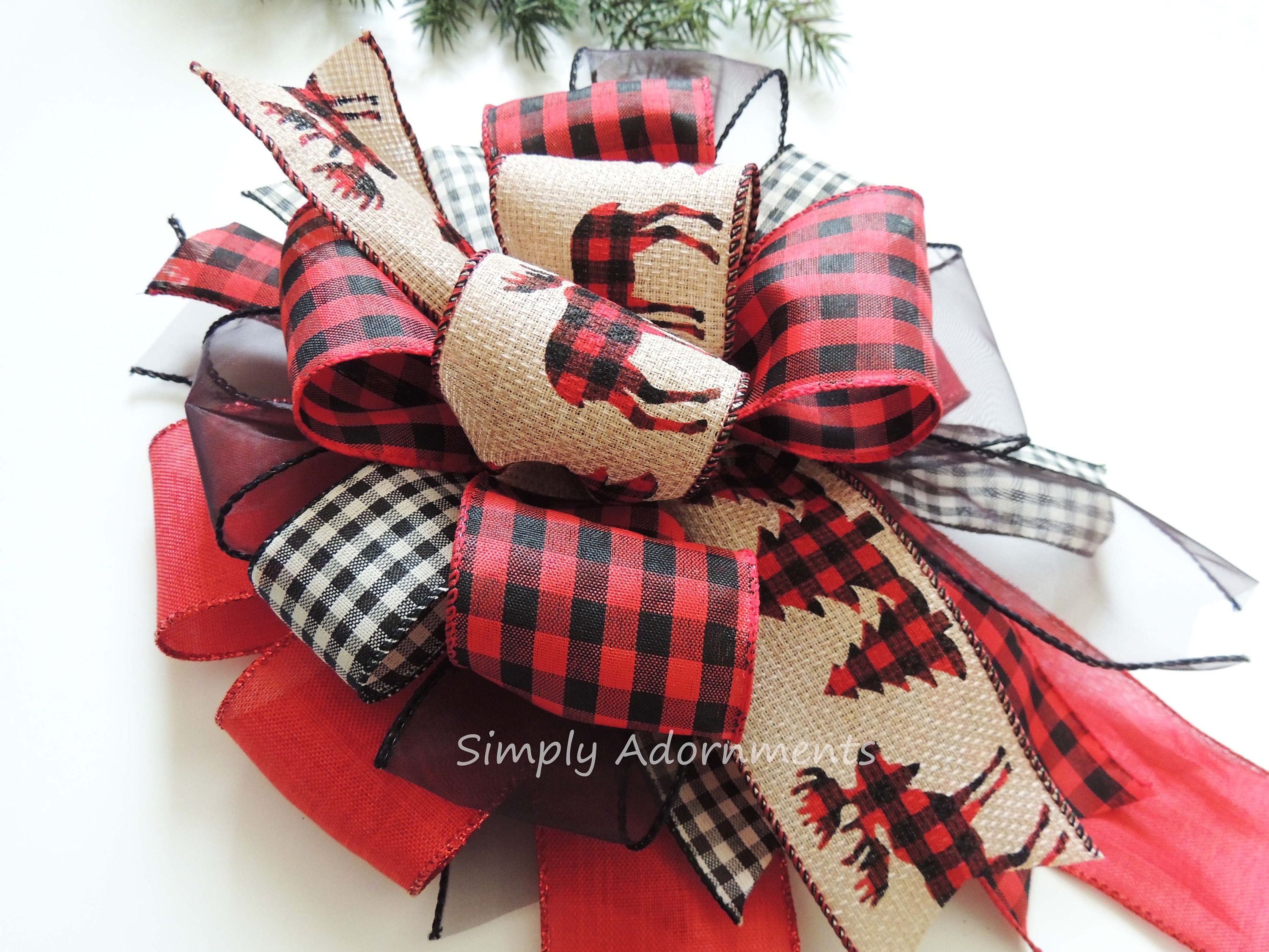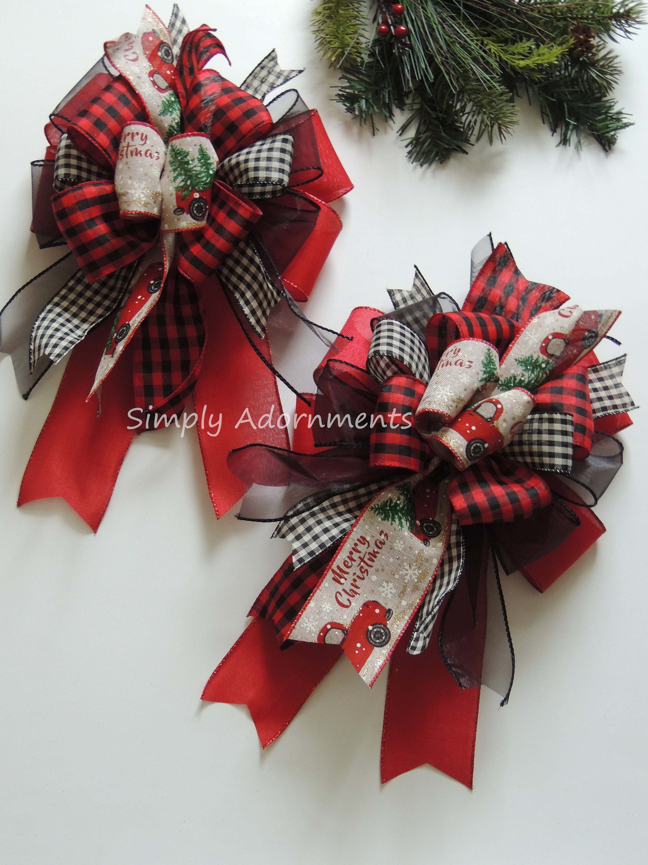 Vintage Red Truck Christmas Bow, Old Red Truck Farmhouse Christmas Bow, Red Truck Christmas Lantern Bow, Farmhouse Black red Check plaid bow