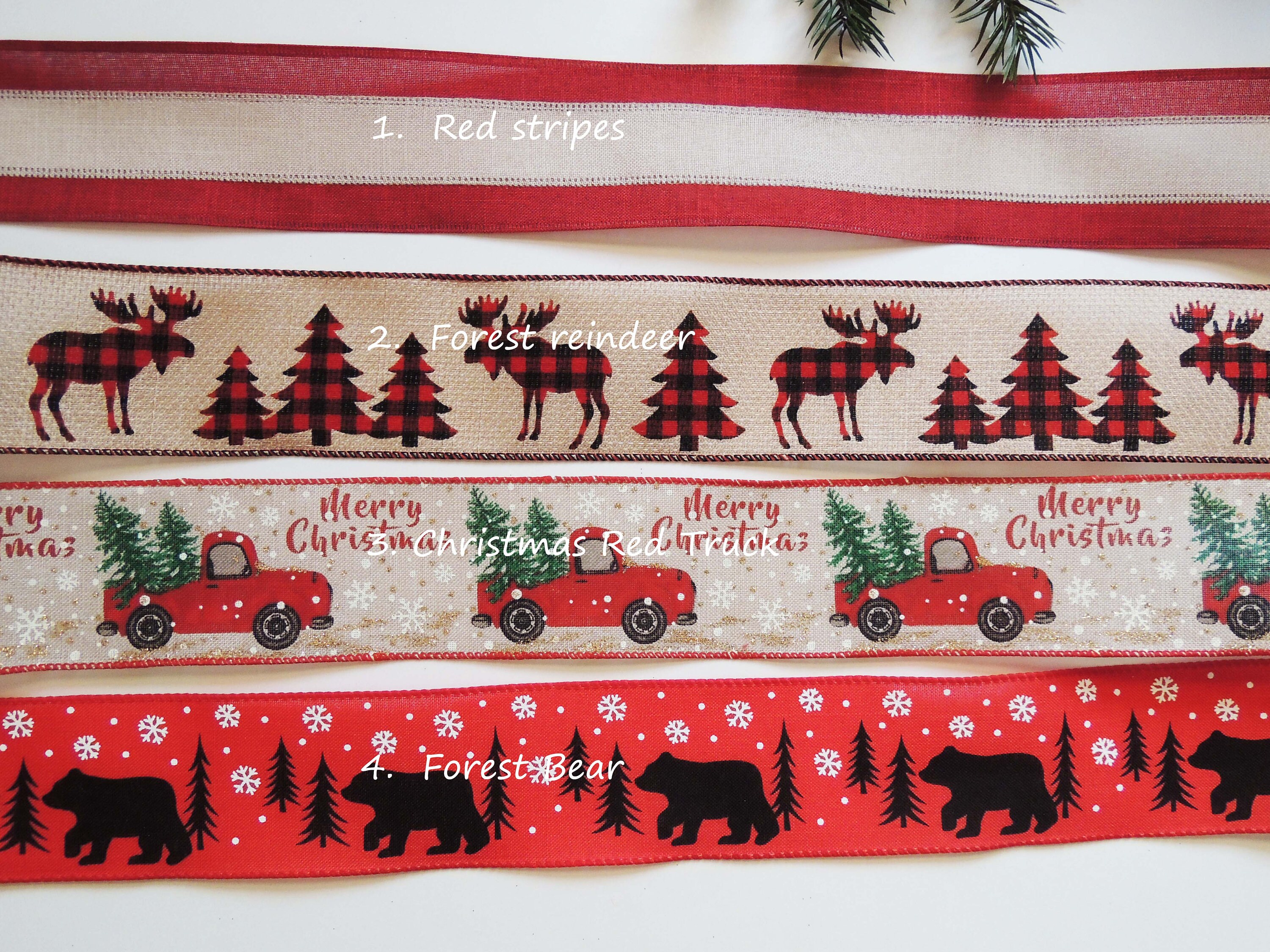This bow is made of 5 different pattern ribbons. The ribbons are 2.5" and 1.5" width wire-edged ribbons. The bow length (L) is measured from top of the bow to the end of it tails. Please select the bow size before checking out. The bow shown in the 9th picture listing is the sample of the 20" length option.