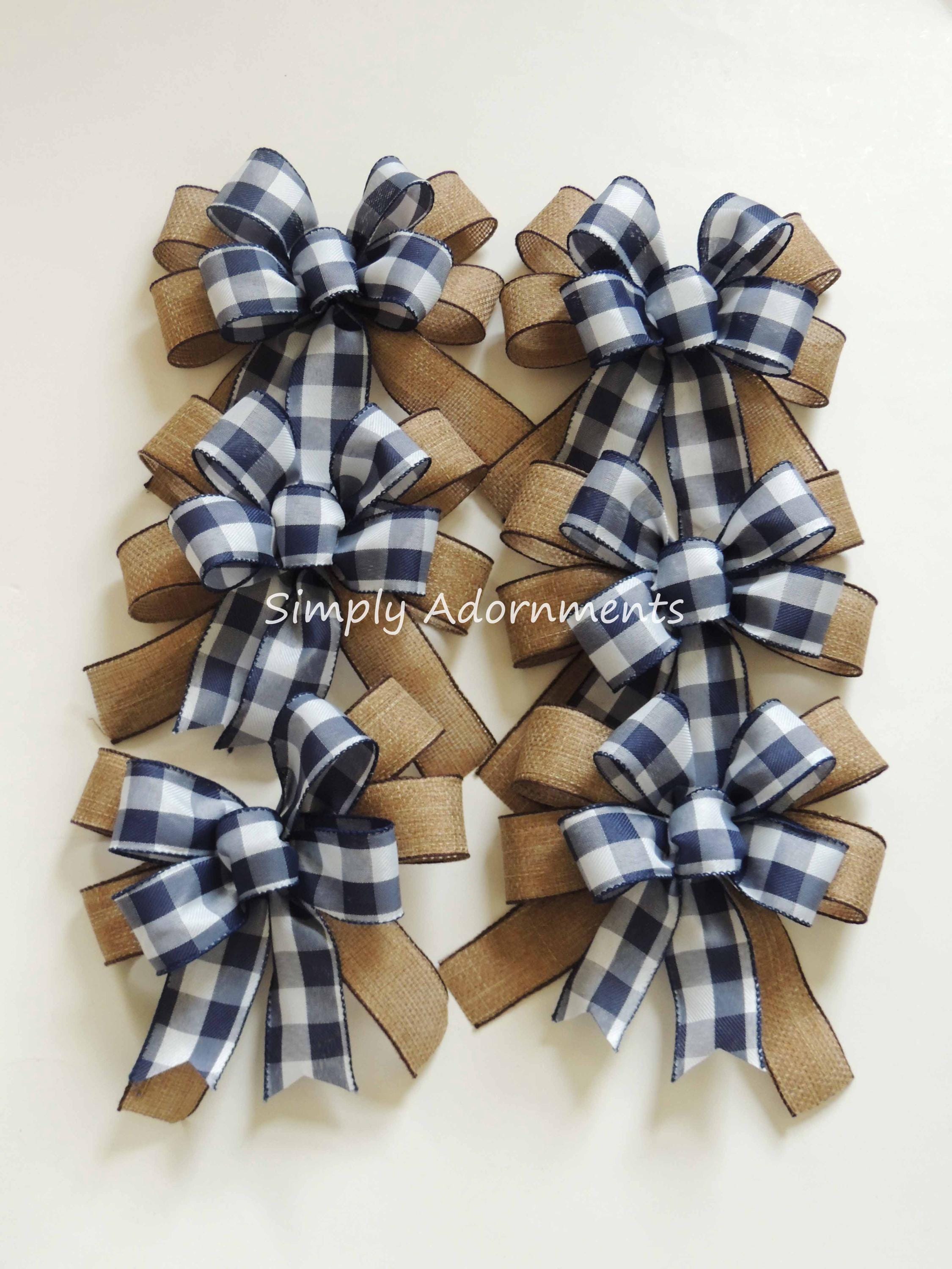 Farmhouse Navy Buffalo Check Gift Bow, Burlap Navy check door bow, Rustic Navy White Check farmhouse Bow, Rustic patriotic Navy basket bow