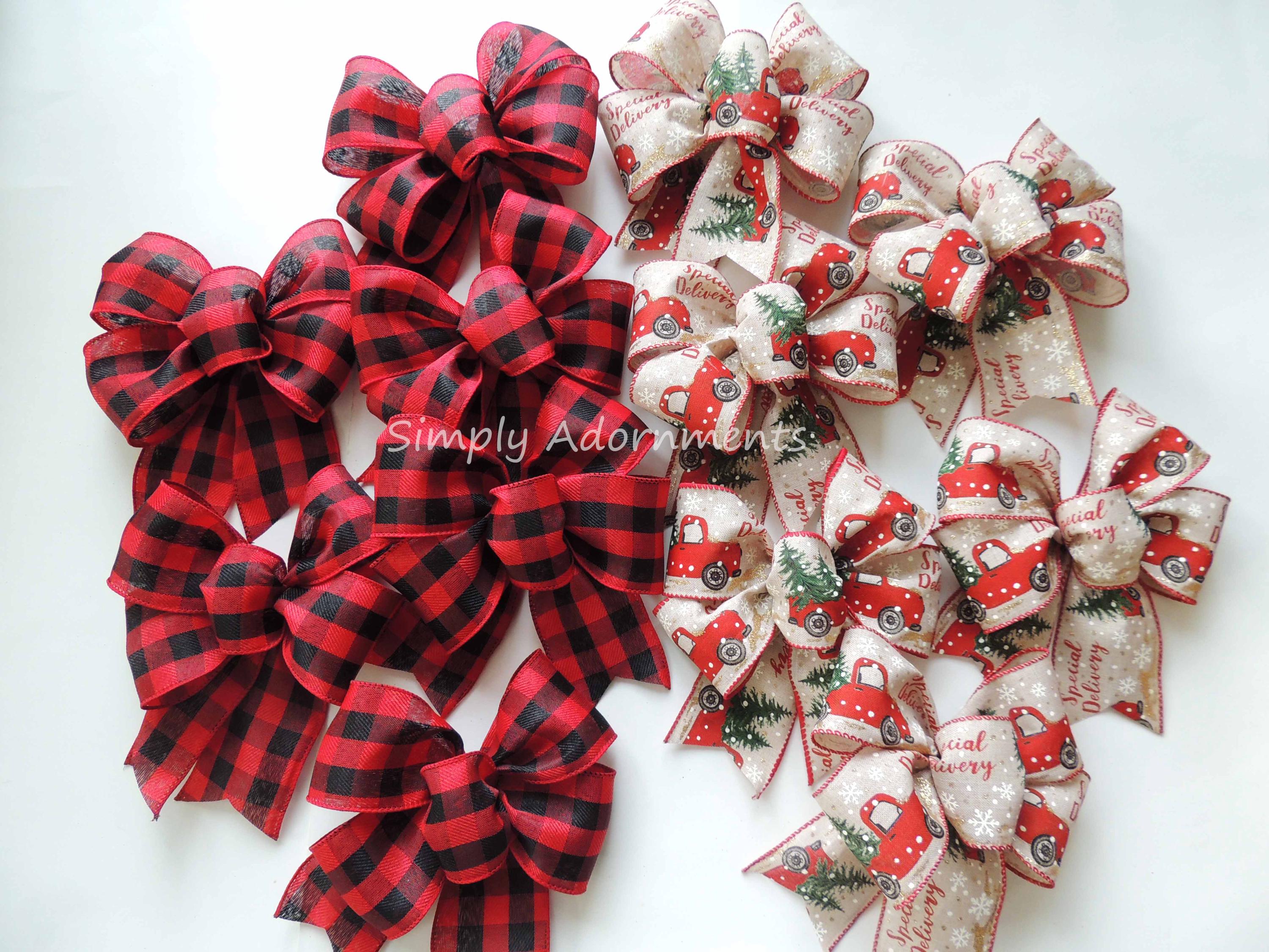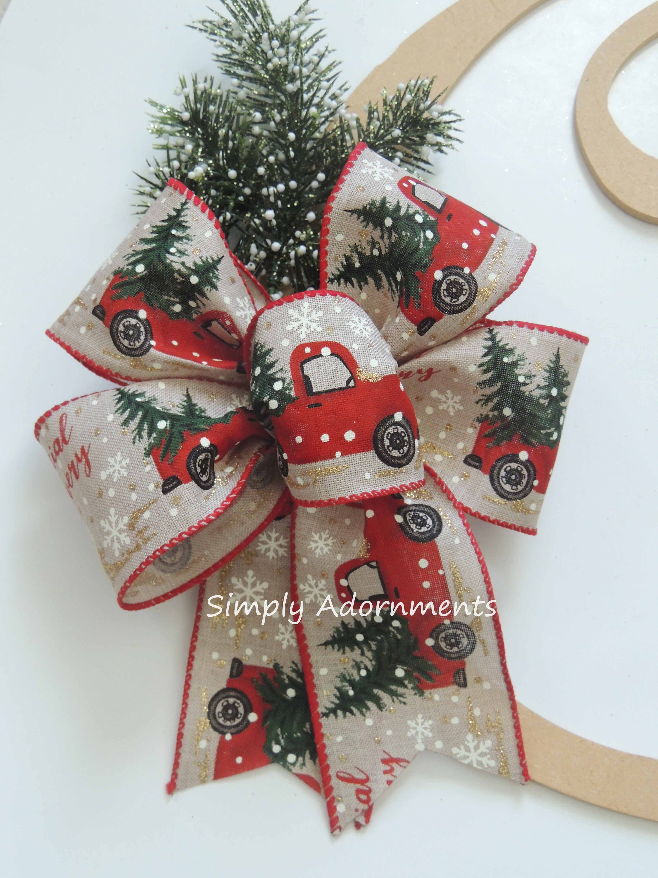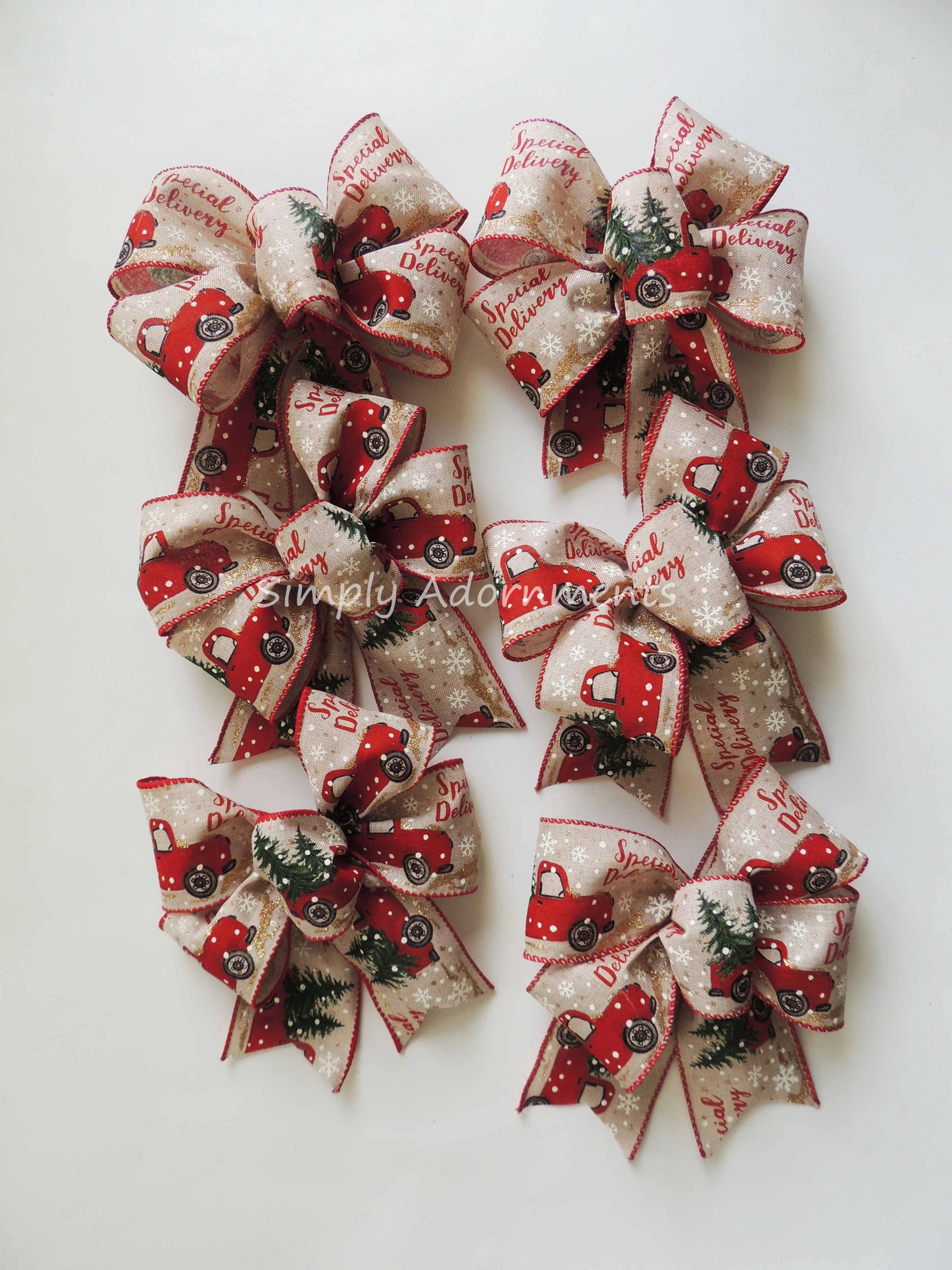 2 Mini Vintage Red Truck Christmas Bows, Red Truck Farmhouse Christmas Gift bows, Red Truck sign Bows, Rustic Red Truck Farmhouse door bows