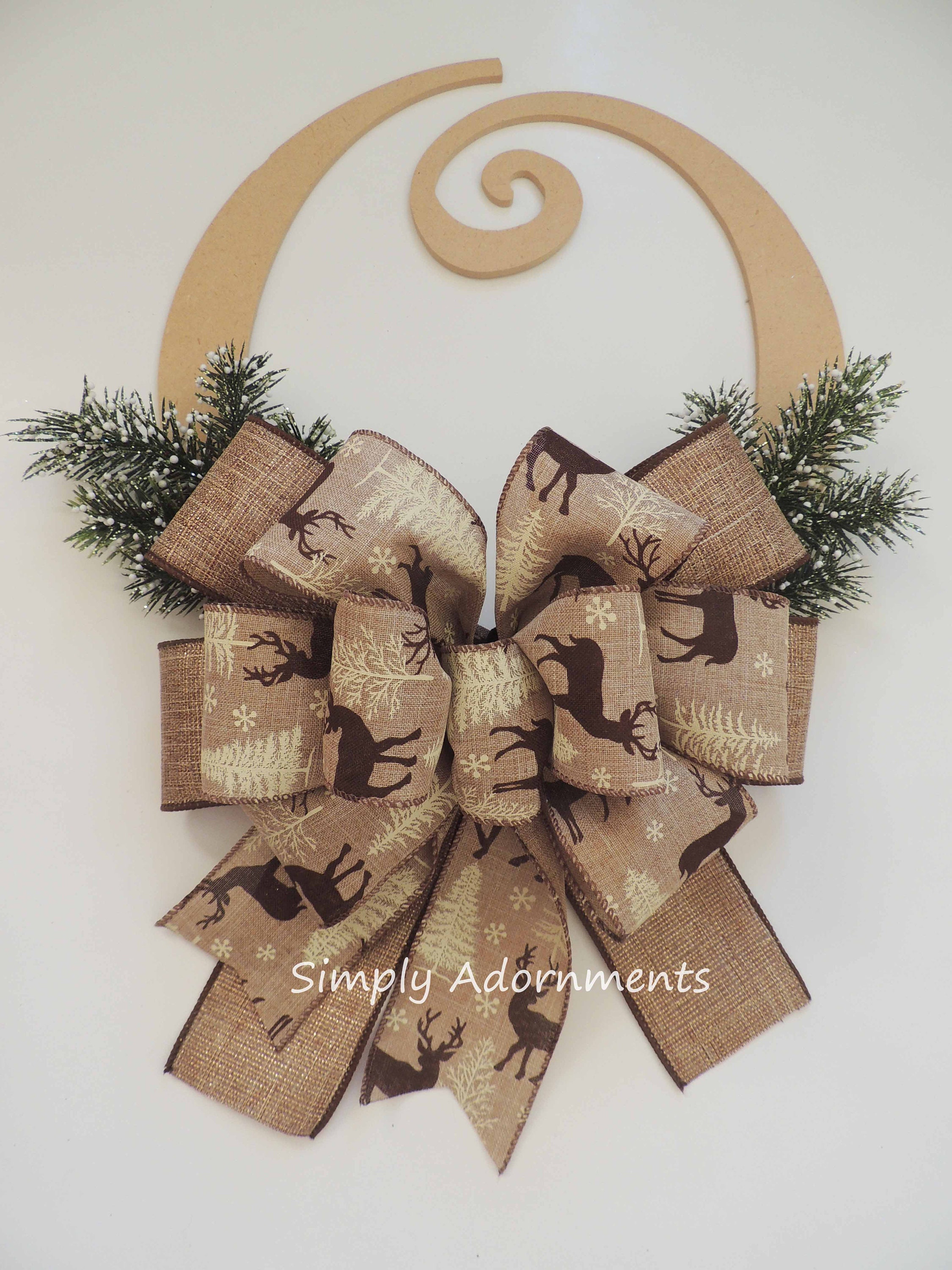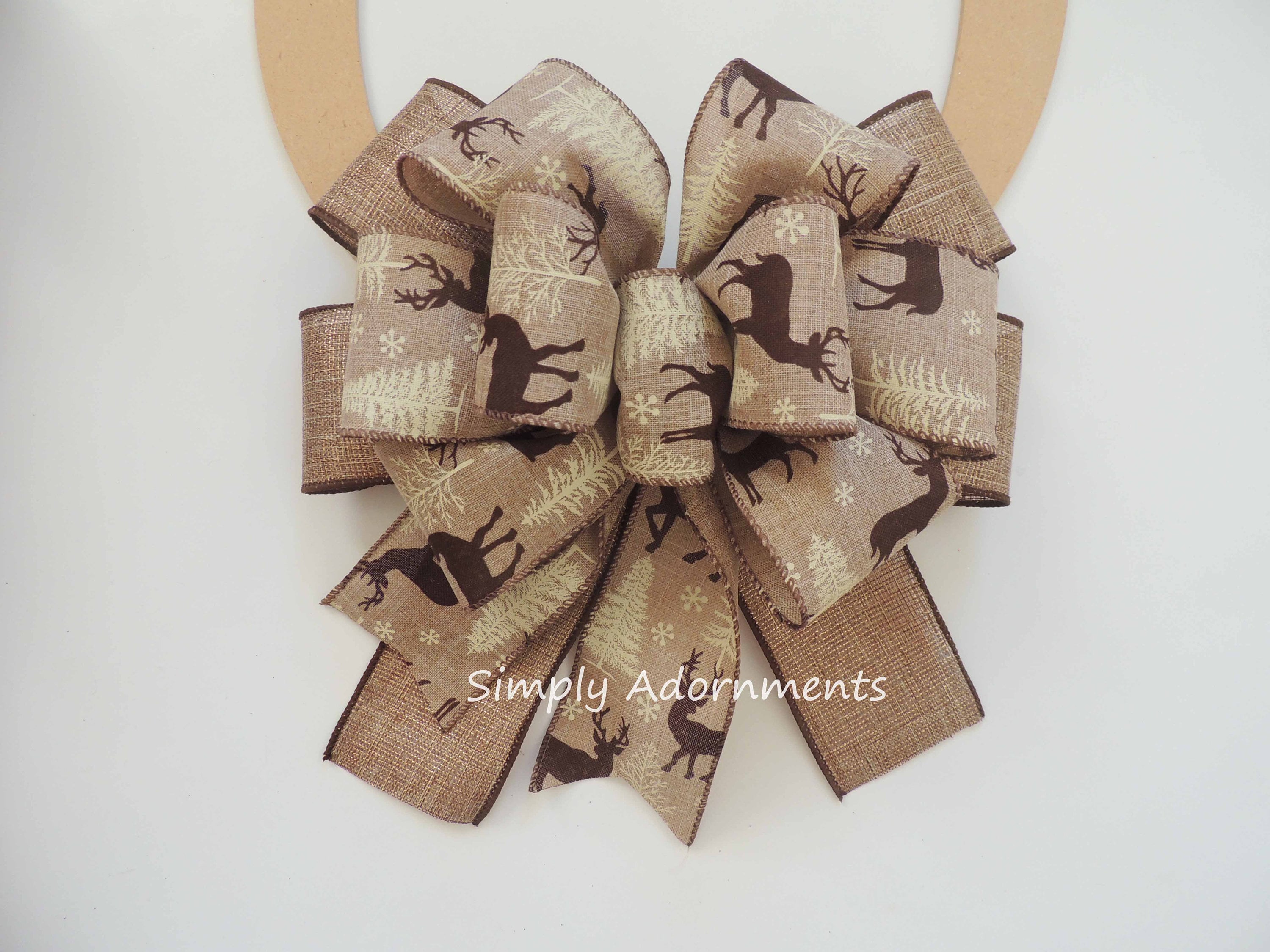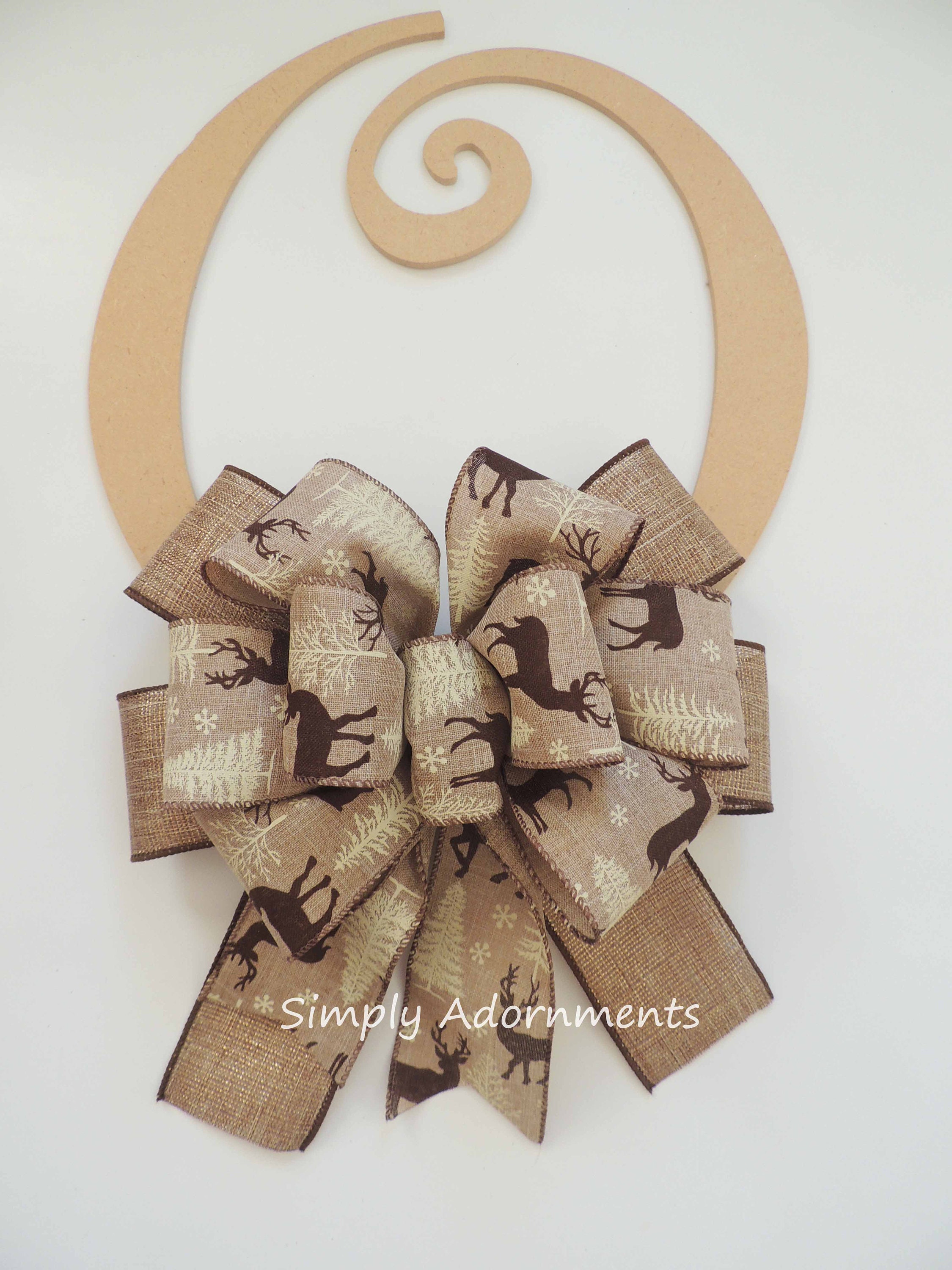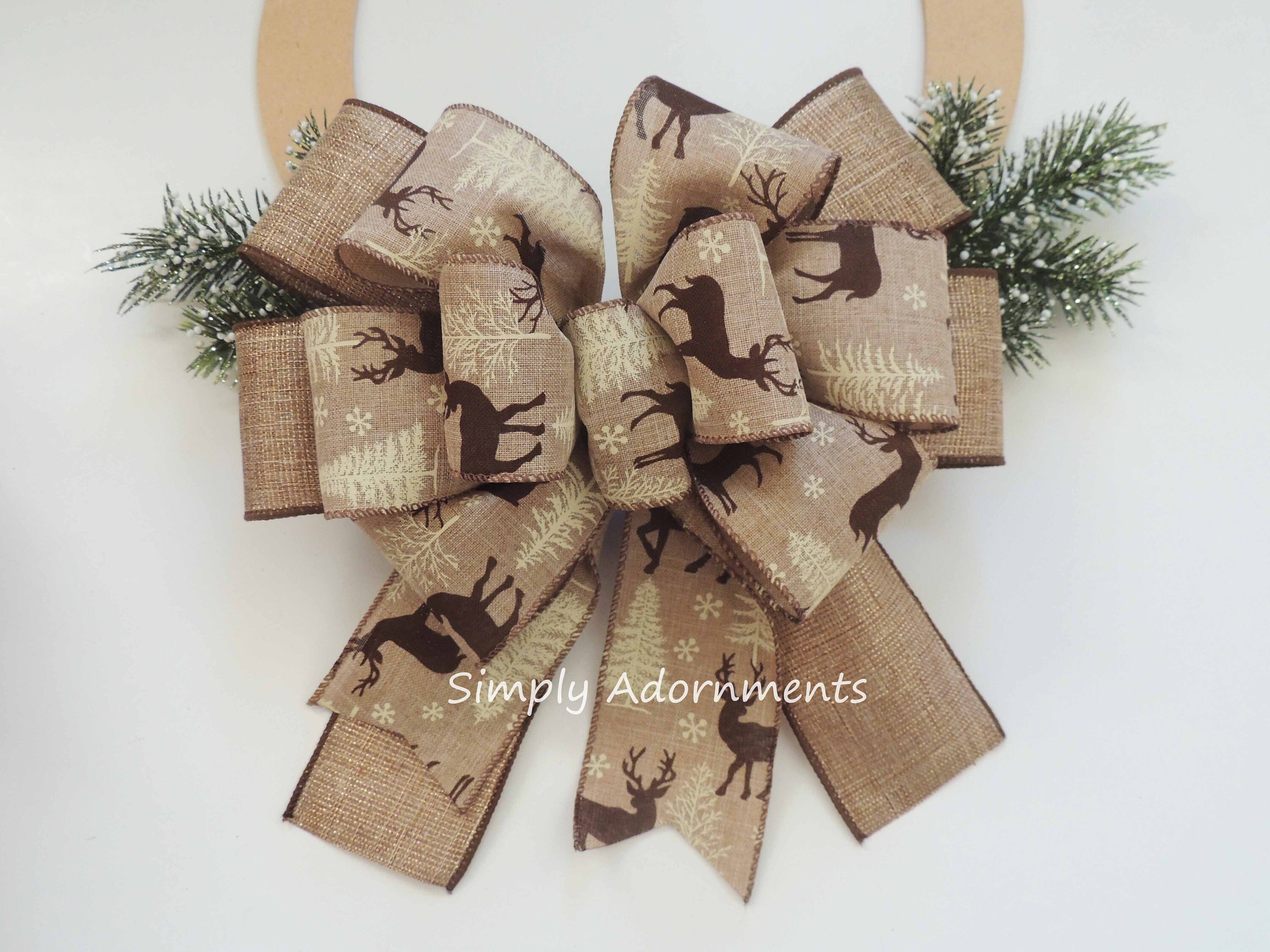 Rustic Reindeer Christmas Bow, Woodland Reindeer Christmas wreath Bow, Woodland Christmas Reindeer Burlap Bow, Christmas Reindeer door Bow, Christmas sign bow