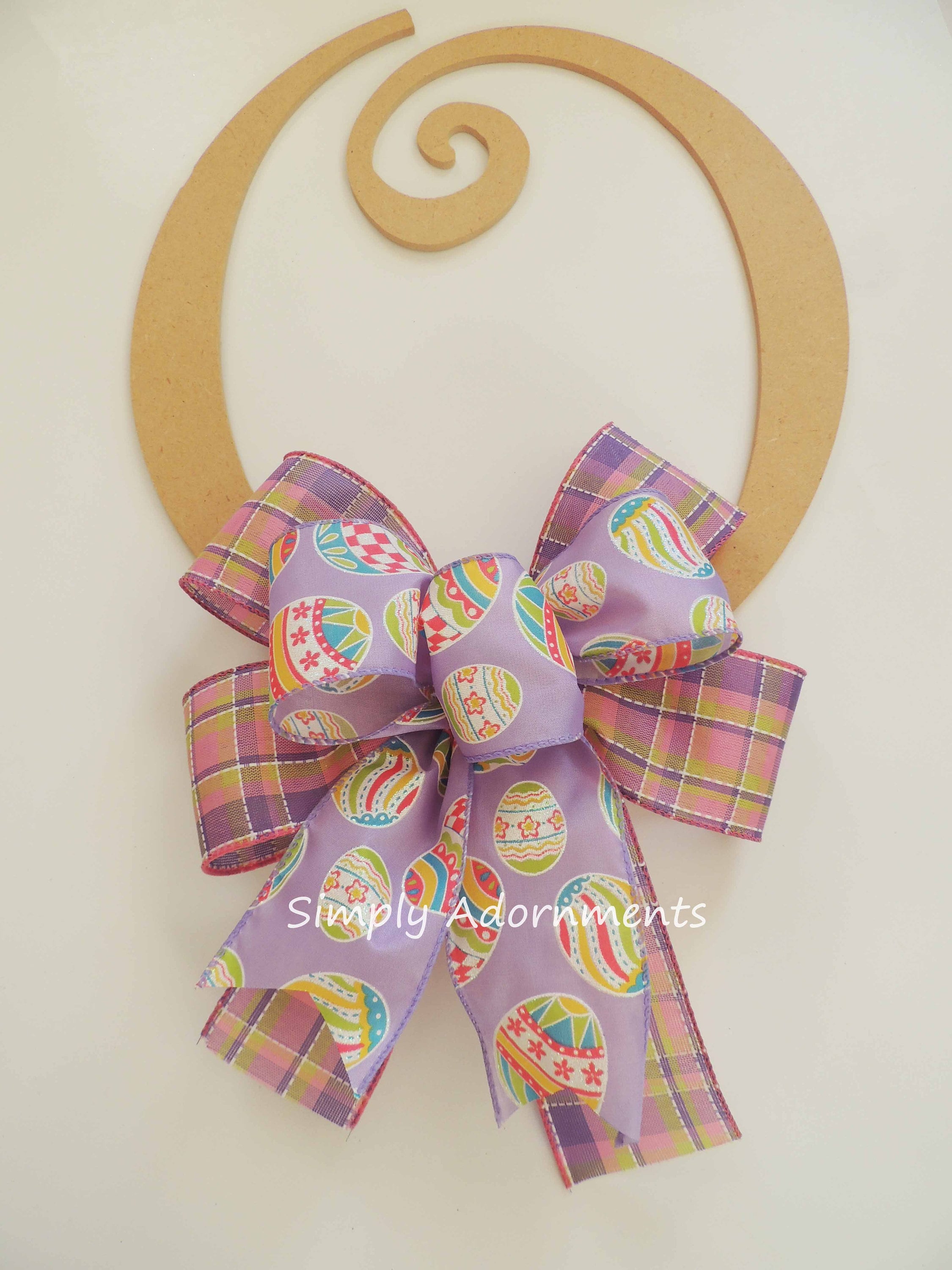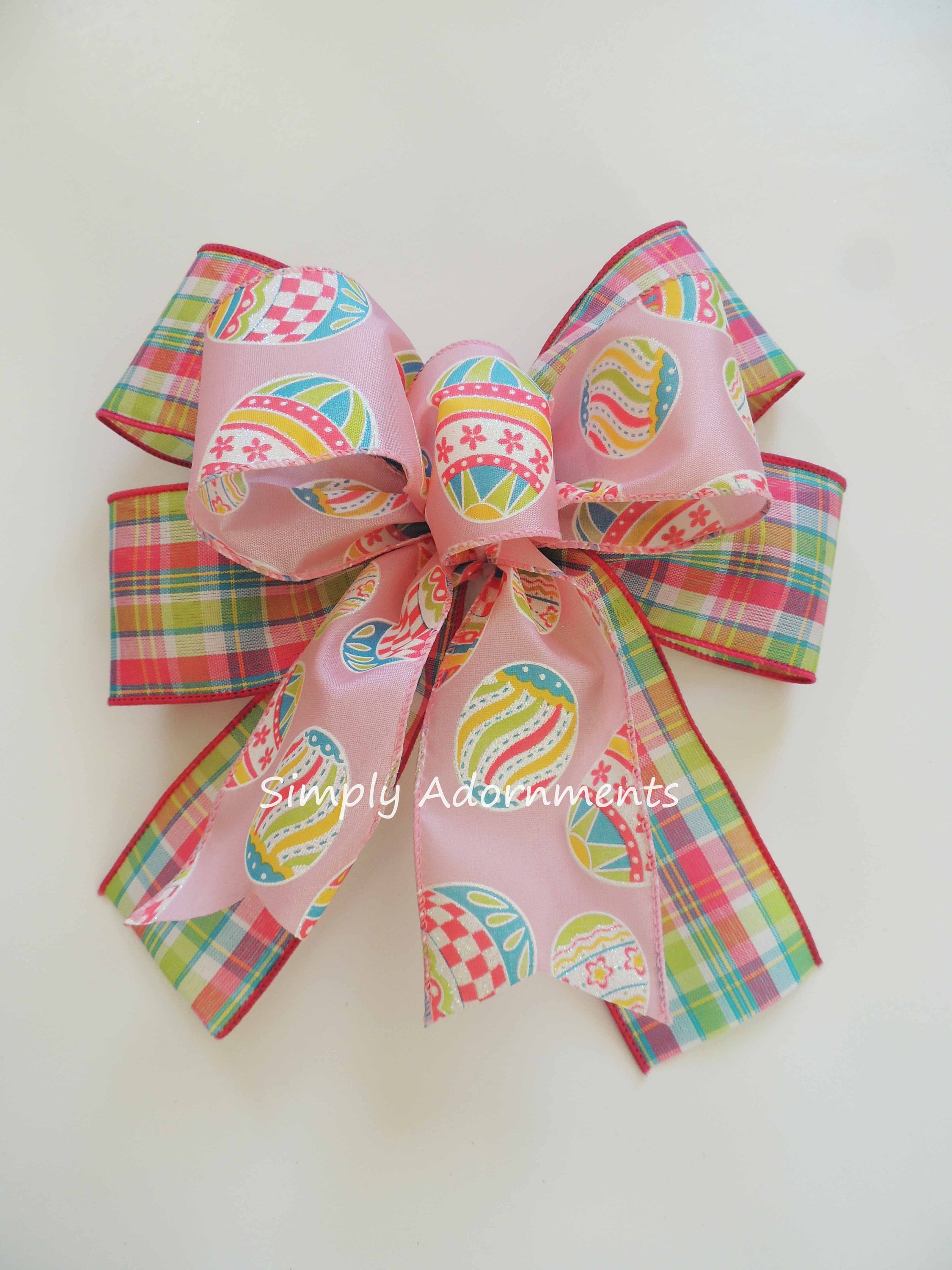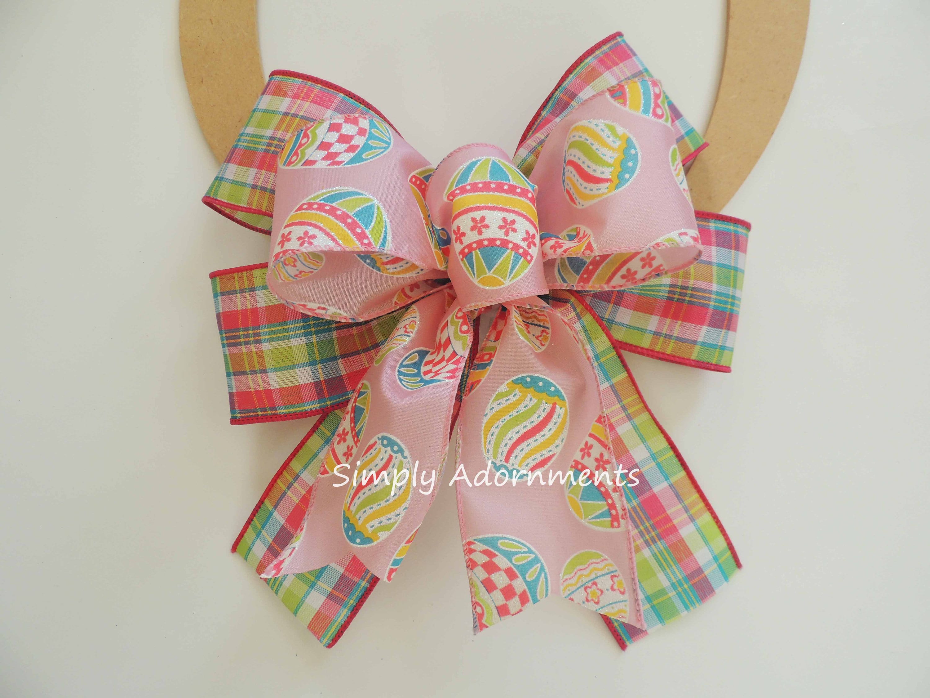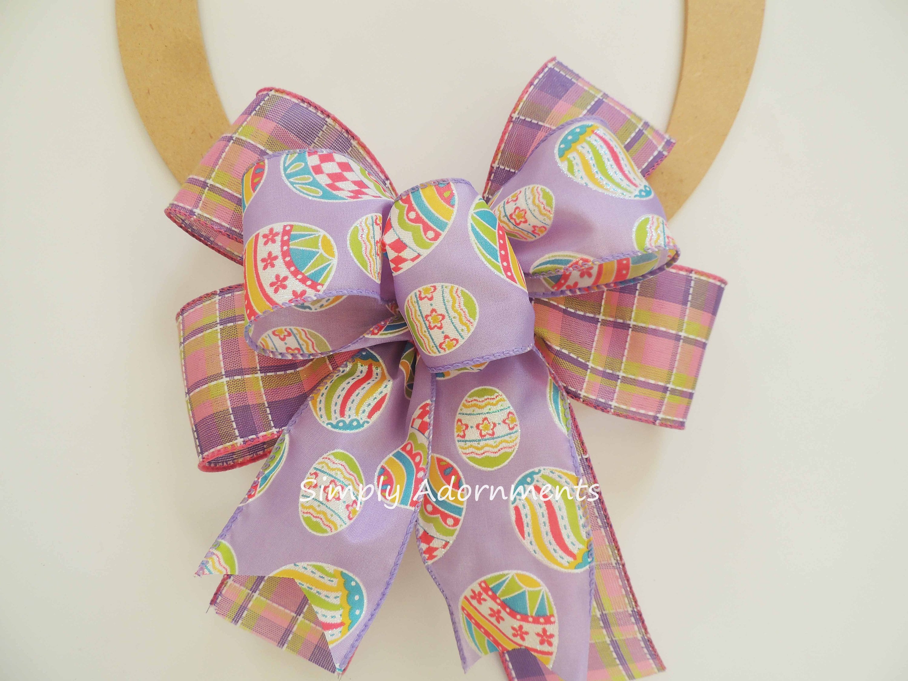 Pink Easter bow, Montana Plaid Pink Easter Eggs bow, Purple Montana Plaid bow, Pink Easter Door Bow, Easter Eggs door bow, Easter basket Bow