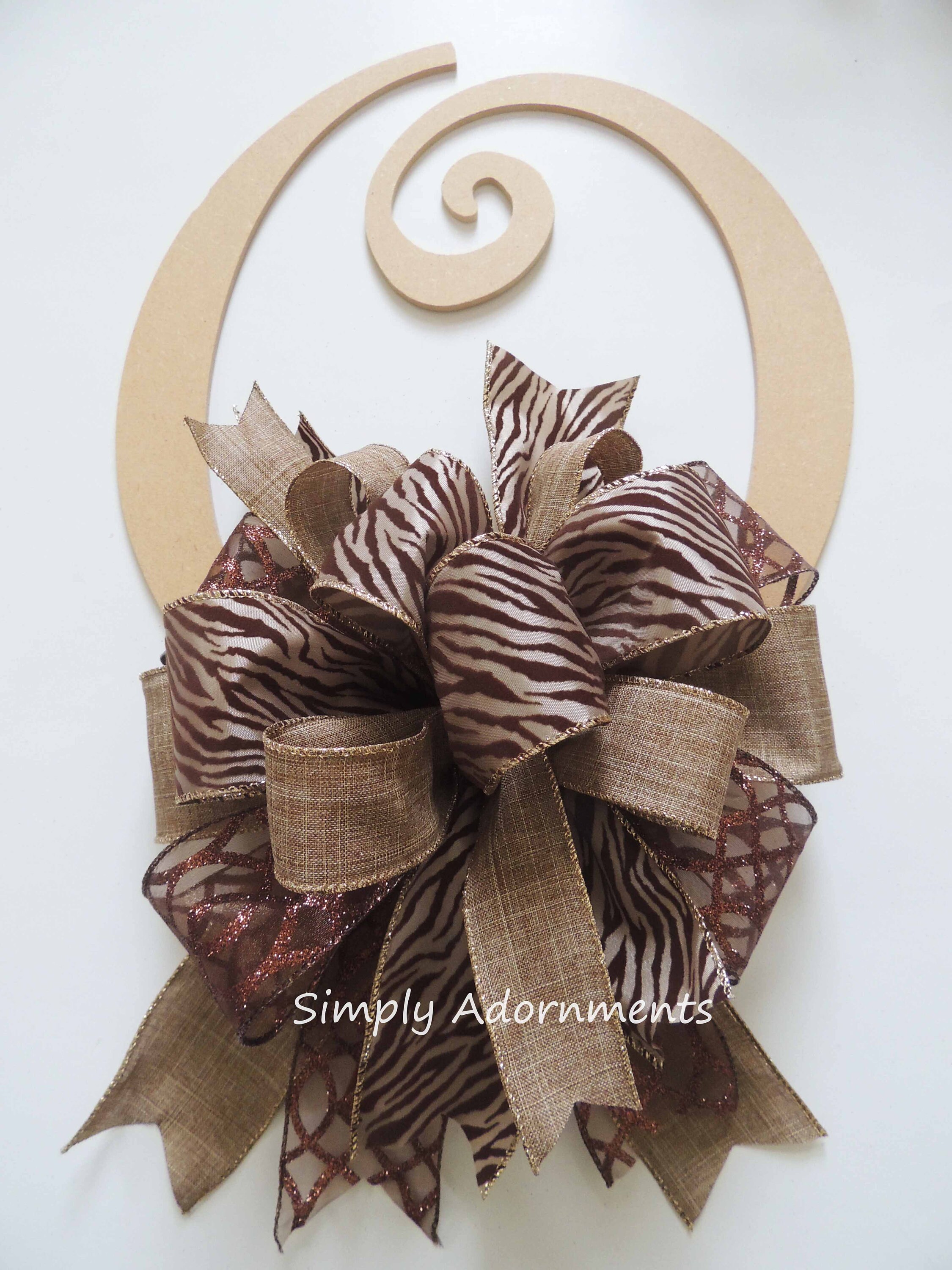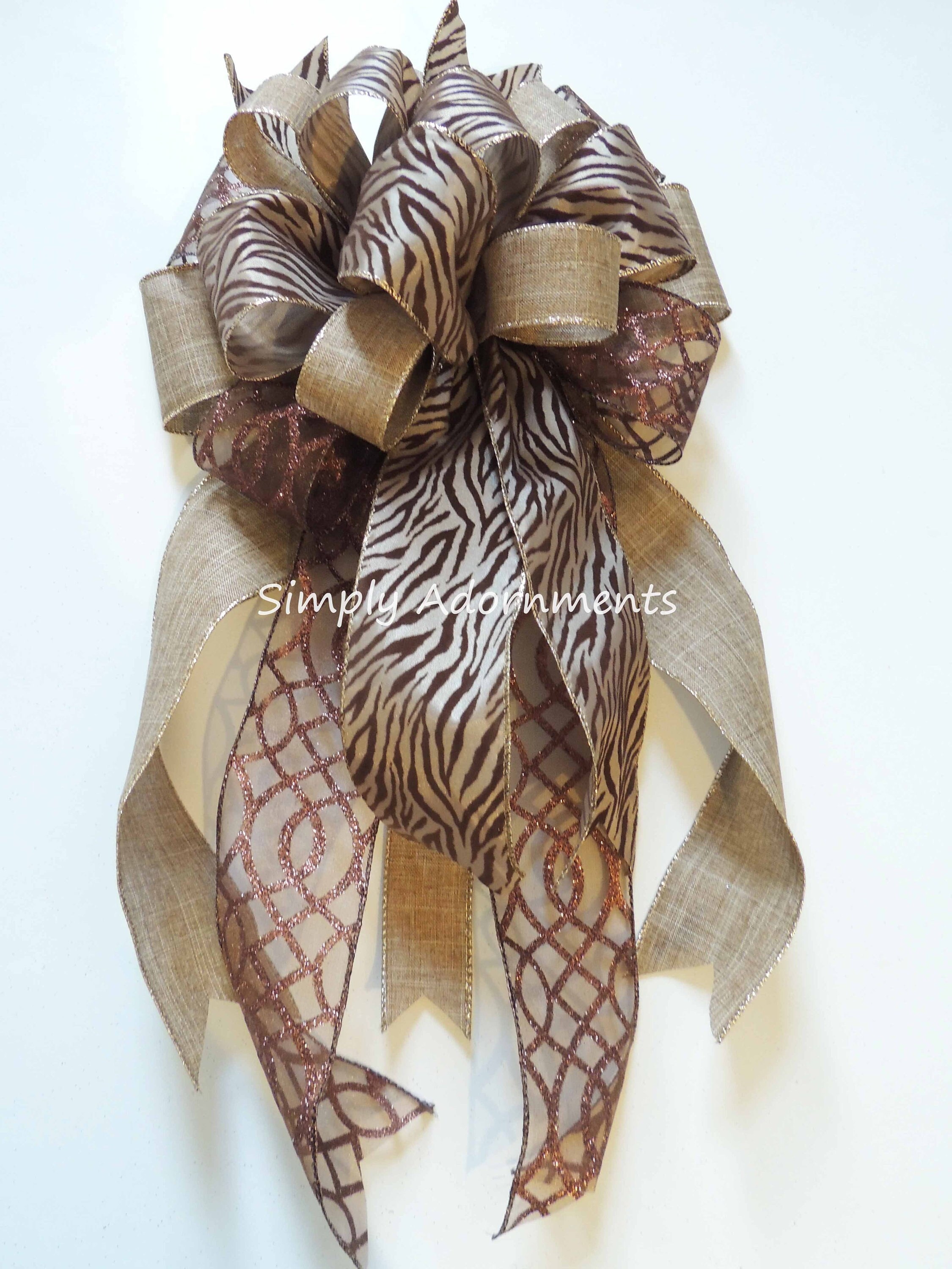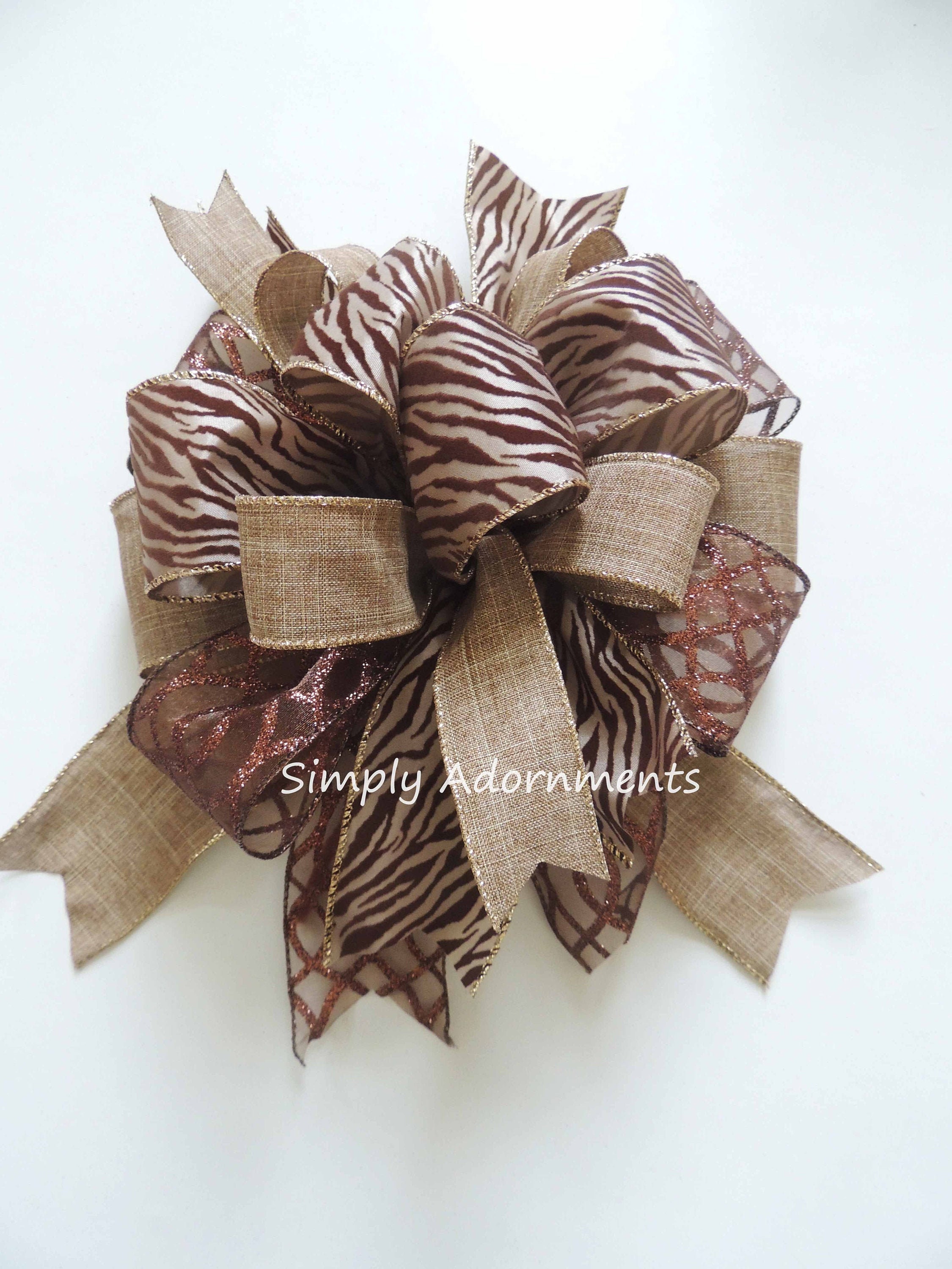 Zebra Bow, Brown tan Animal tree bow, Zebra Print Lantern Bow, Safari Sign Bow, Safari Christmas Door bow, Animal Wreath Bow, Zebra door bow