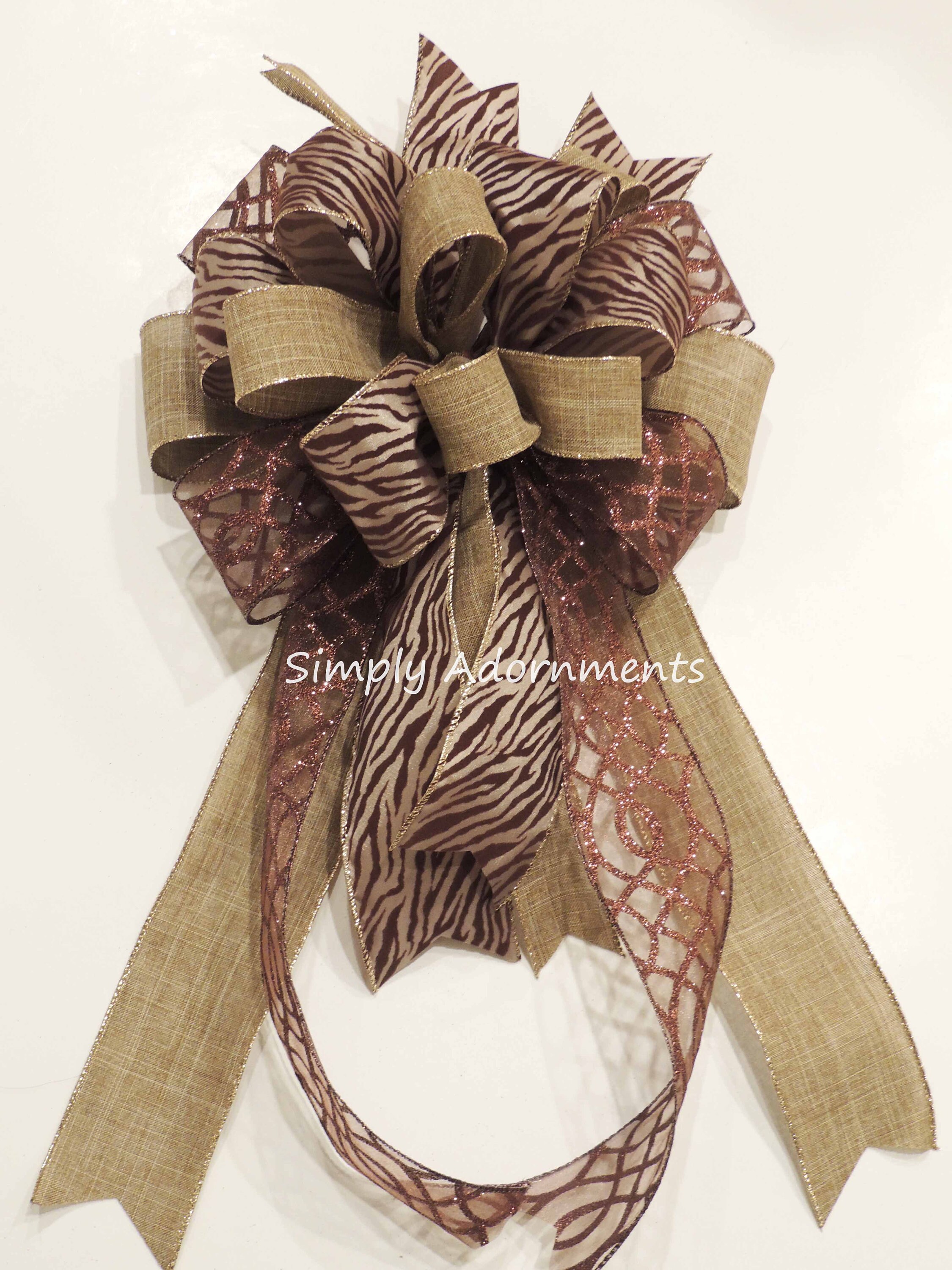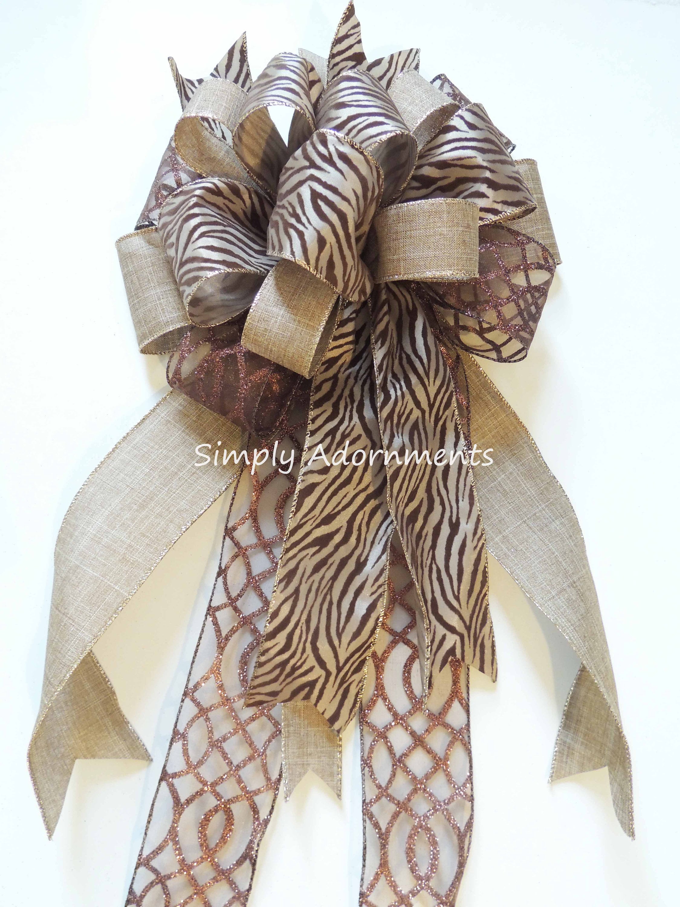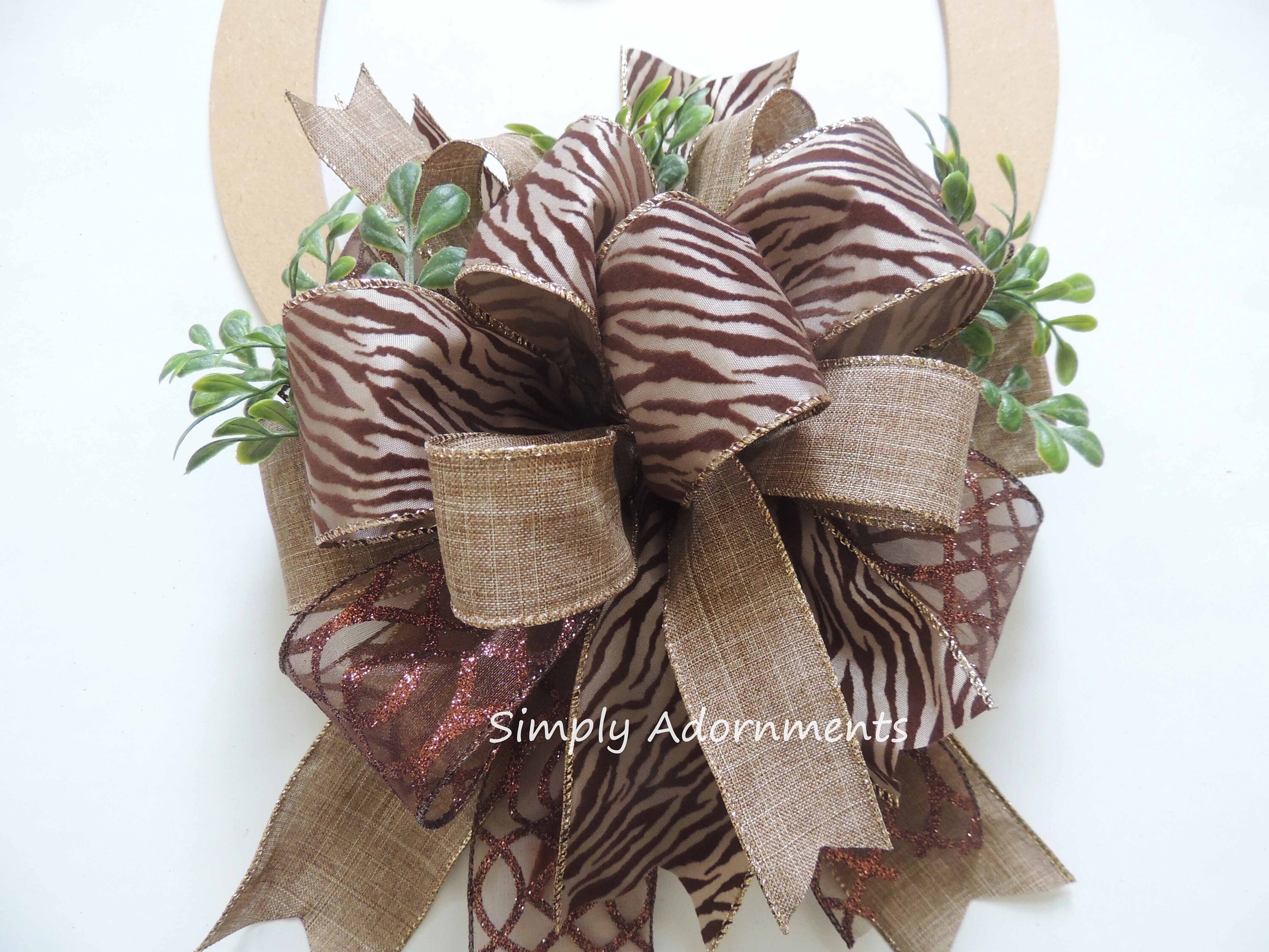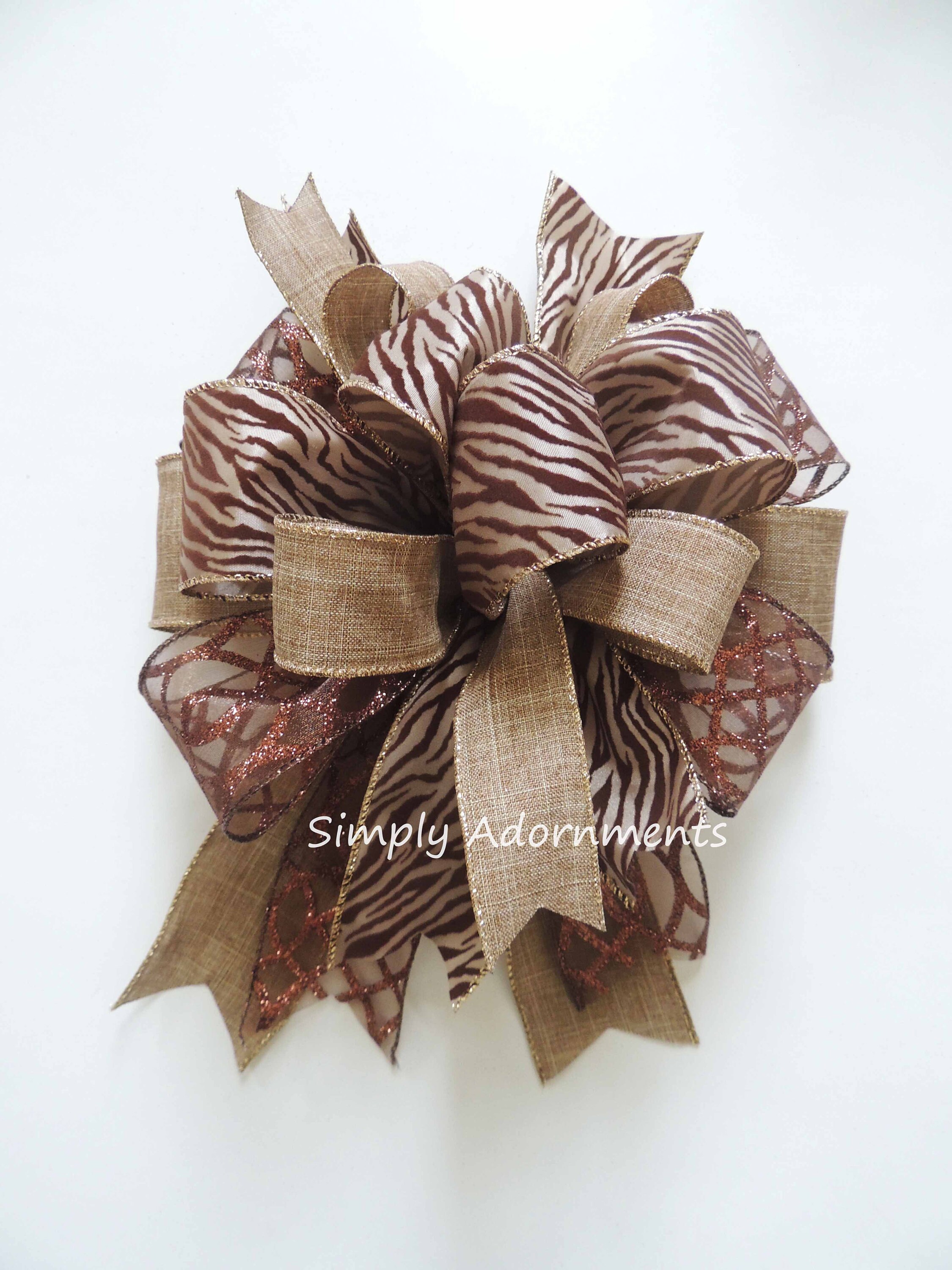 Zebra Bow, Brown tan Animal tree bow, Zebra Print Lantern Bow, Safari Sign Bow, Safari Christmas Door bow, Animal Wreath Bow, Zebra door bow